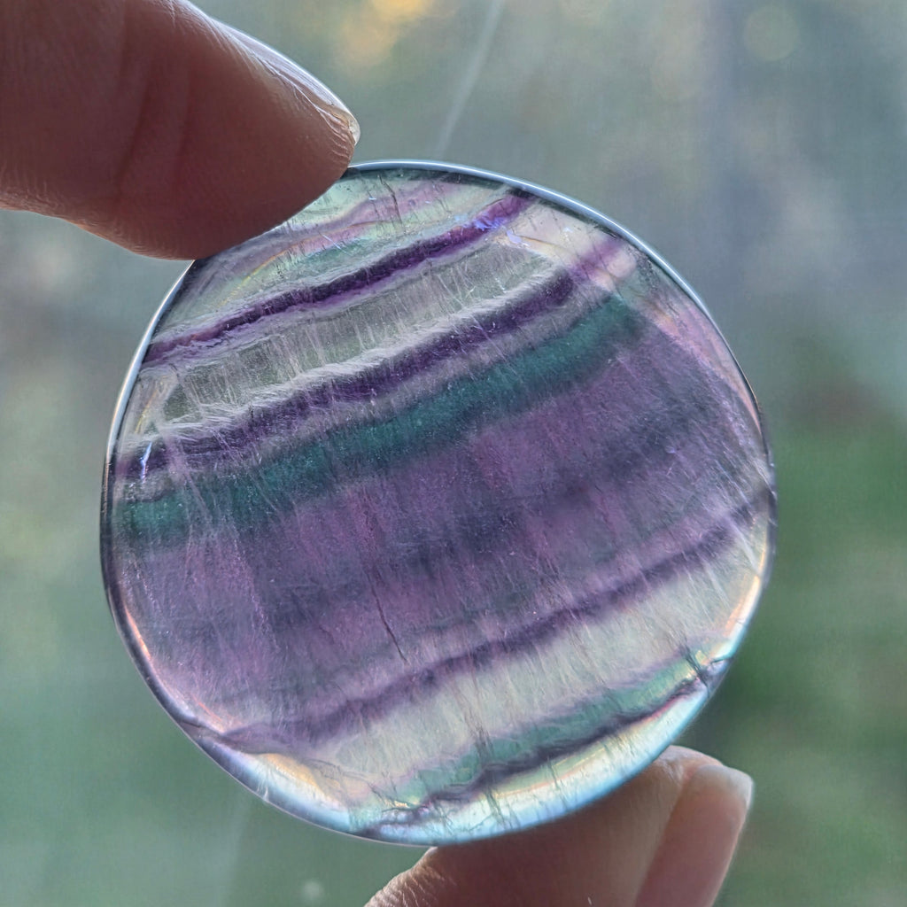 Regenbogen-Fluorit-Palmstein, Größe: 4 cm