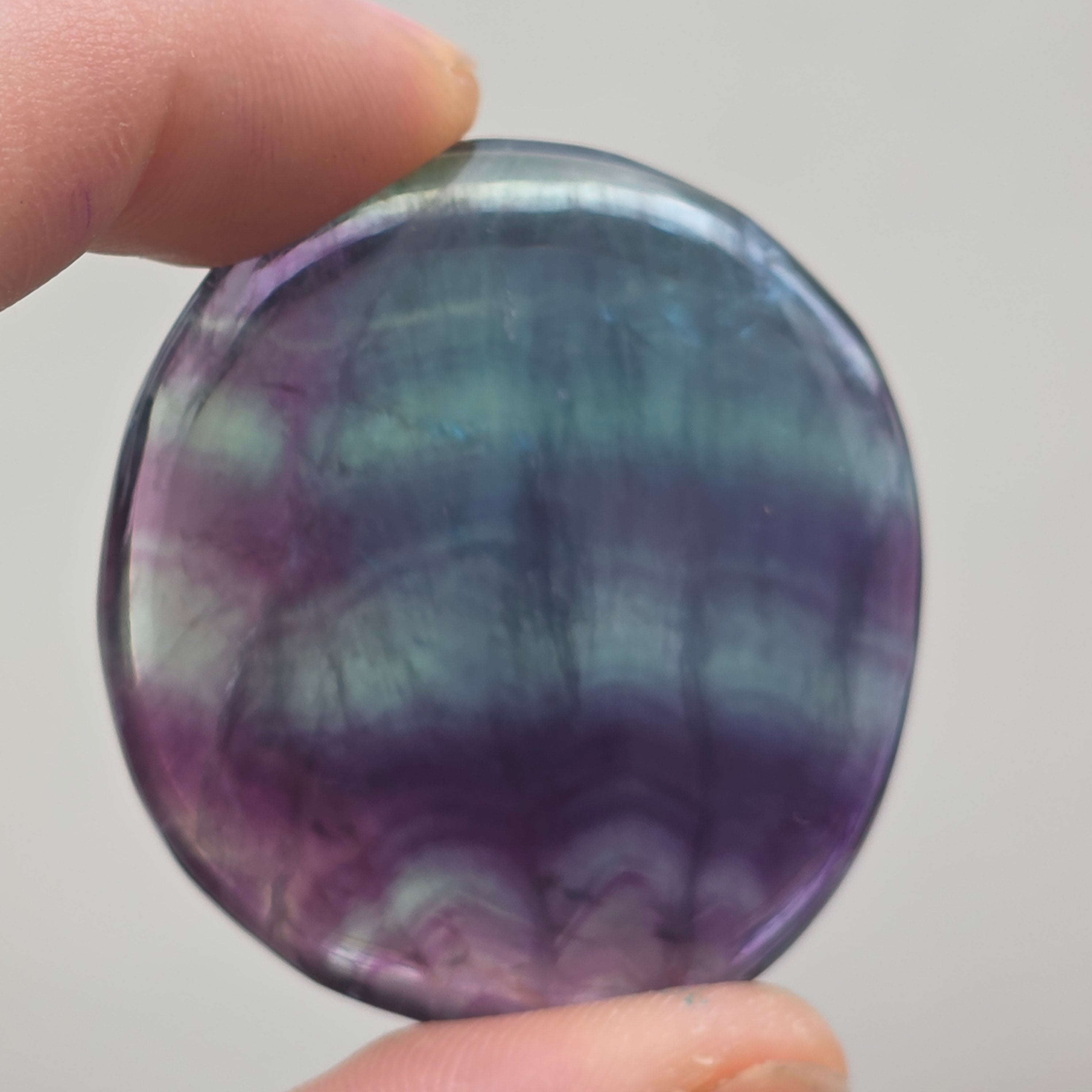 Diese Farbmischung macht Regenbogenfluorit als schützend, was negative Energie beseitigt und hilft, Gedanken zu ordnen, was es ideal für diejenigen macht, die geistige und spirituelle Klarheit suchen.