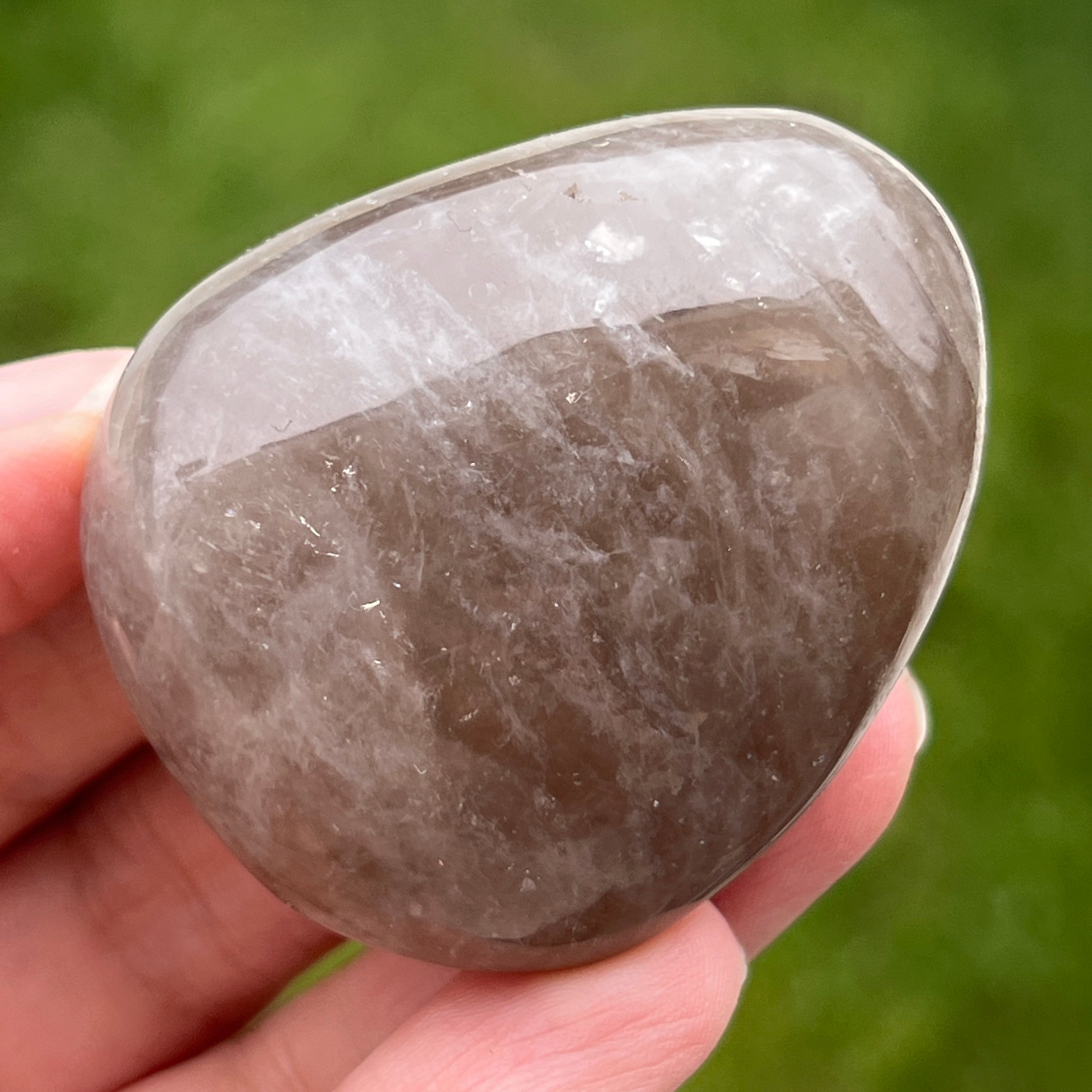 Sorgfältig geformt, um eng in die Handfläche zu passen, ist dieser Rauchquarz-Palmstein nicht nur ein Stein – er ist ein Dreh- und Angelpunkt mitten im Trubel des Alltags. Mit seinen erdigen Tönen, von durchscheinendem Braun bis zu tieferen Tönen, trägt Rauchquarz die Ruhe uralter Felsen und die Geduld der Berge in sich.