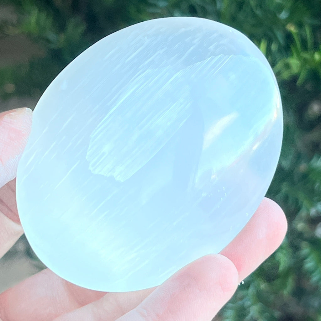 Selenitul este cunoscut pentru vibrația sa înaltă și pentru capacitatea de a curăța energiile stagnante. Este o piatră a purificării, care aduce claritate mentală și liniște sufletească, susținând reconectarea cu propria lumină interioară.