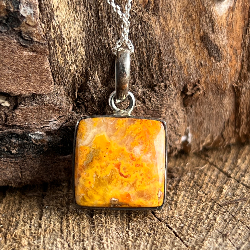 • Piatra: Bumblebee Jasp natural (nuanțe galben-portocalii cu incluziuni gri și ocru) model unicat – primești exact produsul prezentat în imagini