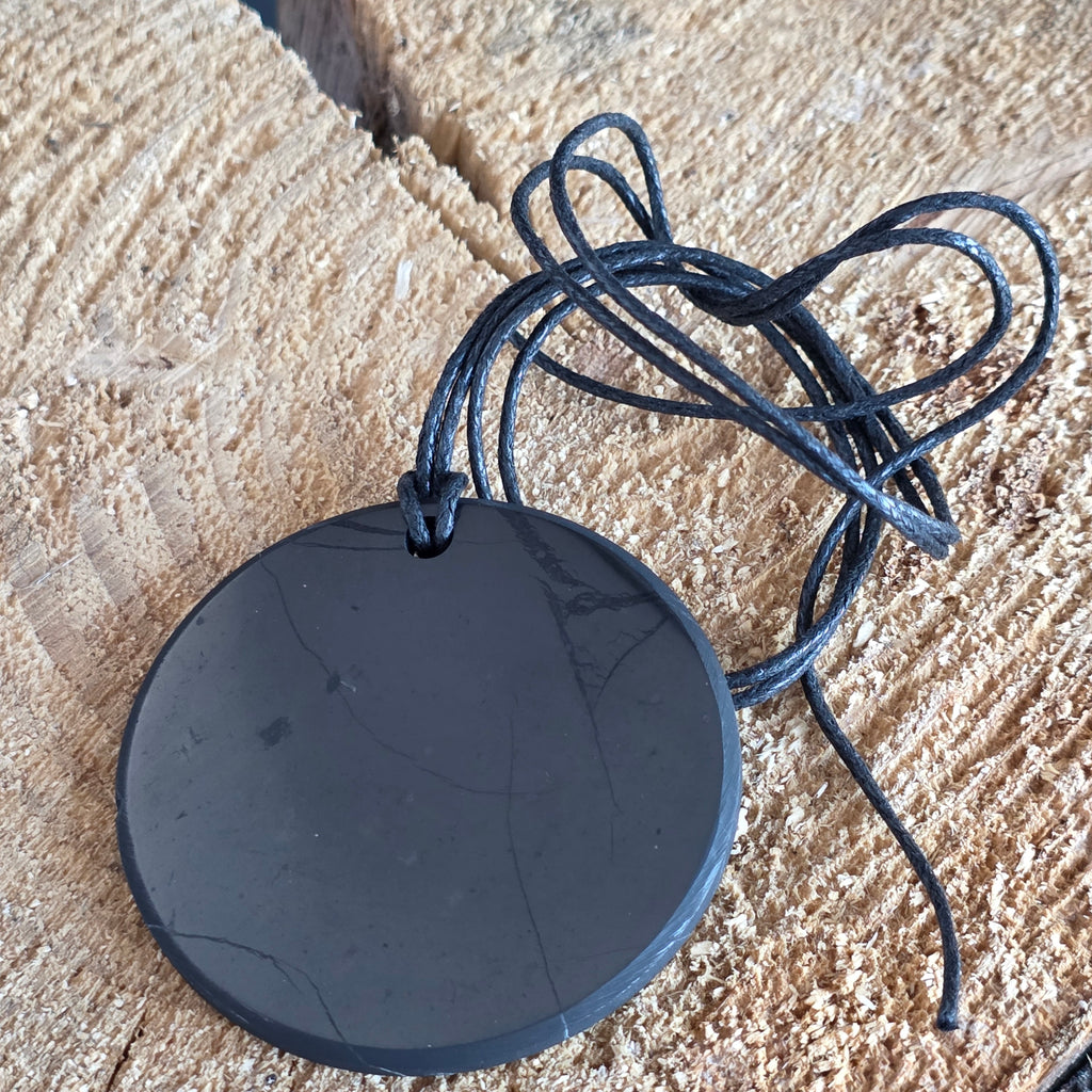 Poartă acest pandantiv rotund din shungit natural aproape de inimă și lasă-l să-ți reamintească, zi de zi, de forța tăcută a Pământului — o prezență protectoare, profund stabilizatoare, care te readuce mereu la tine.