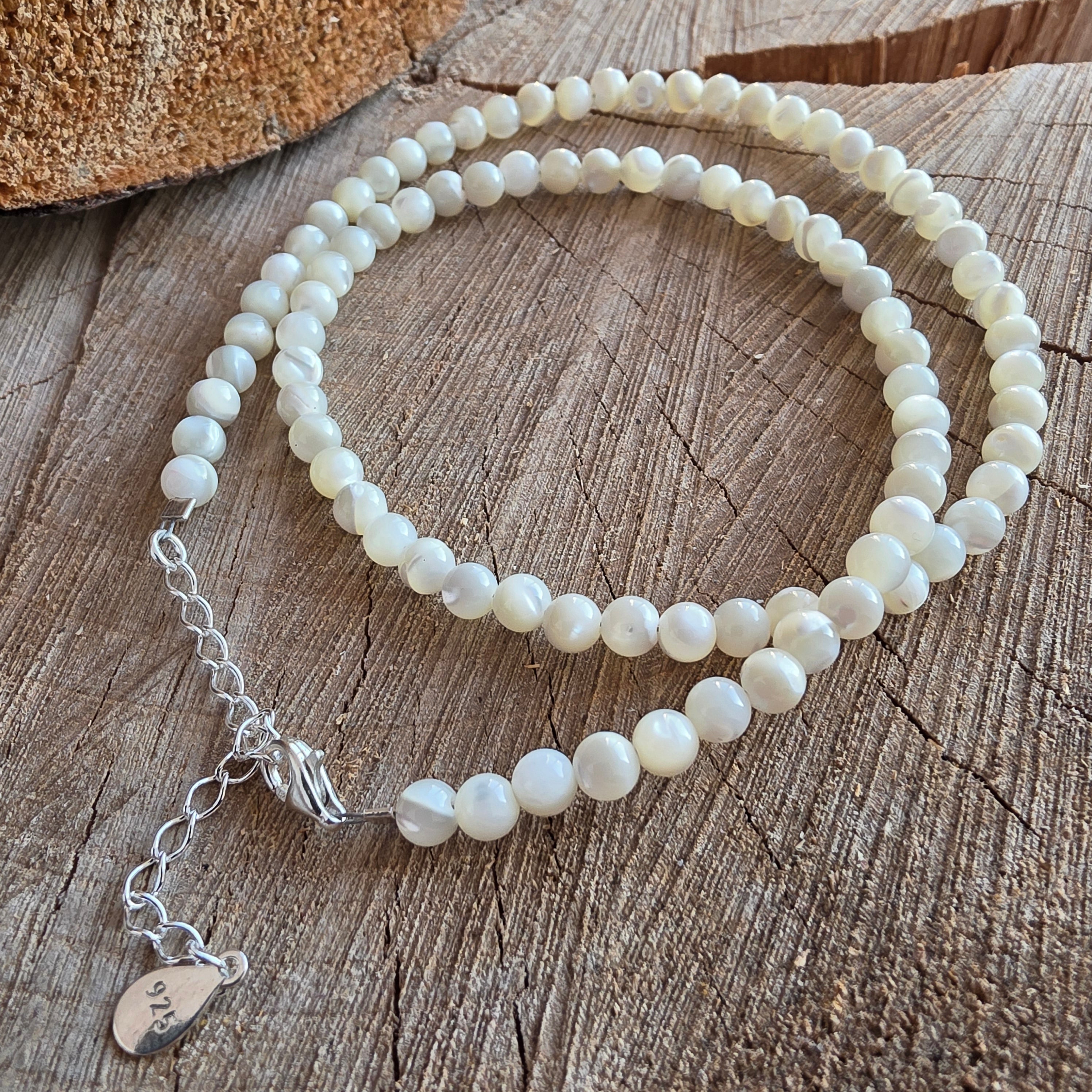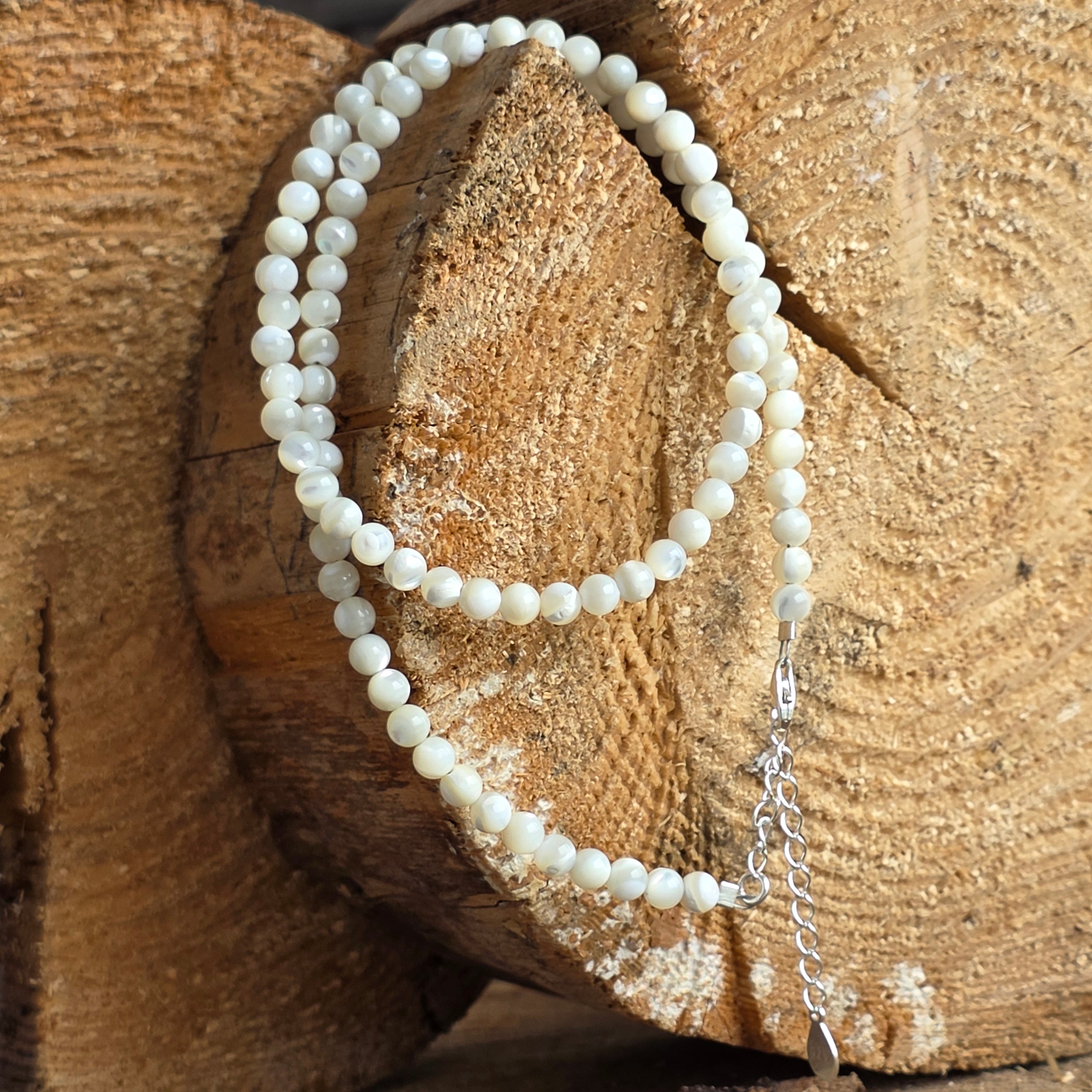 Eine handgefertigte Kette aus sorgfältig ausgewähltem Perlmutt, die das sanfte Funkeln des Meeres in jedem Lichtreflex bewahrt. Mit natürlichen Akzenten und perligen Tönen verleiht das Perlmutt zeitlose Eleganz und eine ruhige Ausstrahlung – perfekt für diejenigen, die subtile Schönheit lieben. Leicht im Alltag oder zu besonderen Anlässen zu tragen, wird die Kette zu einem dezenten Detail, das das Outfit erhellt und Harmonie in den persönlichen Stil bringt.