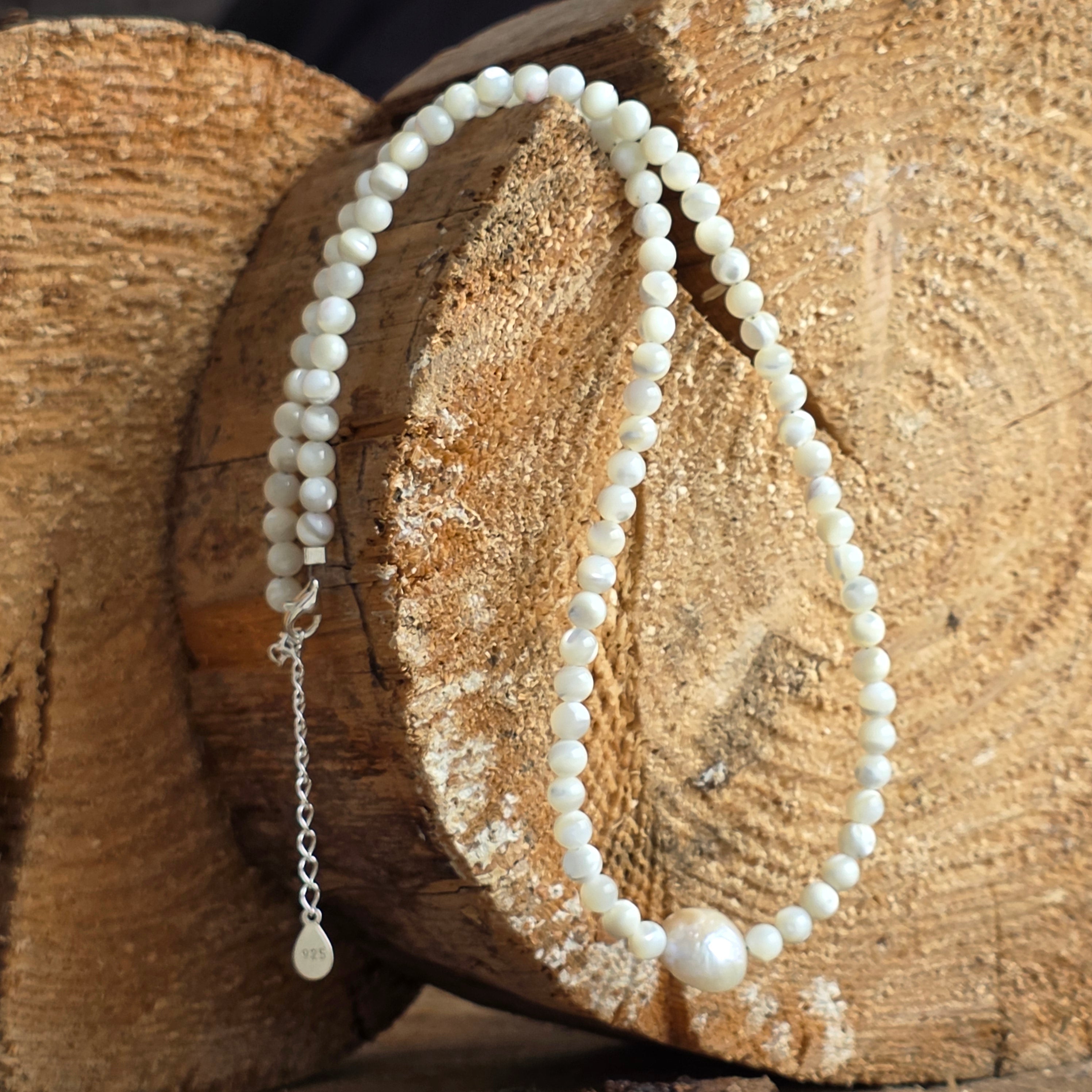 Eine handgefertigte Perlenkette aus sorgfältig ausgewähltem Perlmutt, das das sanfte Glänzen des Meeres in jedem Lichtreflex bewahrt. Ein Schmuckstück mit natürlichen Akzenten und perlmuttfarbenen Tönen, das zeitlose Eleganz und eine ruhige Ausstrahlung verleiht, perfekt für diejenigen, die dezente Schönheit lieben. Leicht im Alltag oder zu besonderen Anlässen zu tragen, wird die Kette zu einem subtilen Detail, das das Outfit zum Strahlen bringt und Harmonie im persönlichen Stil schafft.