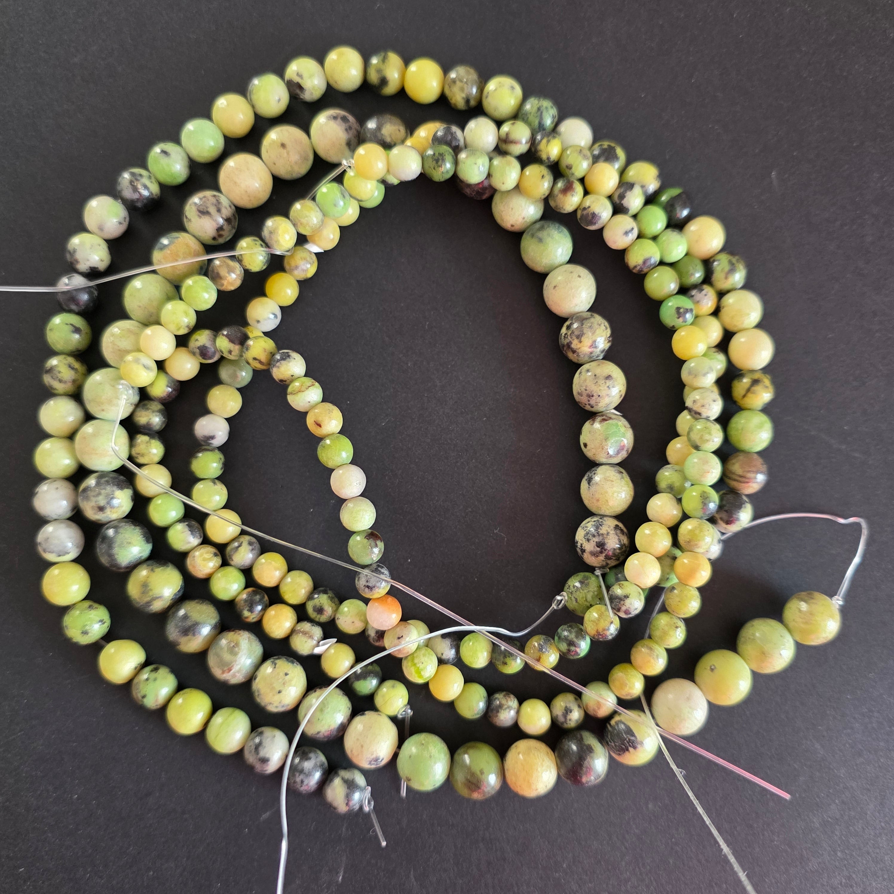 Kette aus AUSTRALISCHEM JADE, bestehend aus natürlichen, runden Perlen, perfekt für Halsketten, Armbänder oder andere handgefertigte Schmuckstücke.