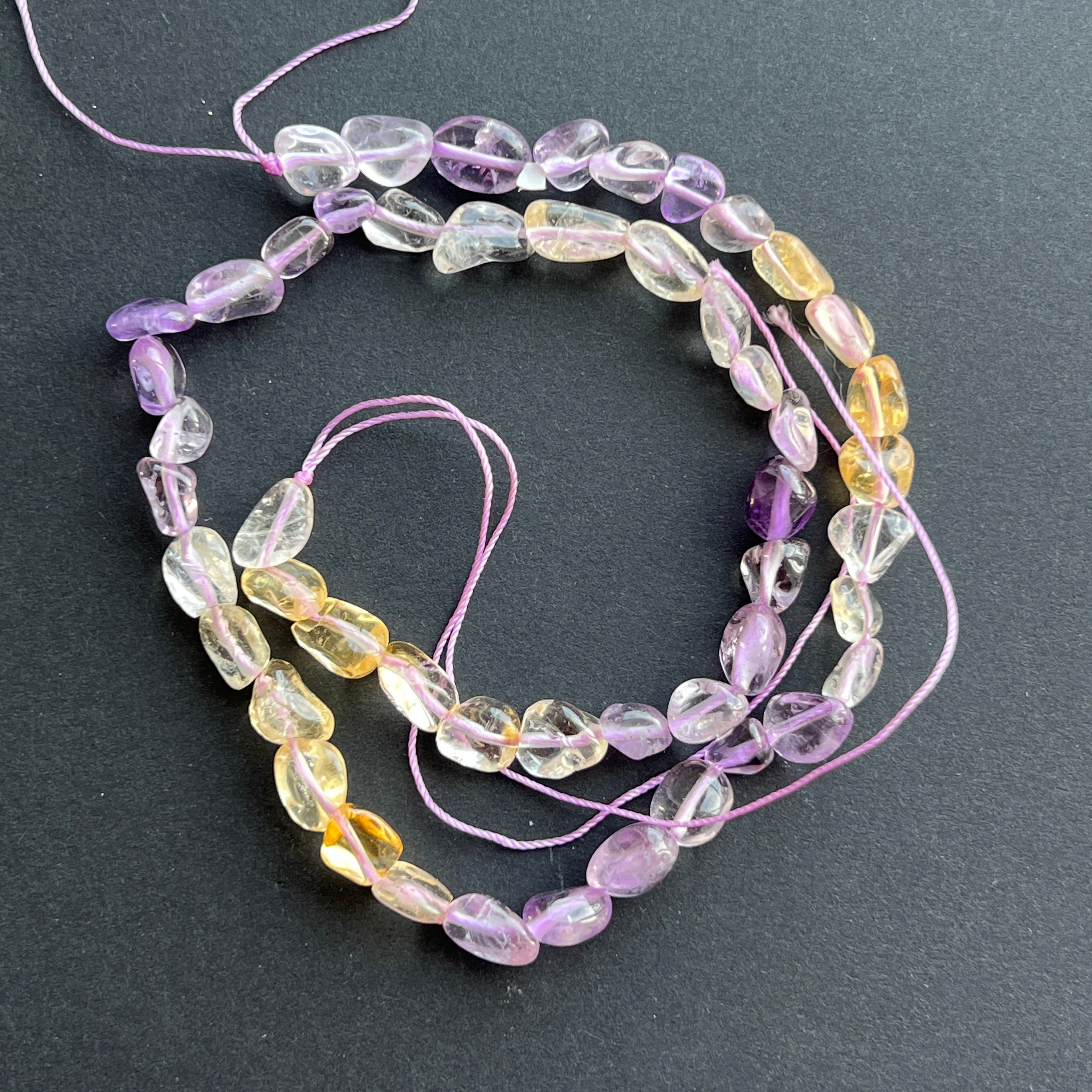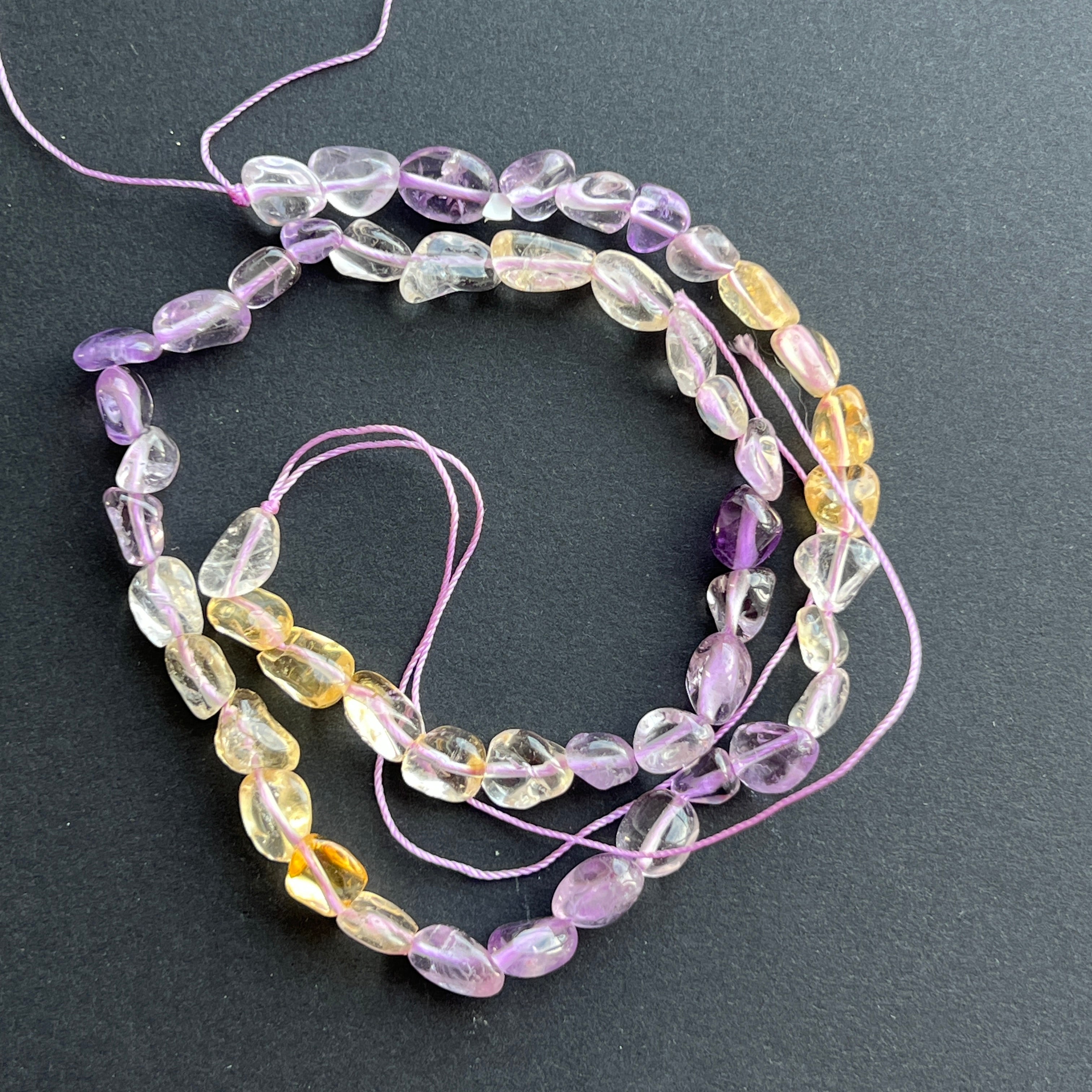 Perlenstrang aus Halbedelsteinen, rohe, gerollte Steine AMETRIN