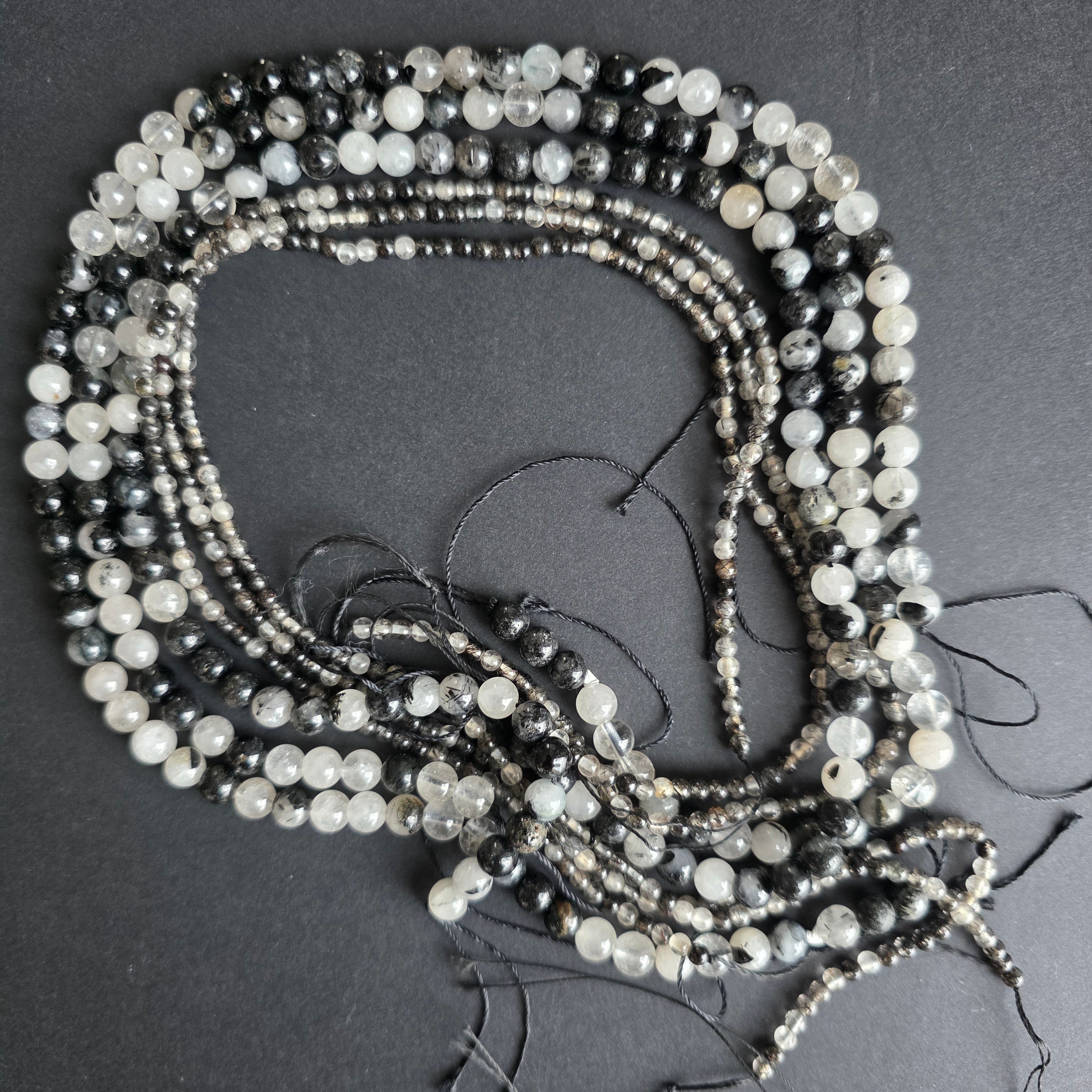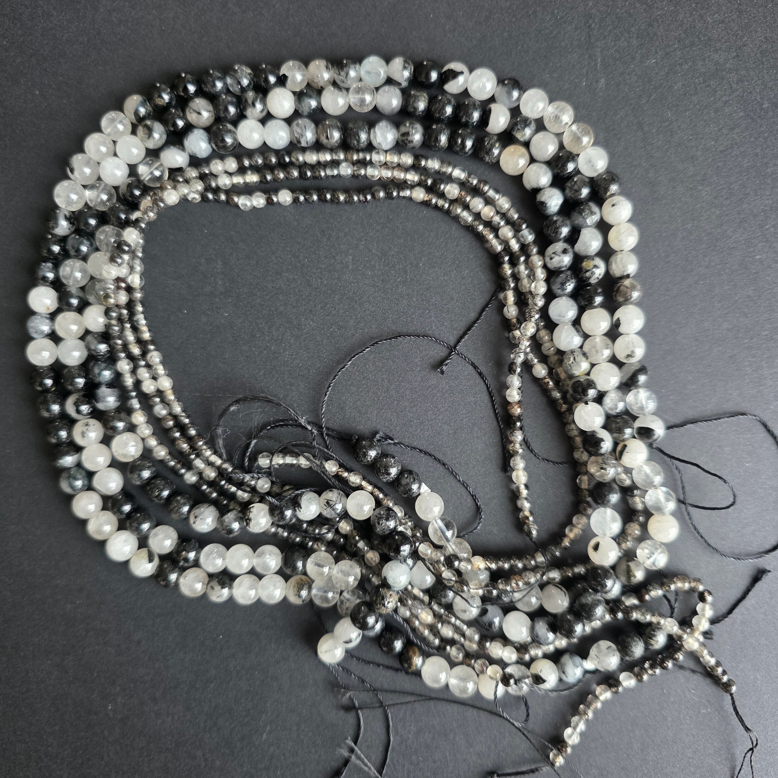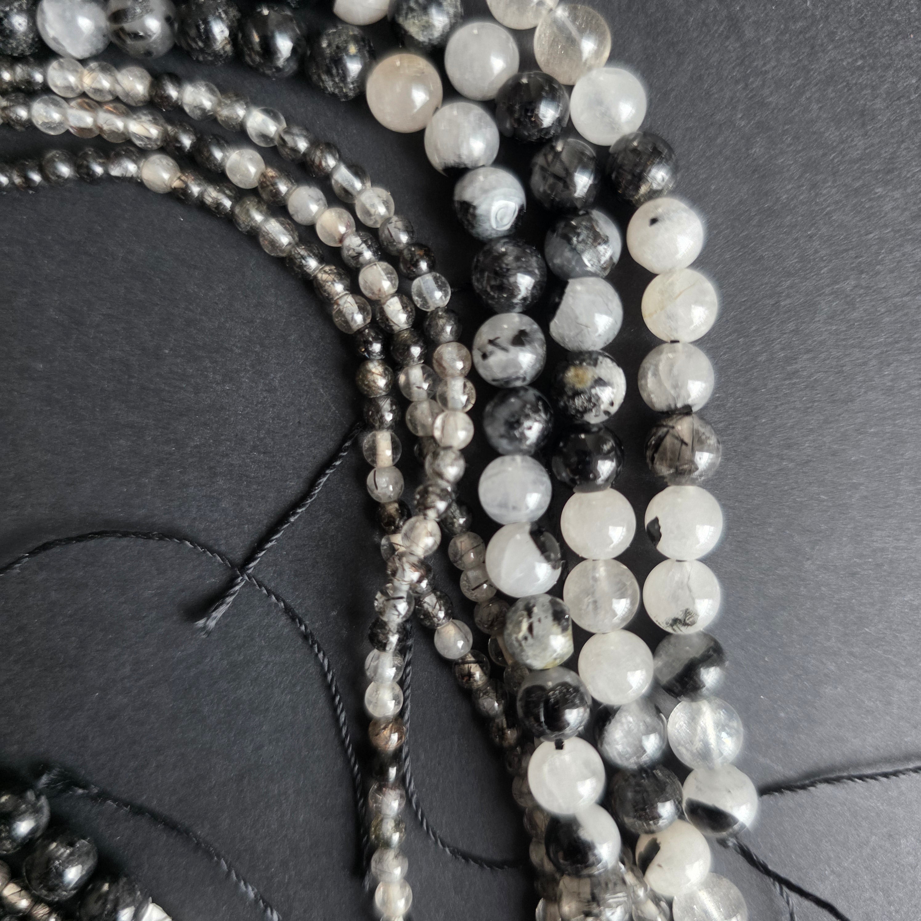 QUARZ MIT TURMALIN Strang, bestehend aus facettierten NATÜRLICHEN Kugelperlen, perfekt für Halsketten, Armbänder oder andere handgefertigte Schmuckstücke.
