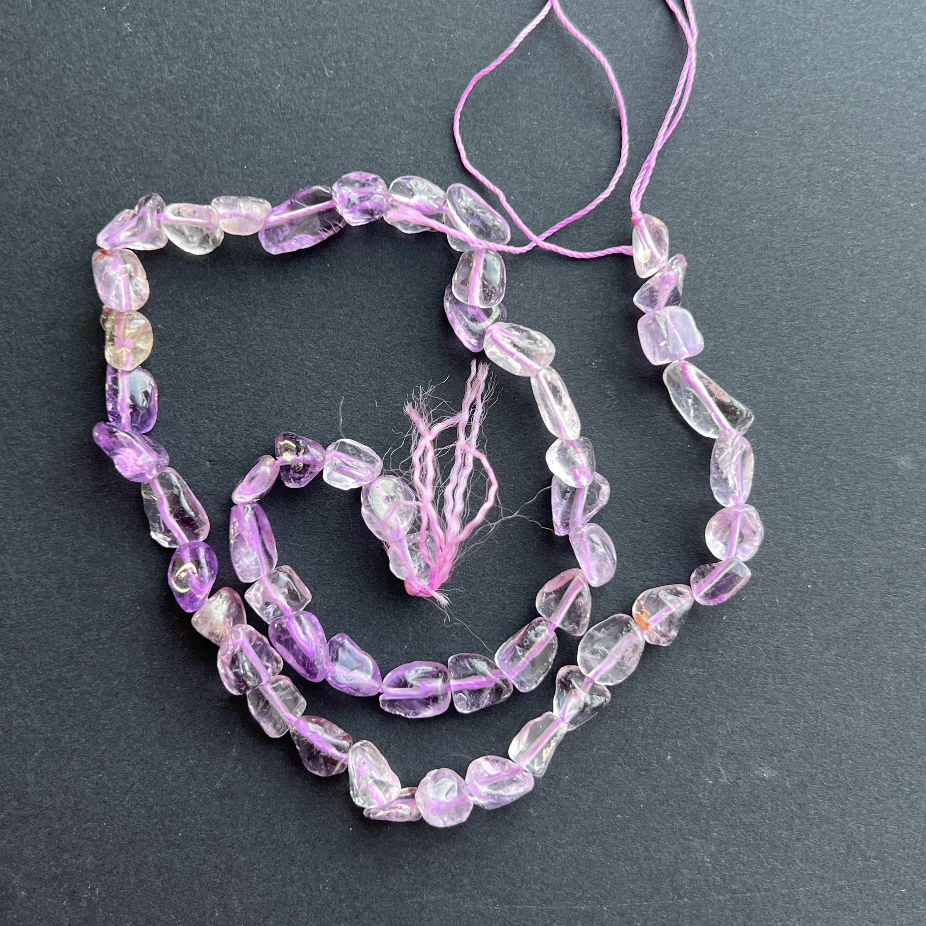 Perlenstrang Halbedelsteine rohe, gerollte Steine AMETHYST | Modell 1