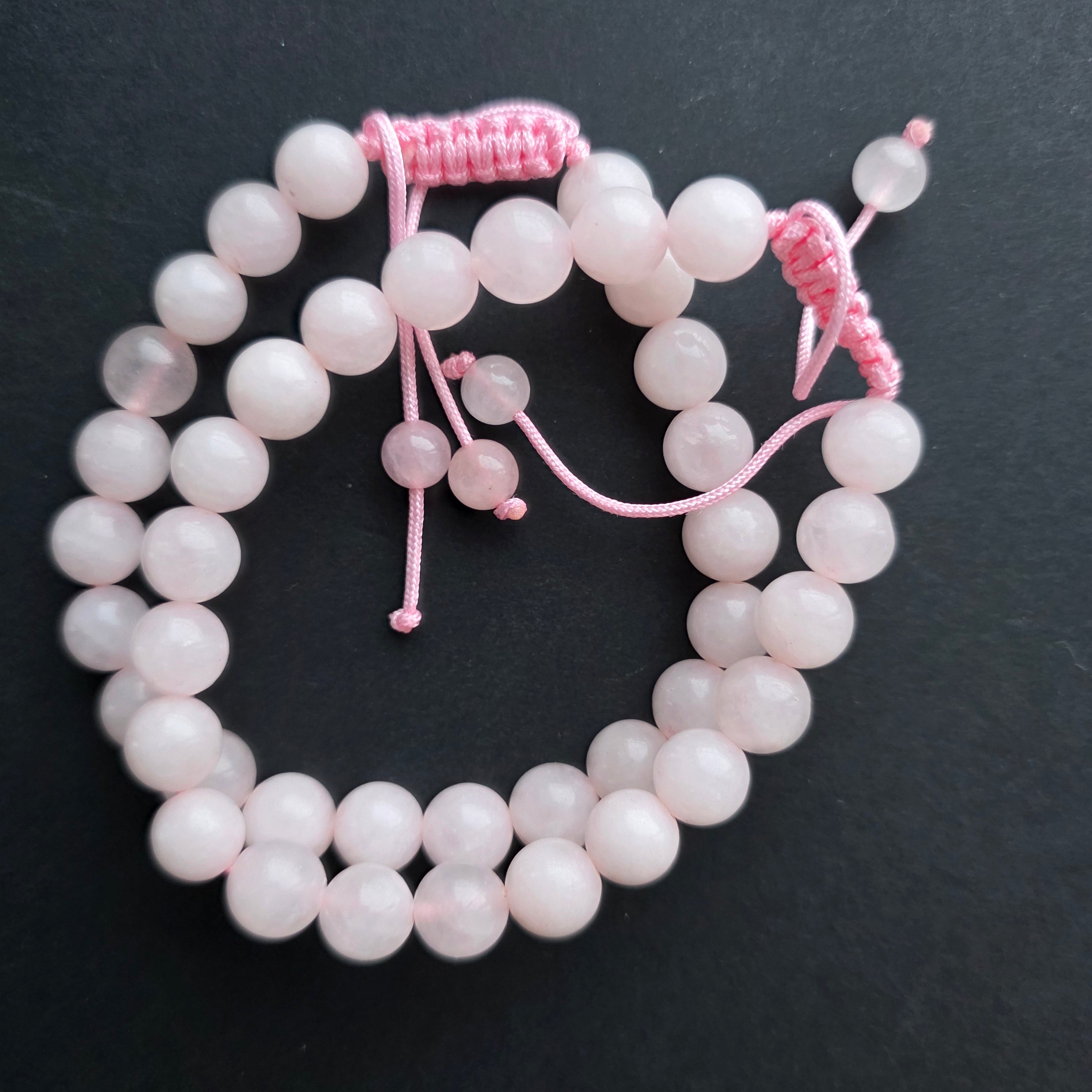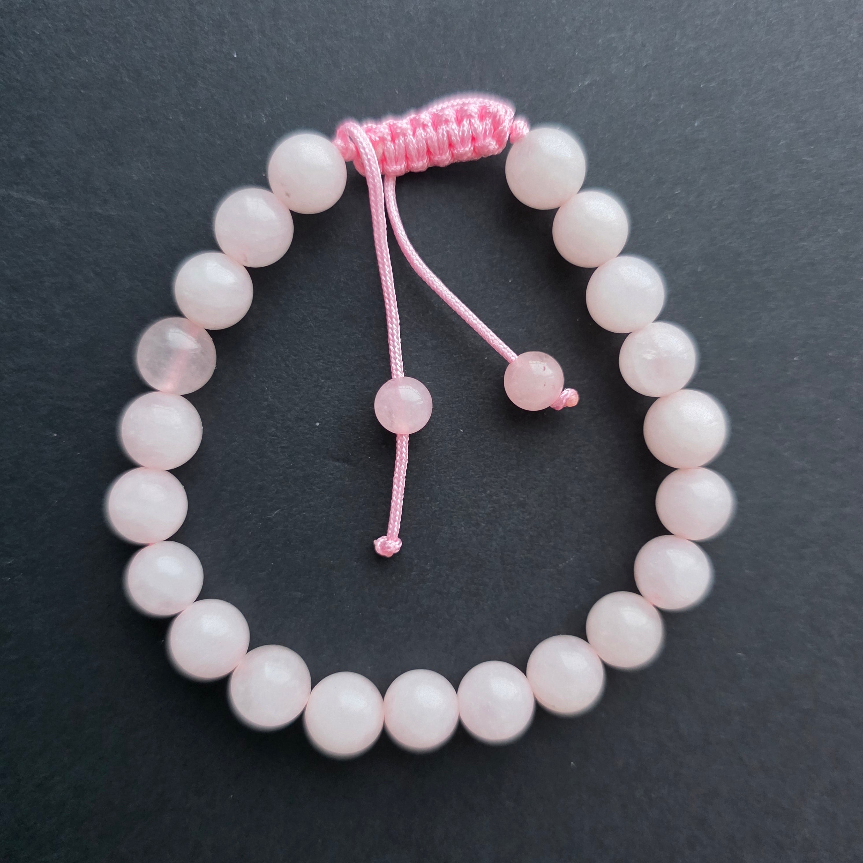 Rosenquarz-Armband 8-9 mm, verstellbares Band