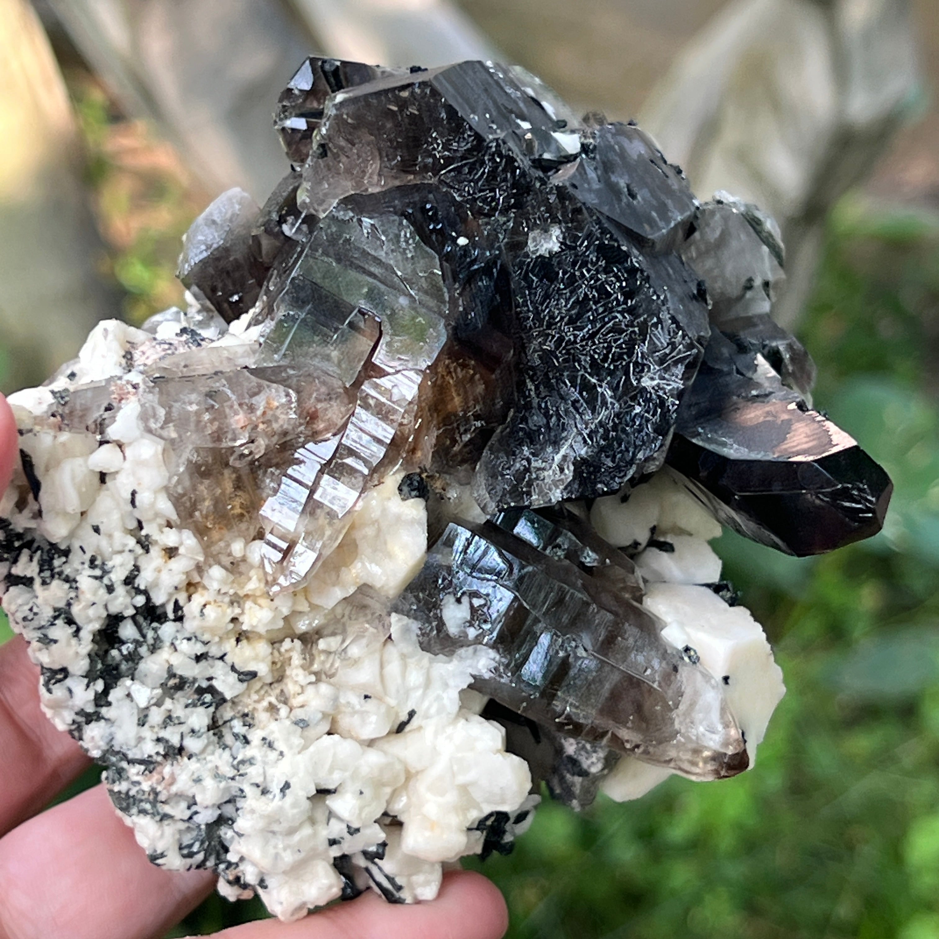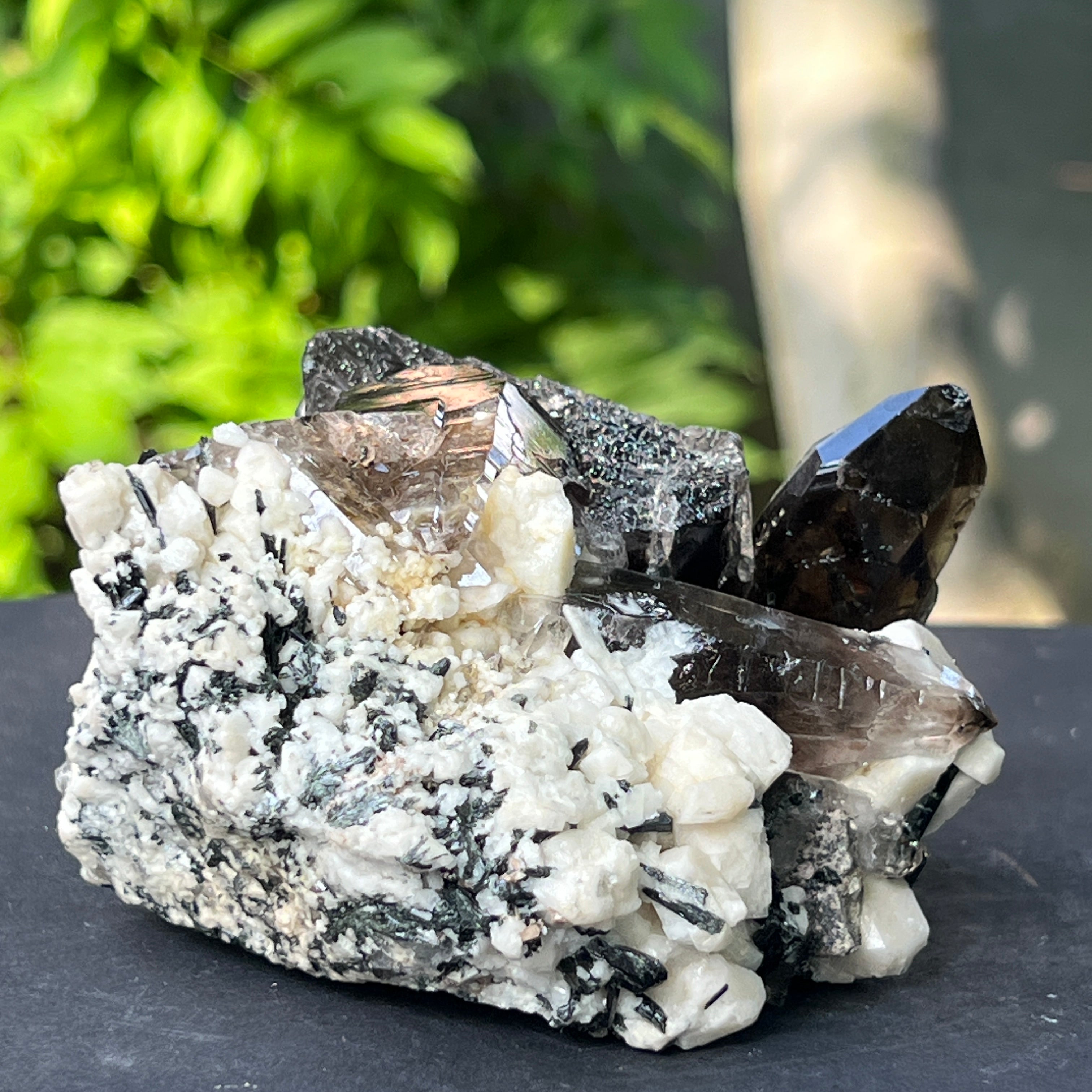 Die Farbe des rauchigen Quarzes ist das Ergebnis natürlicher Bestrahlung oder dem Vorhandensein von Aluminiumverunreinigungen während seiner Bildung. Dieser Prozess kann eine breite Palette von Farbtönen erzeugen, von Kumpel bis intensiv.