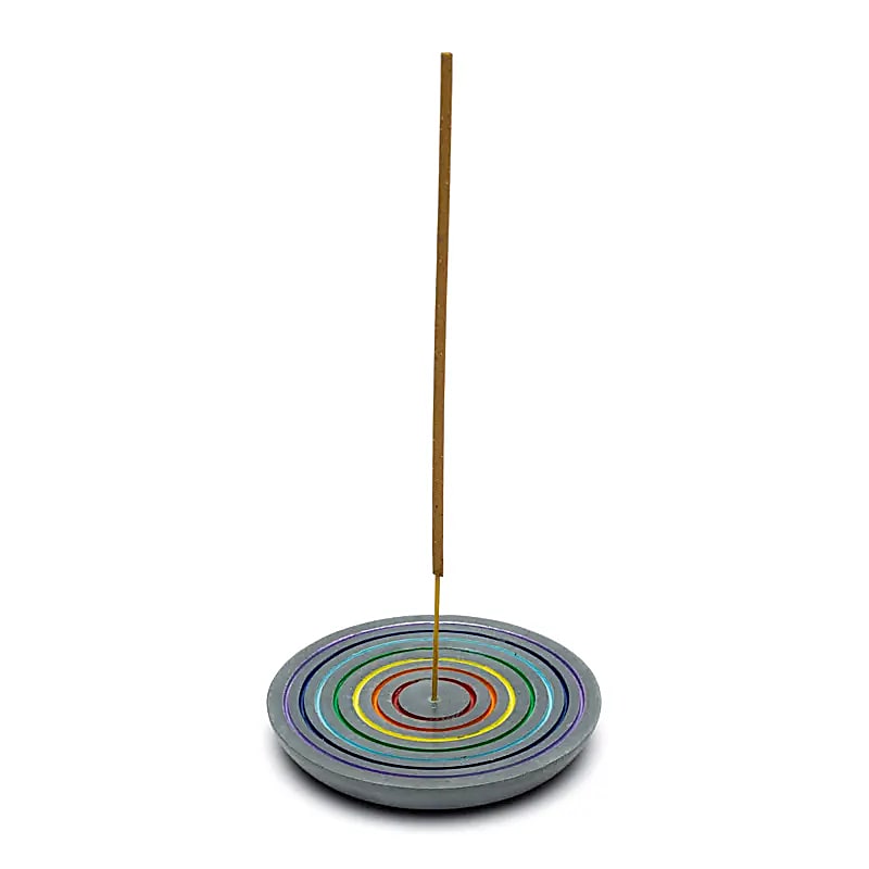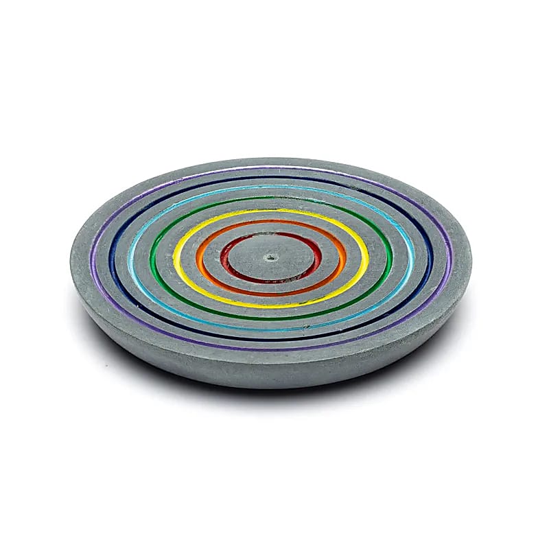 Halter zum Abbrennen eines Räucherstäbchens, hergestellt aus schwarzem, poliertem Speckstein,verziert mit dem Muster Rainbow.Das einfache und elegante Design macht ihn geeignet für die tägliche Nutzung während Entspannungs-, Meditations- oder Aromatherapie-Momenten.