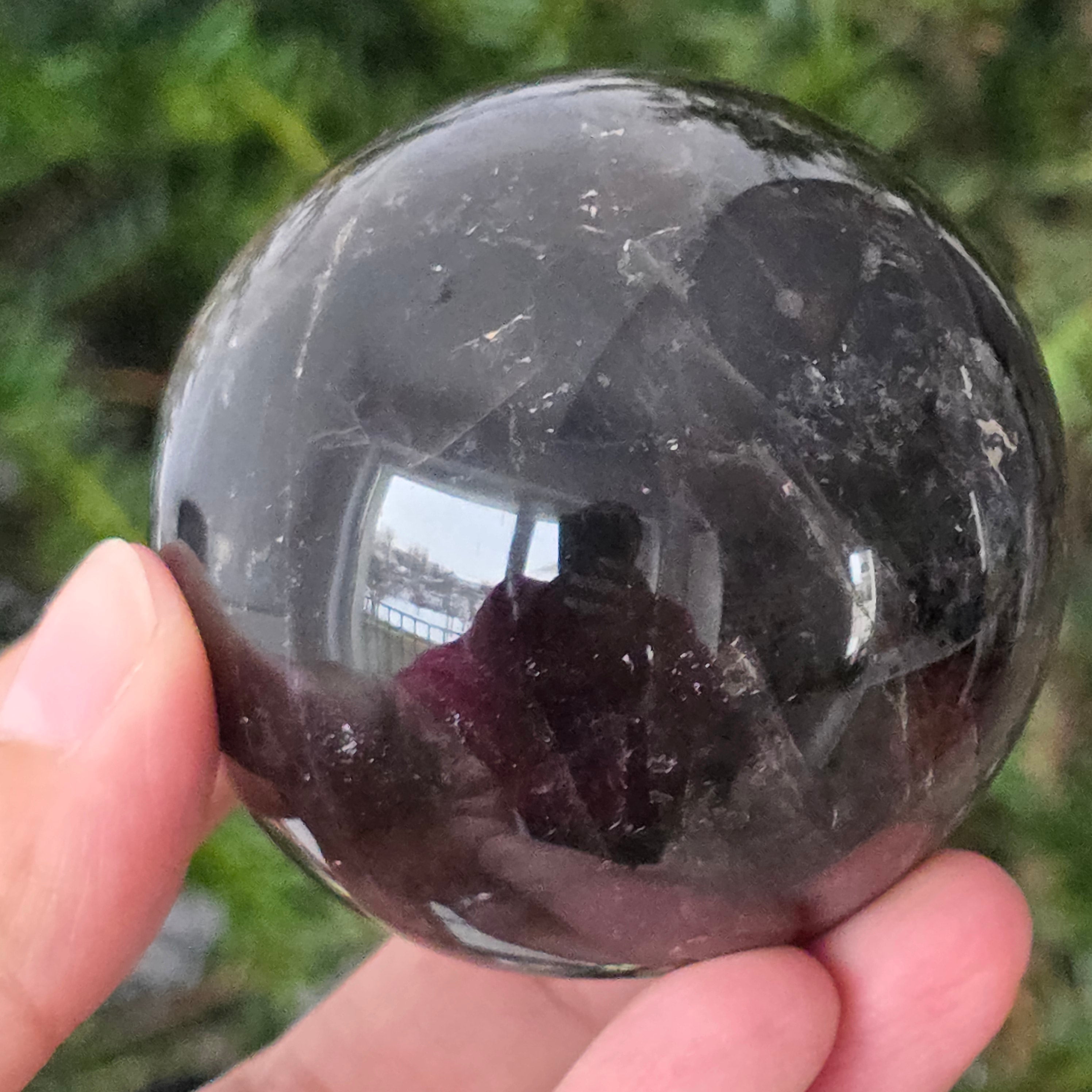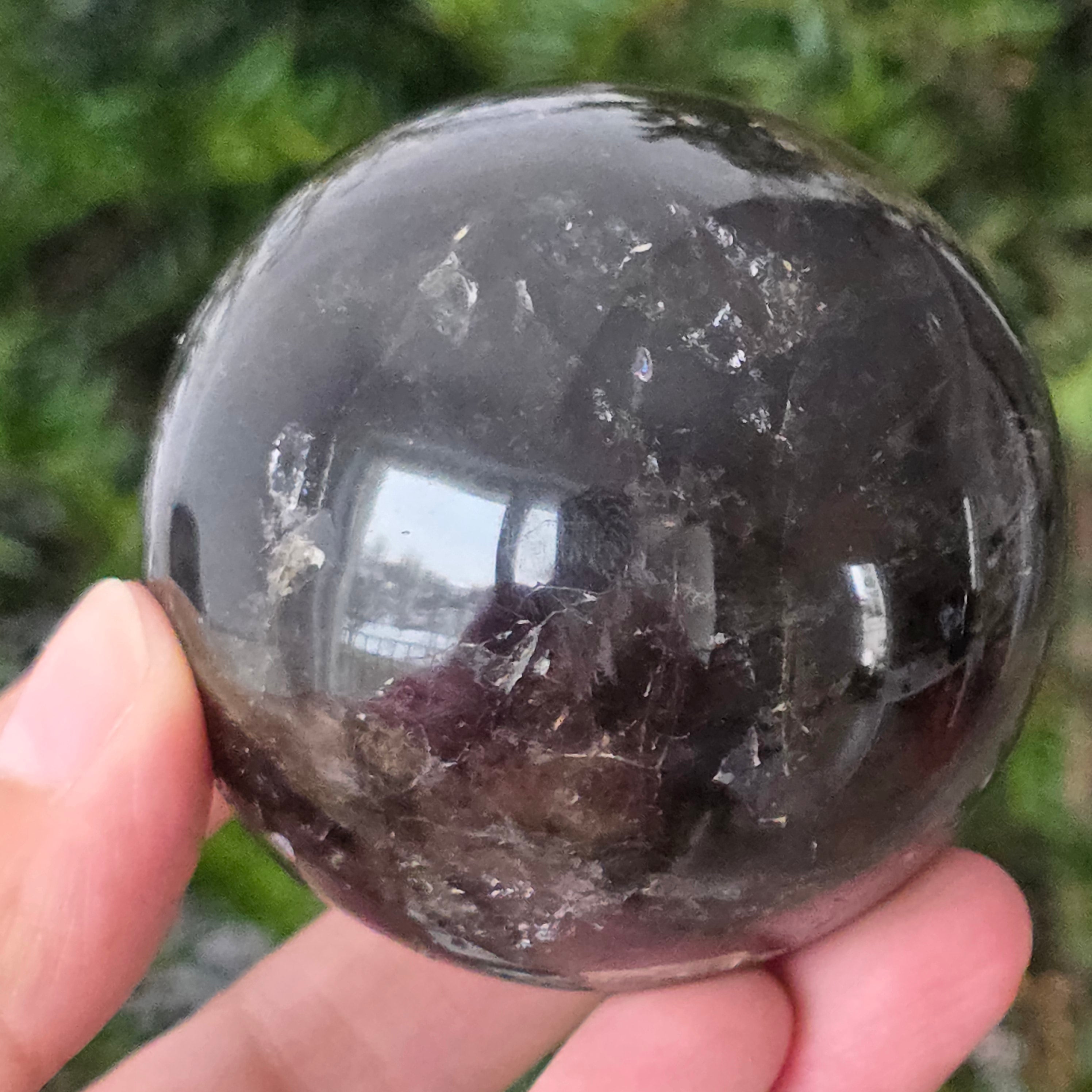 Die Morion-Quarzkugel ist ein kraftvolles und elegantes Stück, bekannt für ihren tiefen Rauchton, ähnlich dichtem Rauch oder transparentem Obsidian. Morion ist die dunkelste Sorte des Rauchquarzes, und in dieser perfekt runden Form zeigt er dezente Reflexionen, feine innere Details und eine wirklich raffinierte visuelle Präsenz.