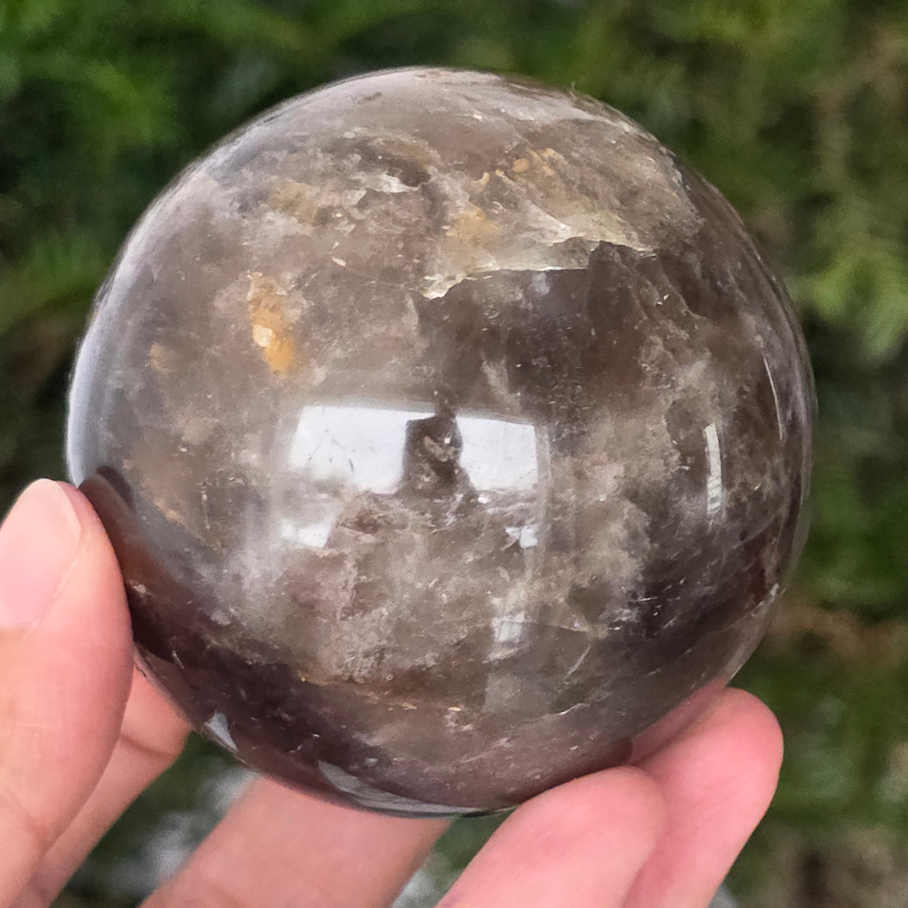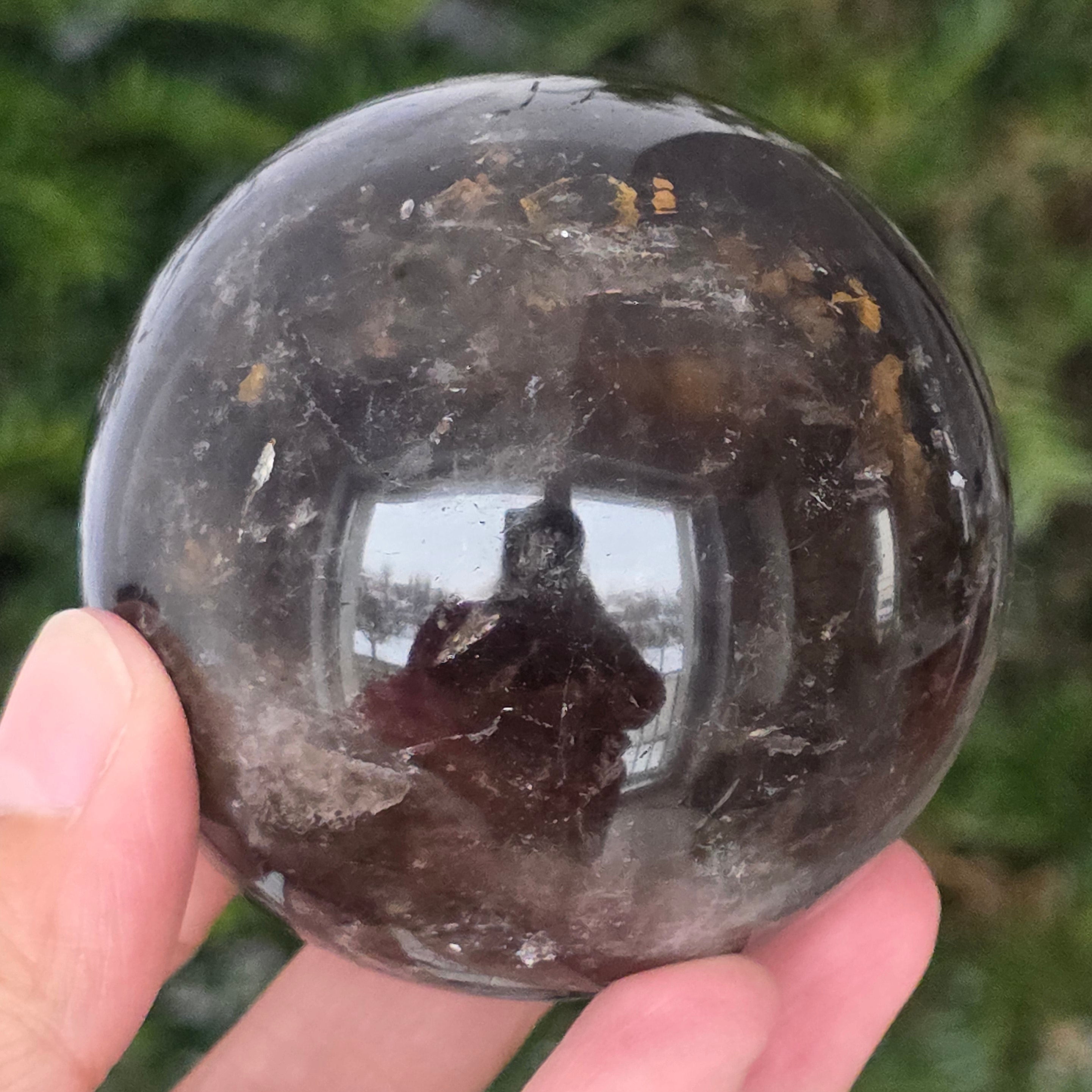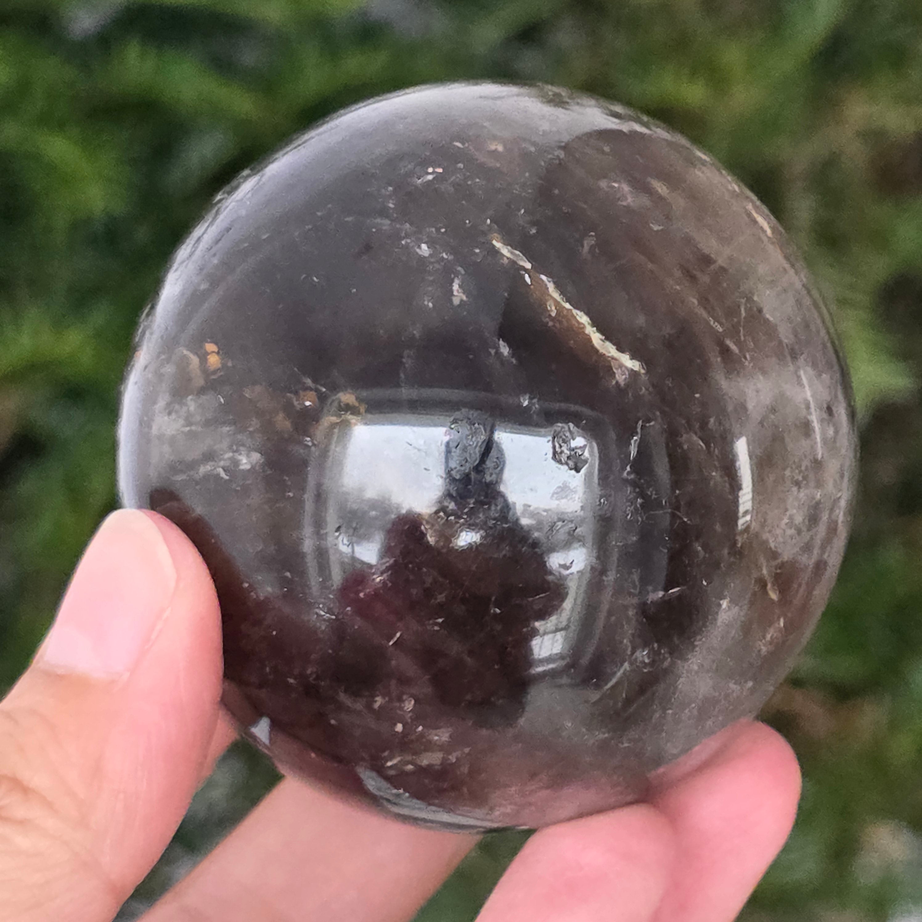 Die Rauchquarzkugel Morion ist ein starkes und elegantes Stück, bekannt für ihren tiefen Farbton, der dichtem Rauch oder klarem Obsidian ähnelt. Morion ist die dunkelste Variante von Rauchquarz und zeigt in dieser perfekt runden Form diskrete Reflexionen, feine interne Details und eine wirklich anspruchsvolle visuelle Präsenz.