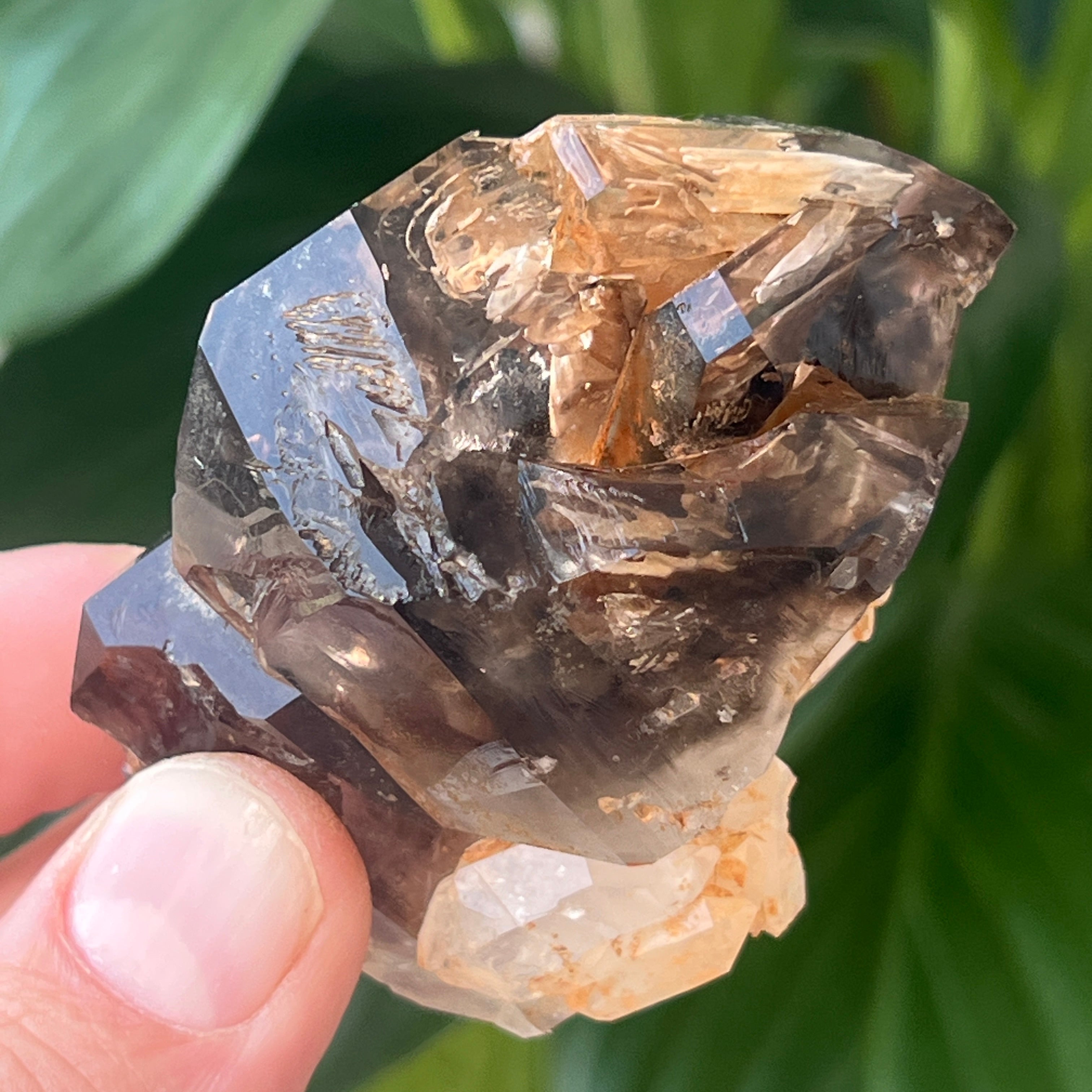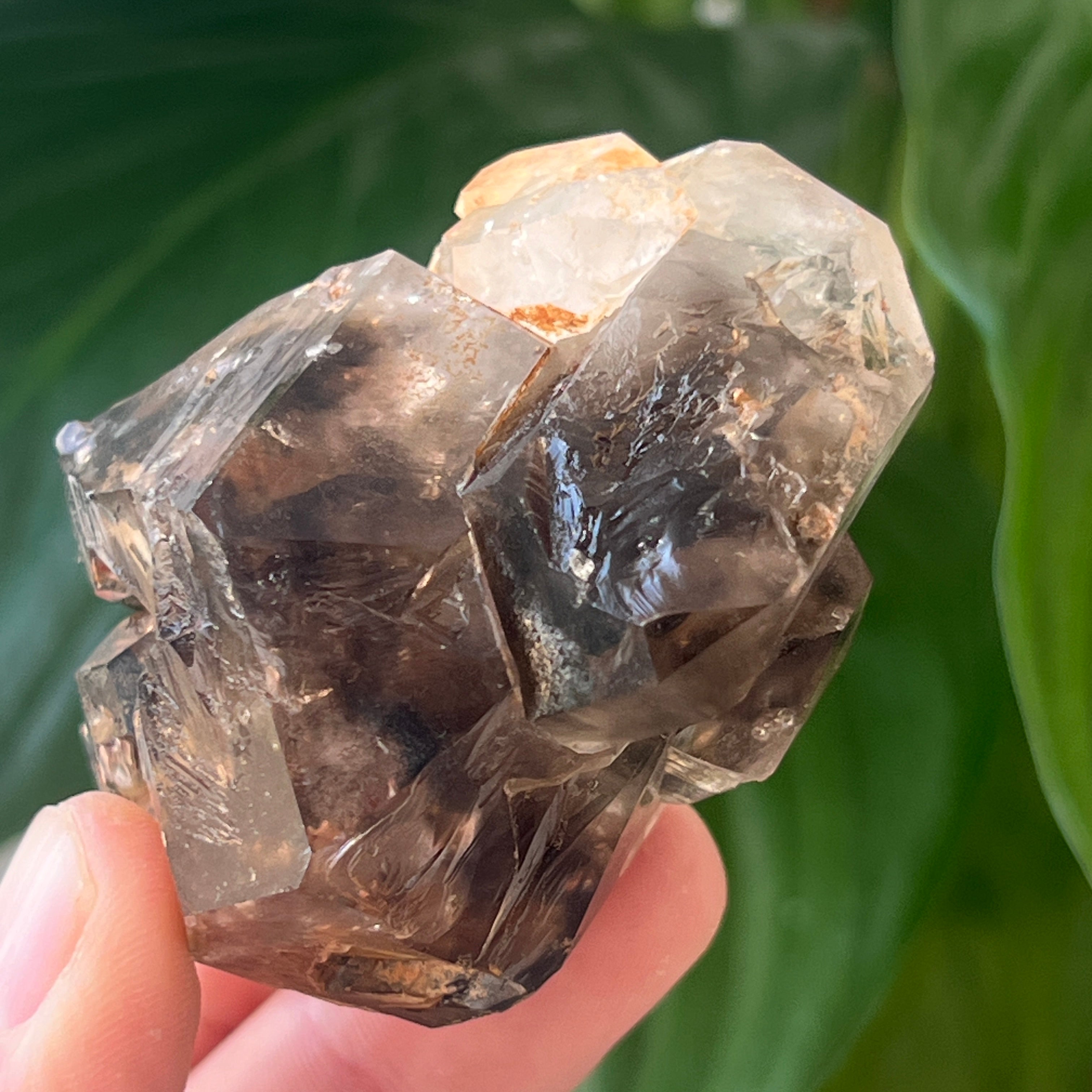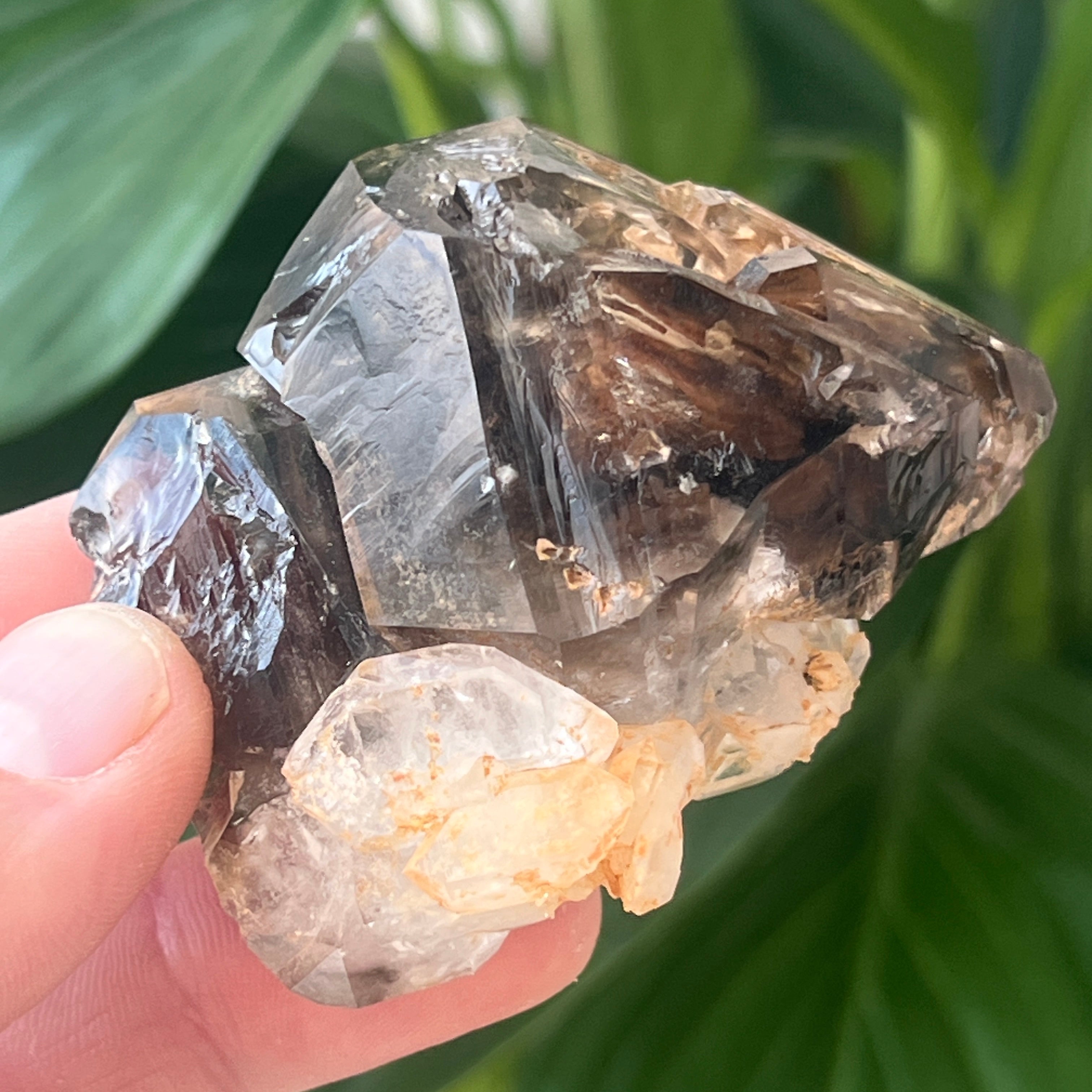 Der Rauchquarz aus dieser Gegend wird besonders wegen seiner natürlichen Klarheit, den warmen Farbtönen von durchscheinendem Braun bis Tiefbraun und den perfekt entwickelten Formen im trigonalen System geschätzt. Einige Kristalle weisen Doppelabschlüsse, Zepterformen oder faszinierende Einschlüsse auf – von hydrothermalen Dämpfen und beweglichen Blasen bis hin zu Spuren von Hämatit oder Rutil. Die natürliche Präsenz der Strahlung der umliegenden Gesteine während der Kristallbildung verleiht diesem authentischen rauchigen Farbton ohne Wärmebehandlungen oder menschliches Eingreifen.