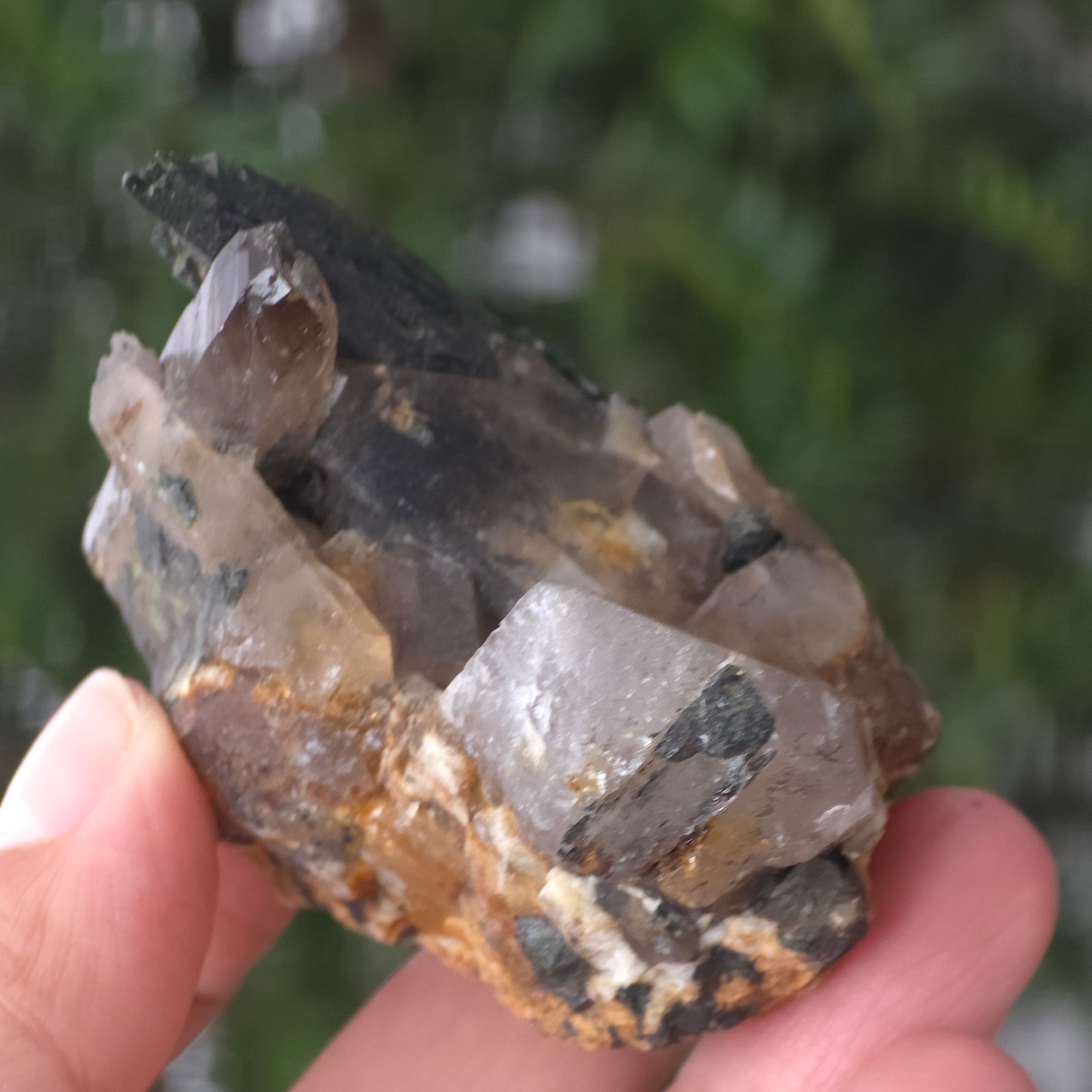 Rauchquarz ist eine der elegantesten und geheimnisvollsten Sorten von Naturquarz, bekannt für seine warmen Farbtöne – von transluzentem Grau bis zu dunklem Braun, manchmal mit fast schwarzen Nuancen. Er entsteht tief in der Erdkruste, wo natürliche Strahlung die Struktur des transparenten Quarzkristalls verändert und diesen charakteristischen rauchigen Ton hervorbringt. Jedes Exemplar ist ein Zeugnis geologischer Geduld, ein Kristall, der langsam unter perfekt ausgeglichenen Druck- und Temperaturbedingungen gewachsen ist.