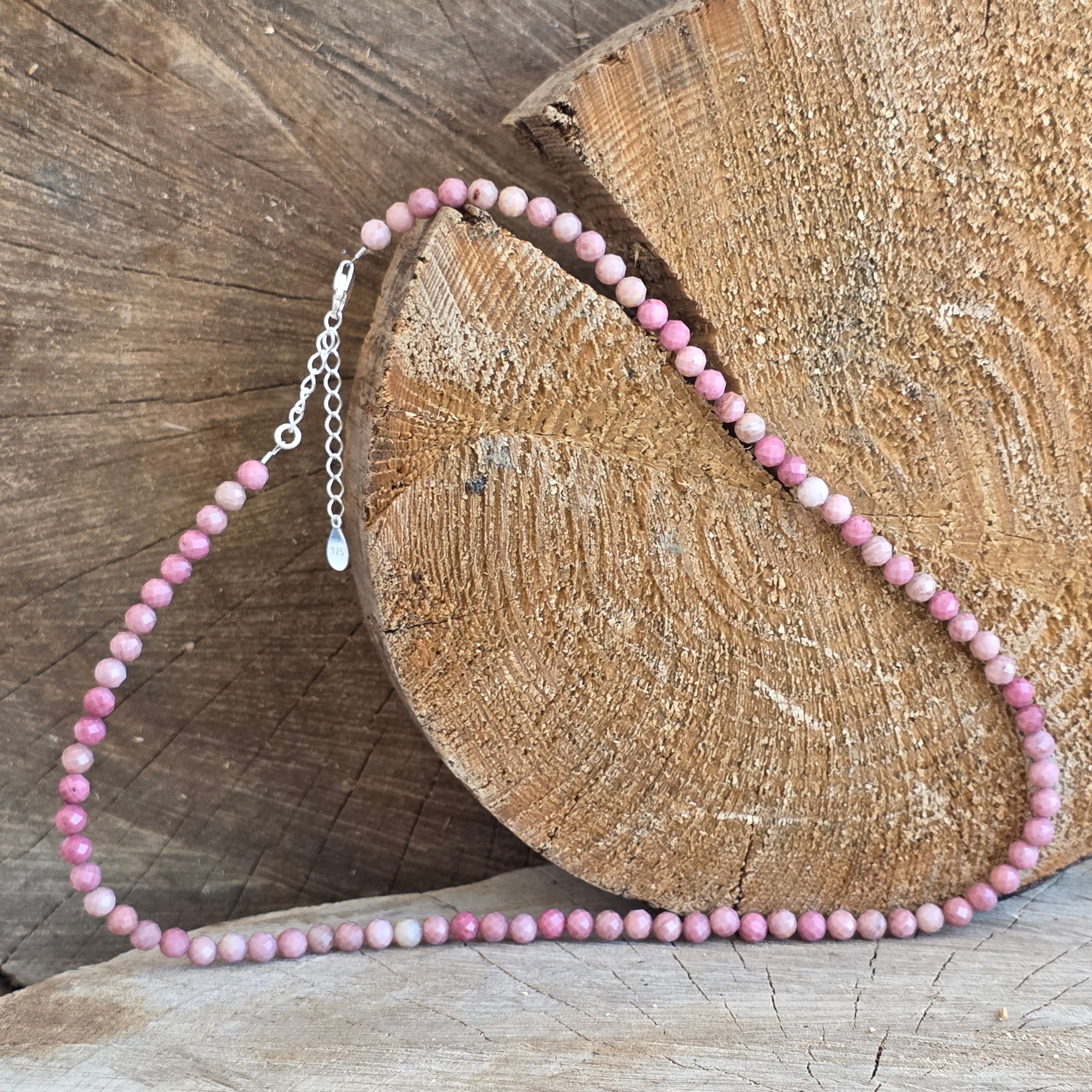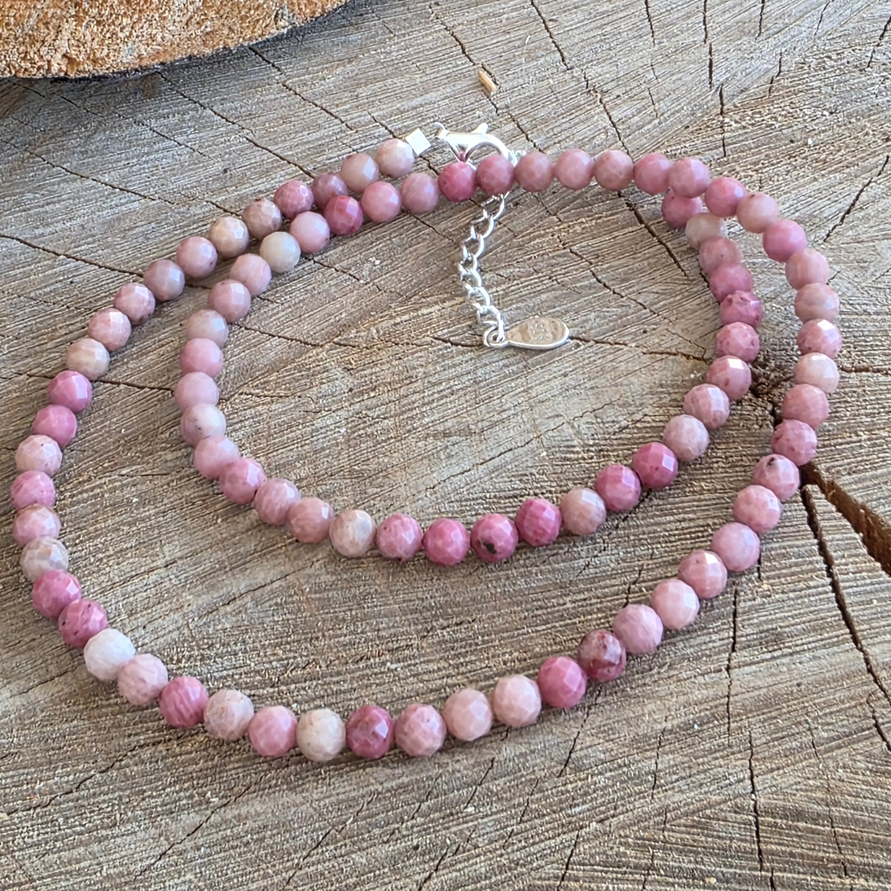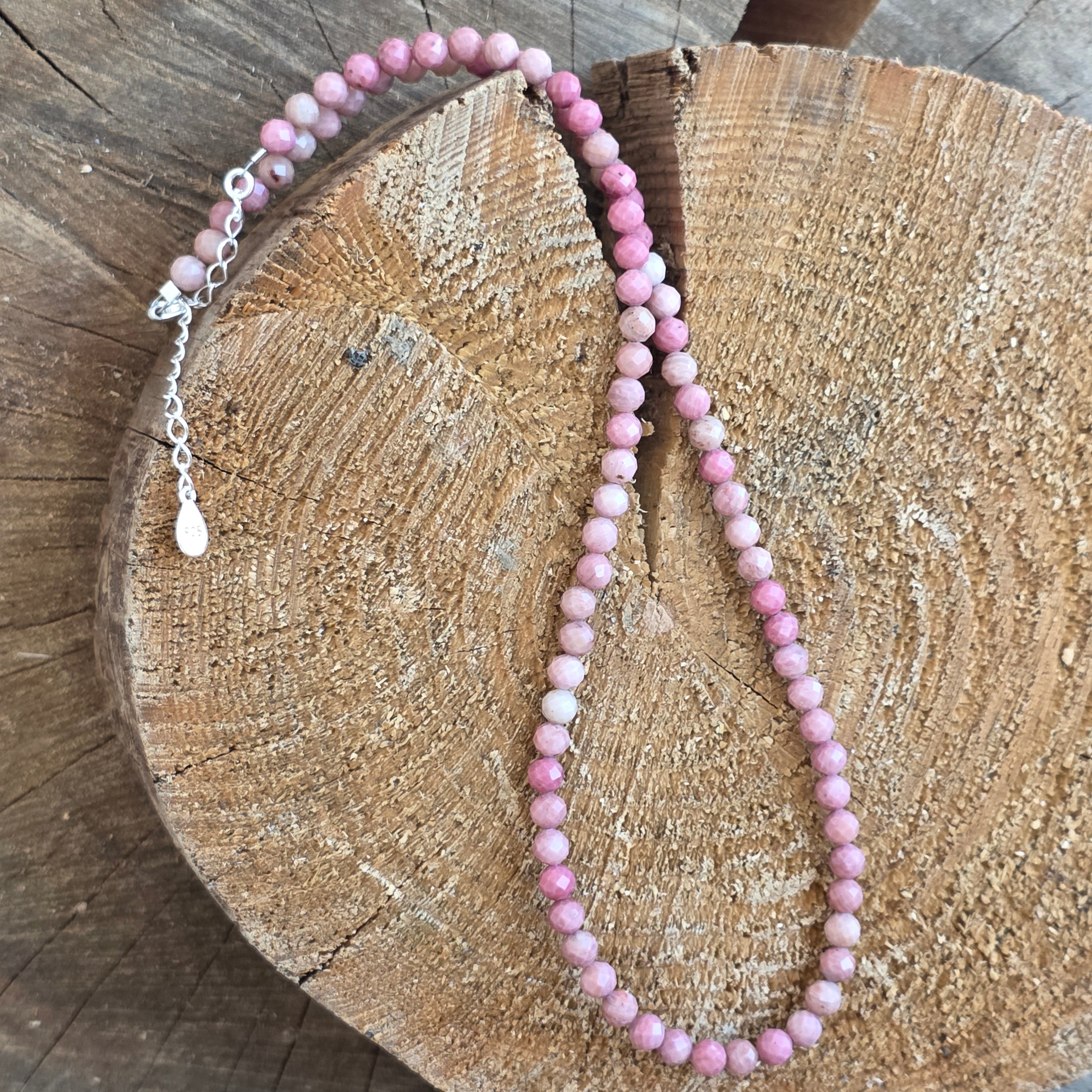 Materialien: natürlicher rosa Opal, facettierte Perlen 3 mm, 925 Silber