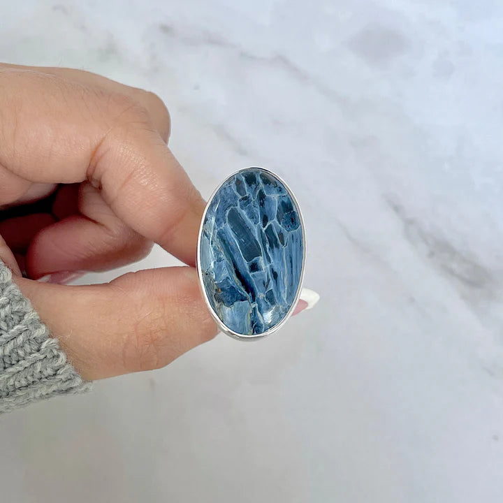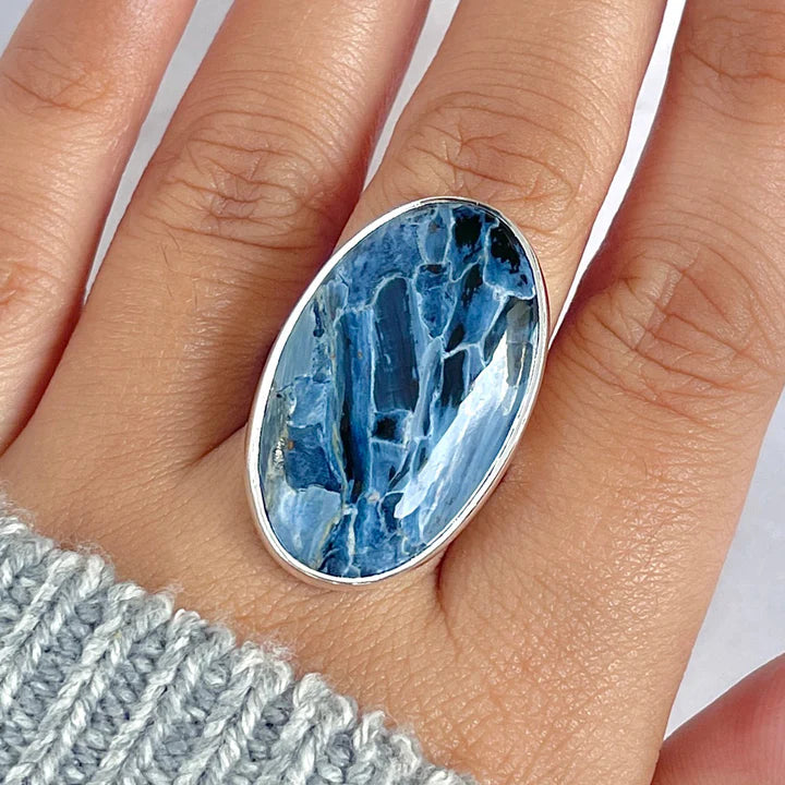Ein einzigartiger Ring, der die Eleganz von Silberschmuck mit der visuellen und energetischen Kraft von Pietersit kombiniert – eine ideale Wahl für diejenigen, die ein Schmuckstück mit besonderer Persönlichkeit suchen.