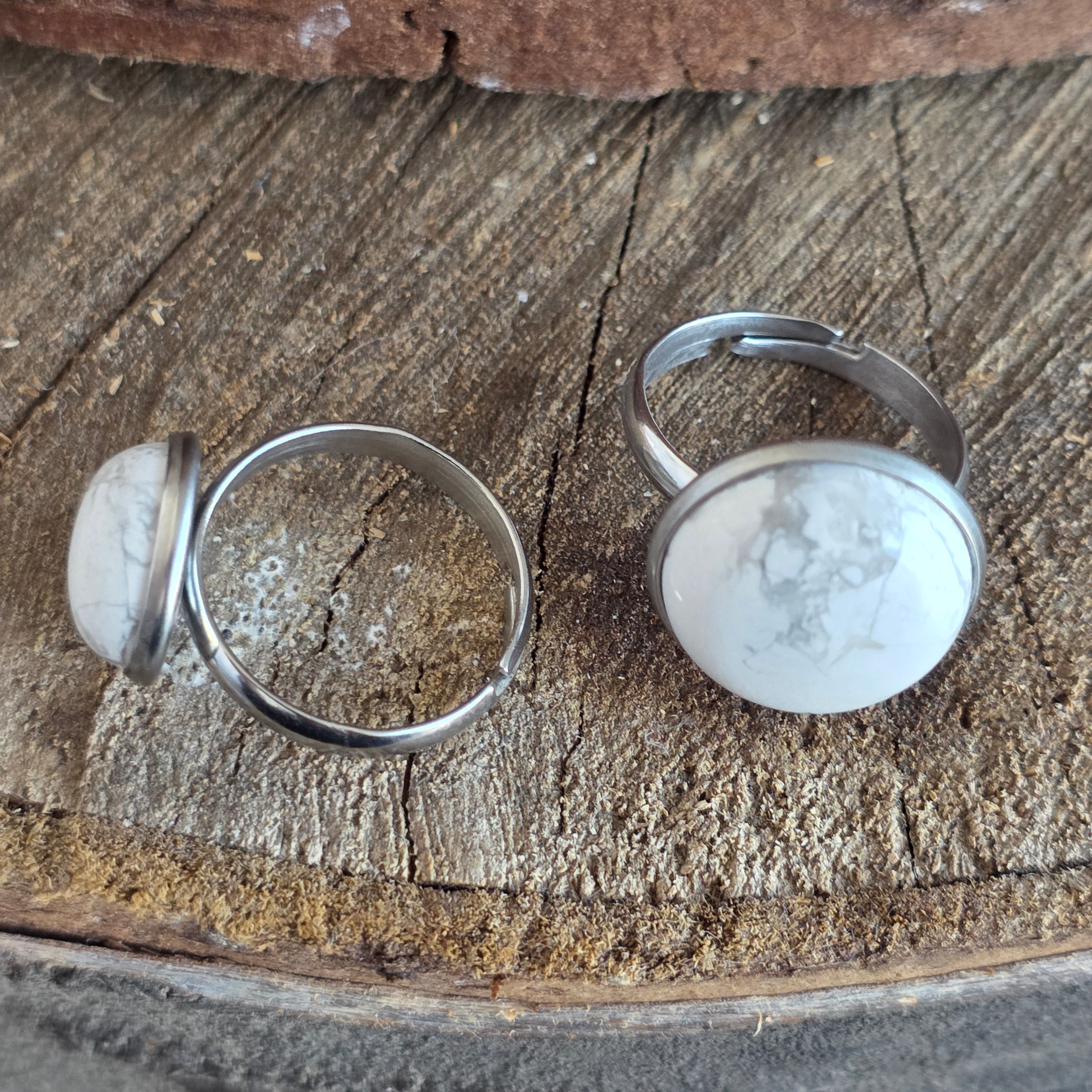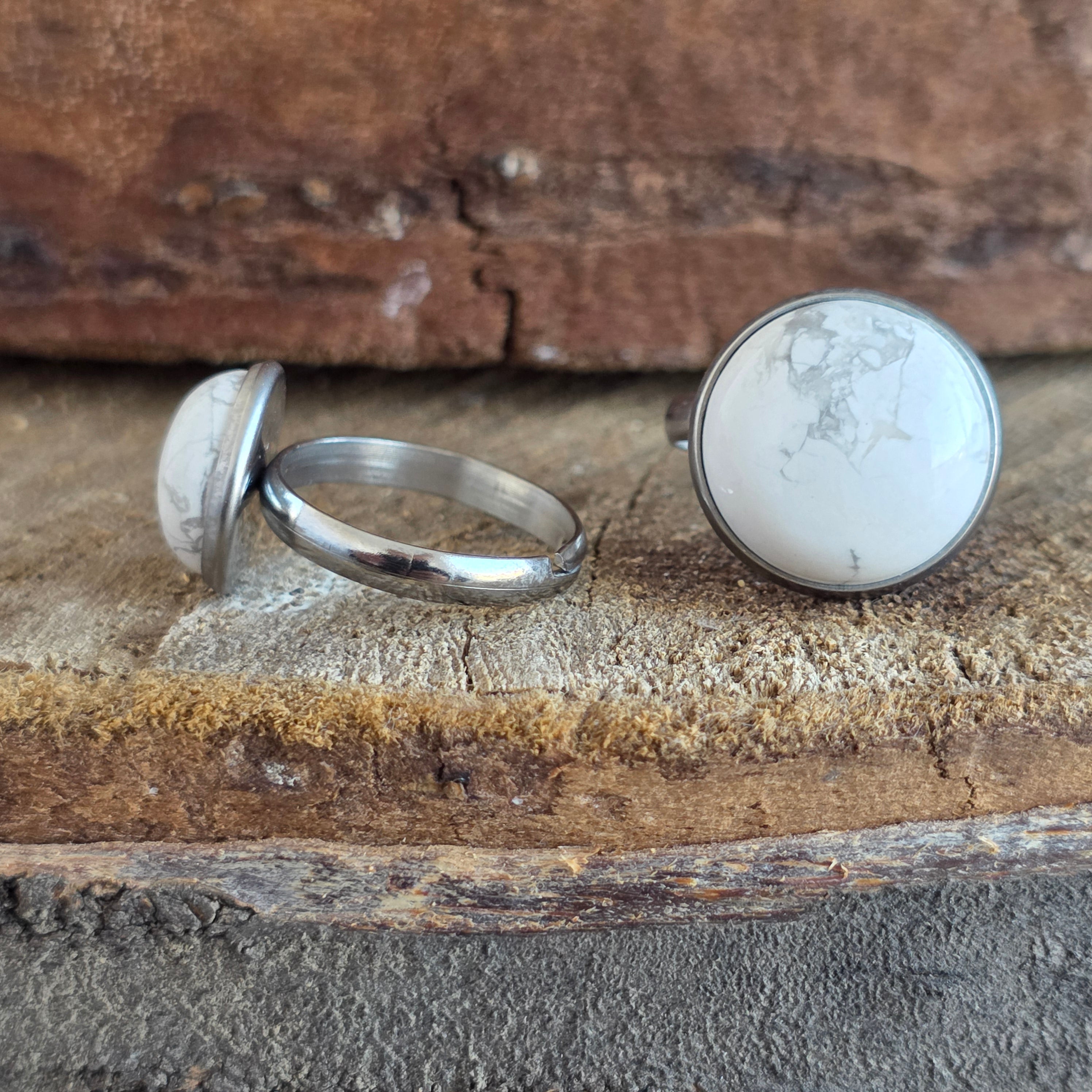 Beschreibung - Ring mit weißem Howlithstein | ROUND