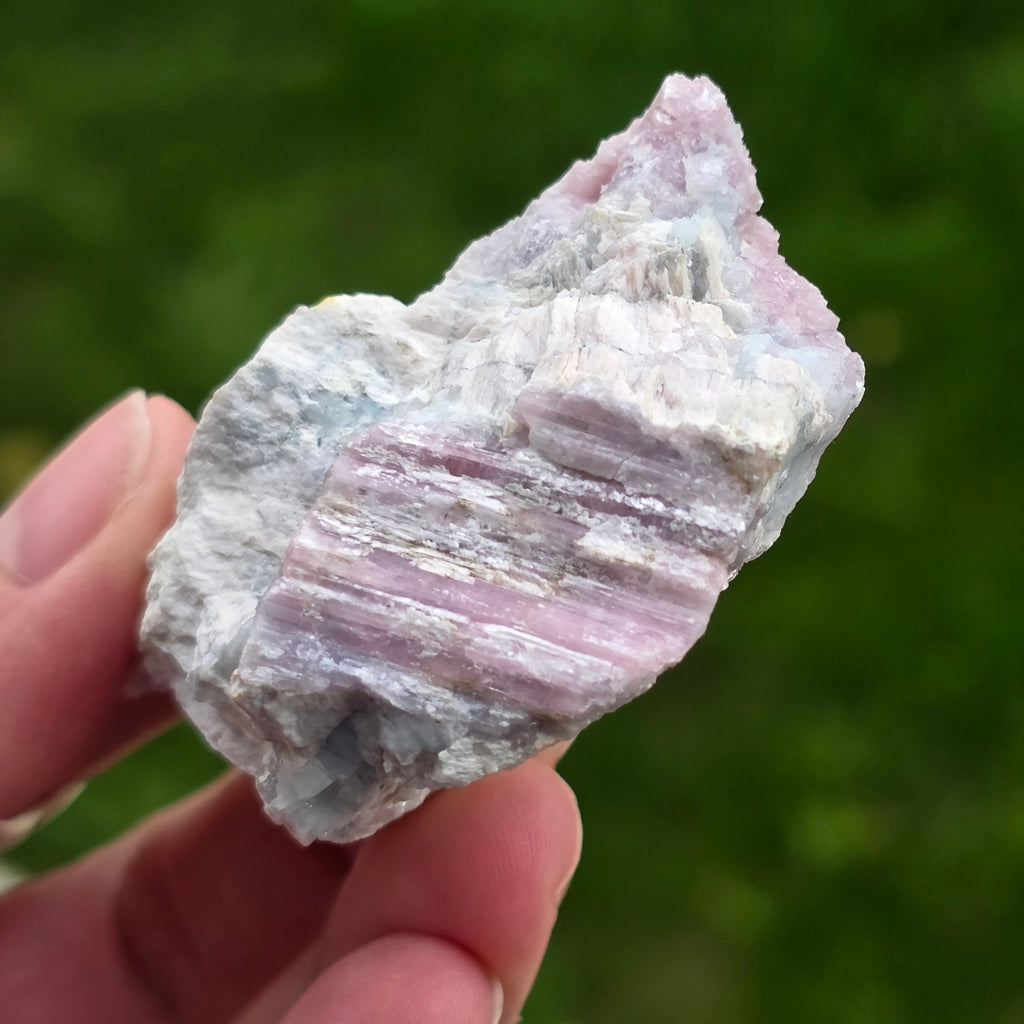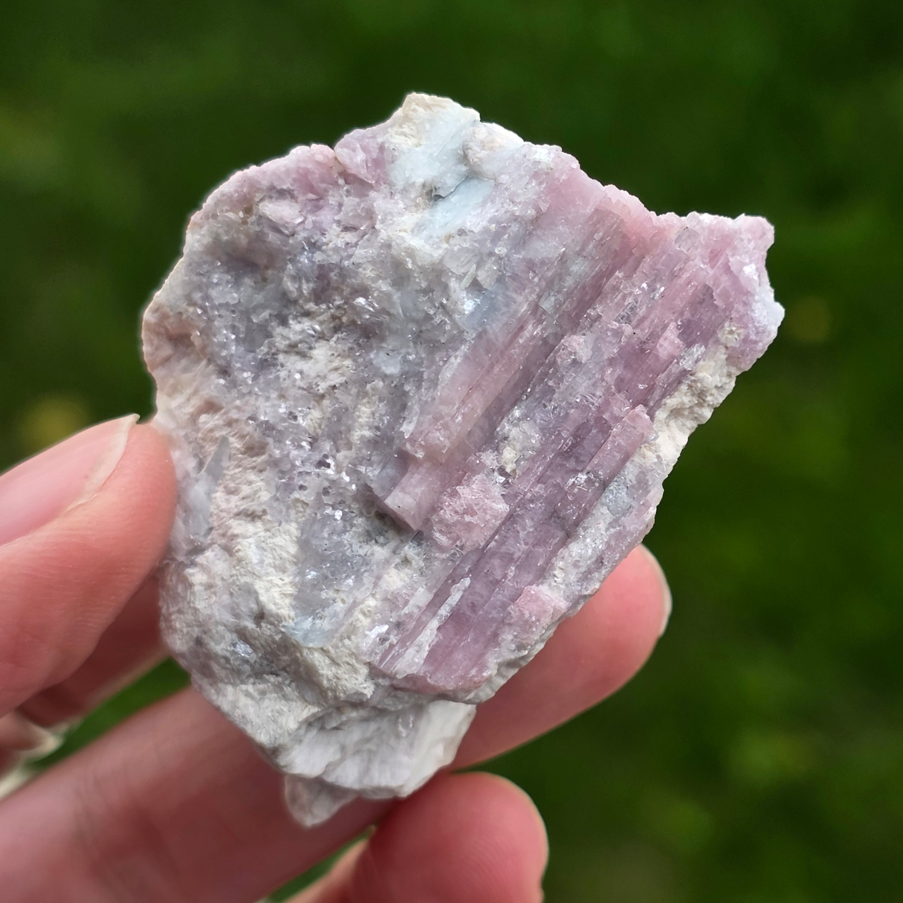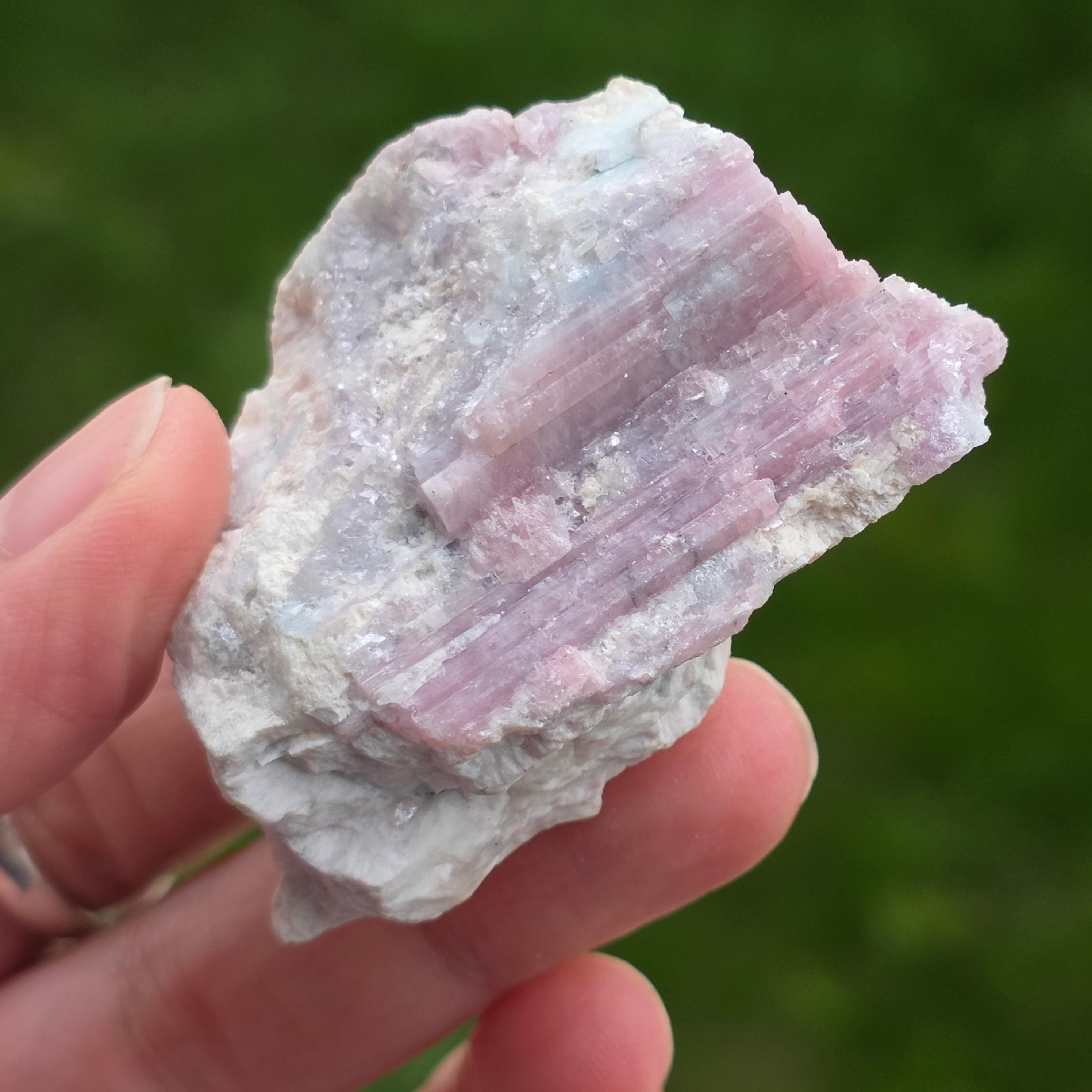 Pink Turmalin ist mit Herzenergien verbunden und es wird angenommen, dass sie Eigenschaften beruhigender, emotionaler Heilung, Förderung von Selbstliebe und harmonischen Beziehungen haben.