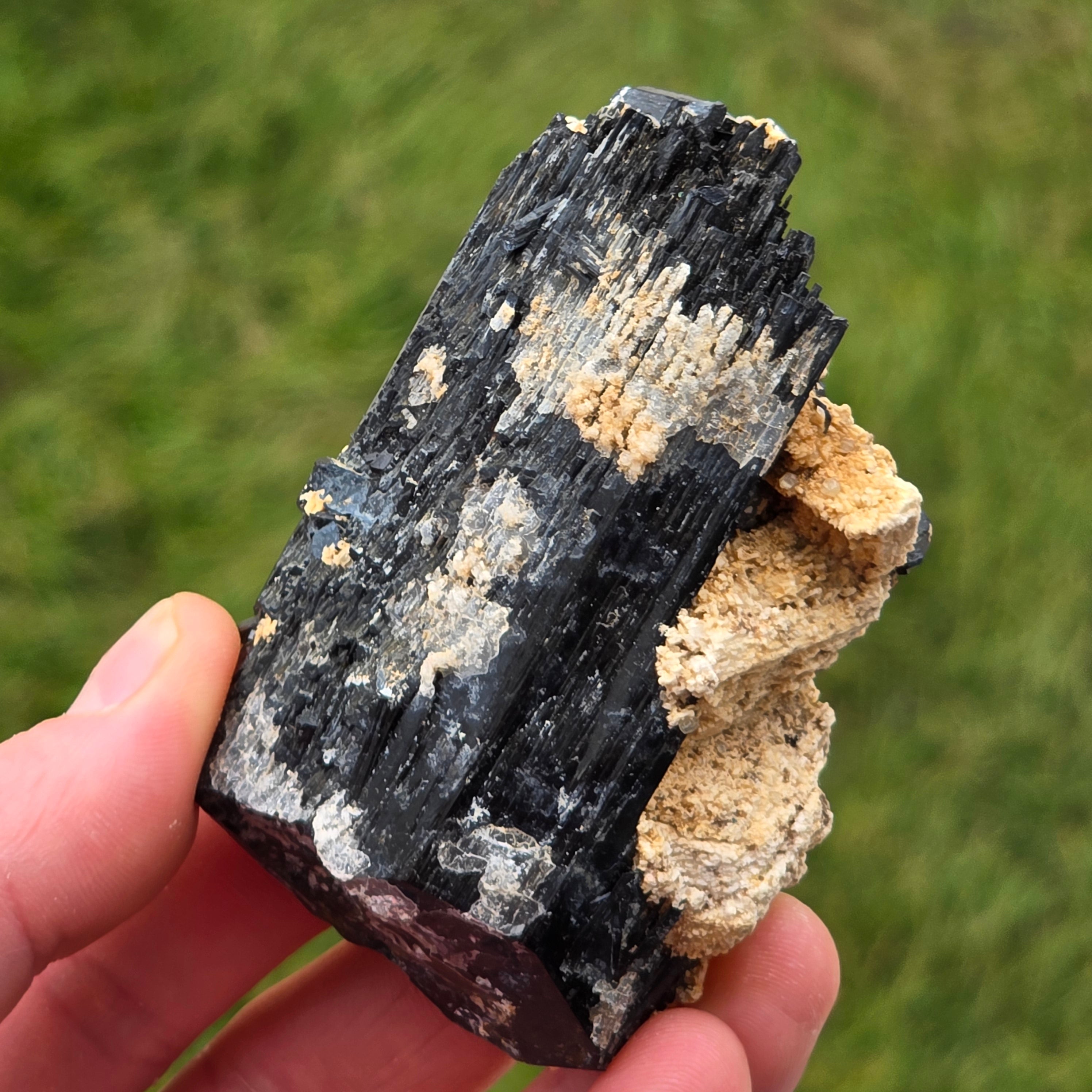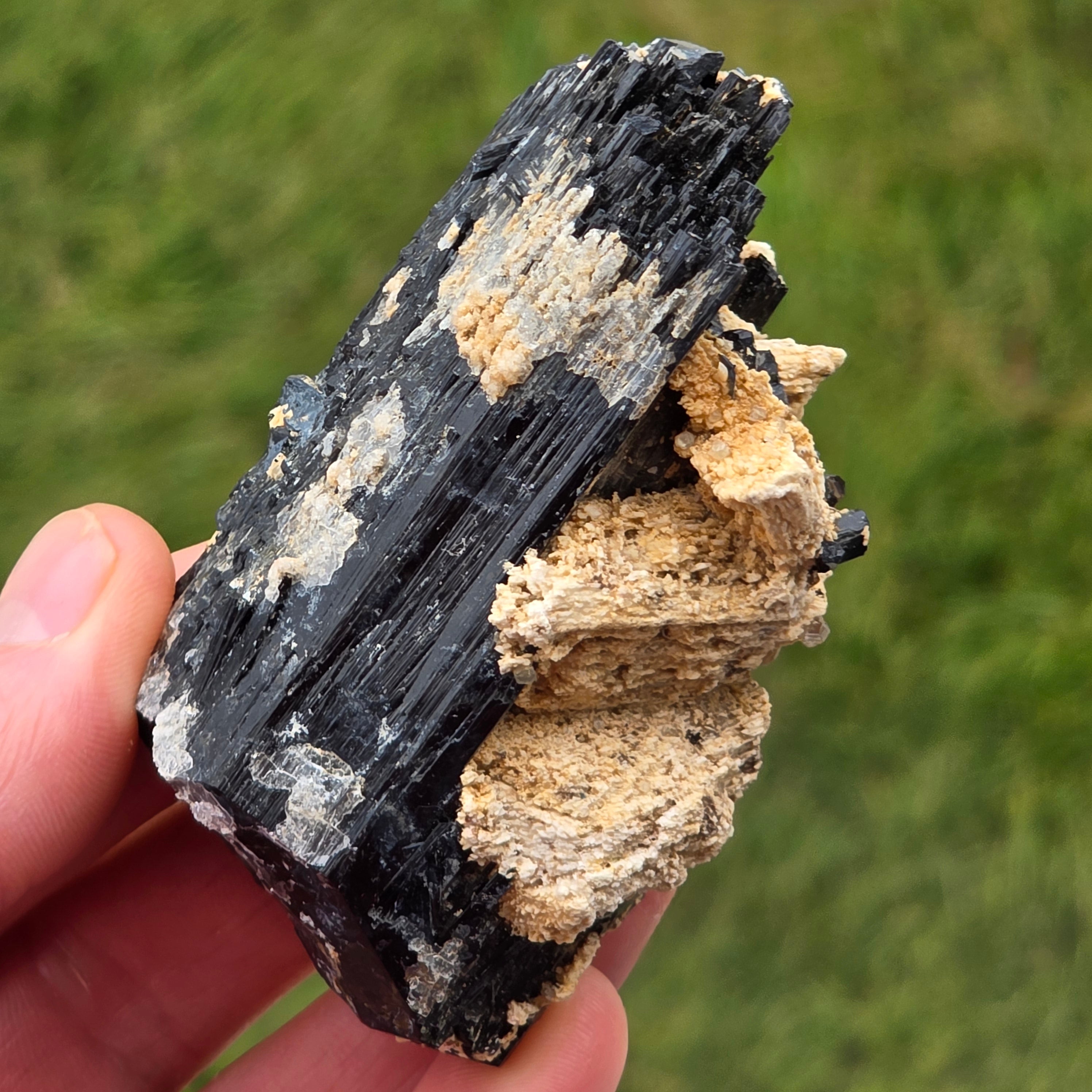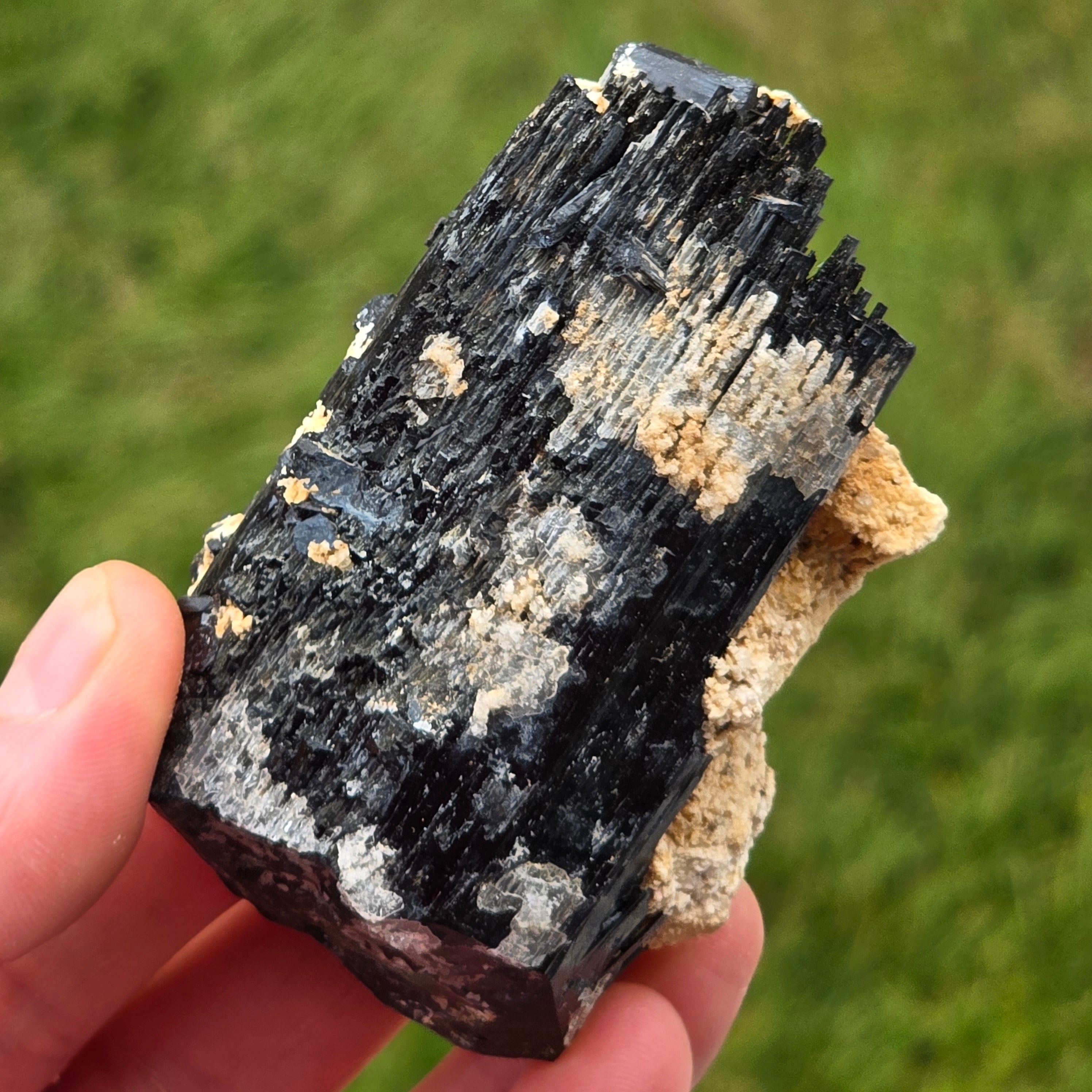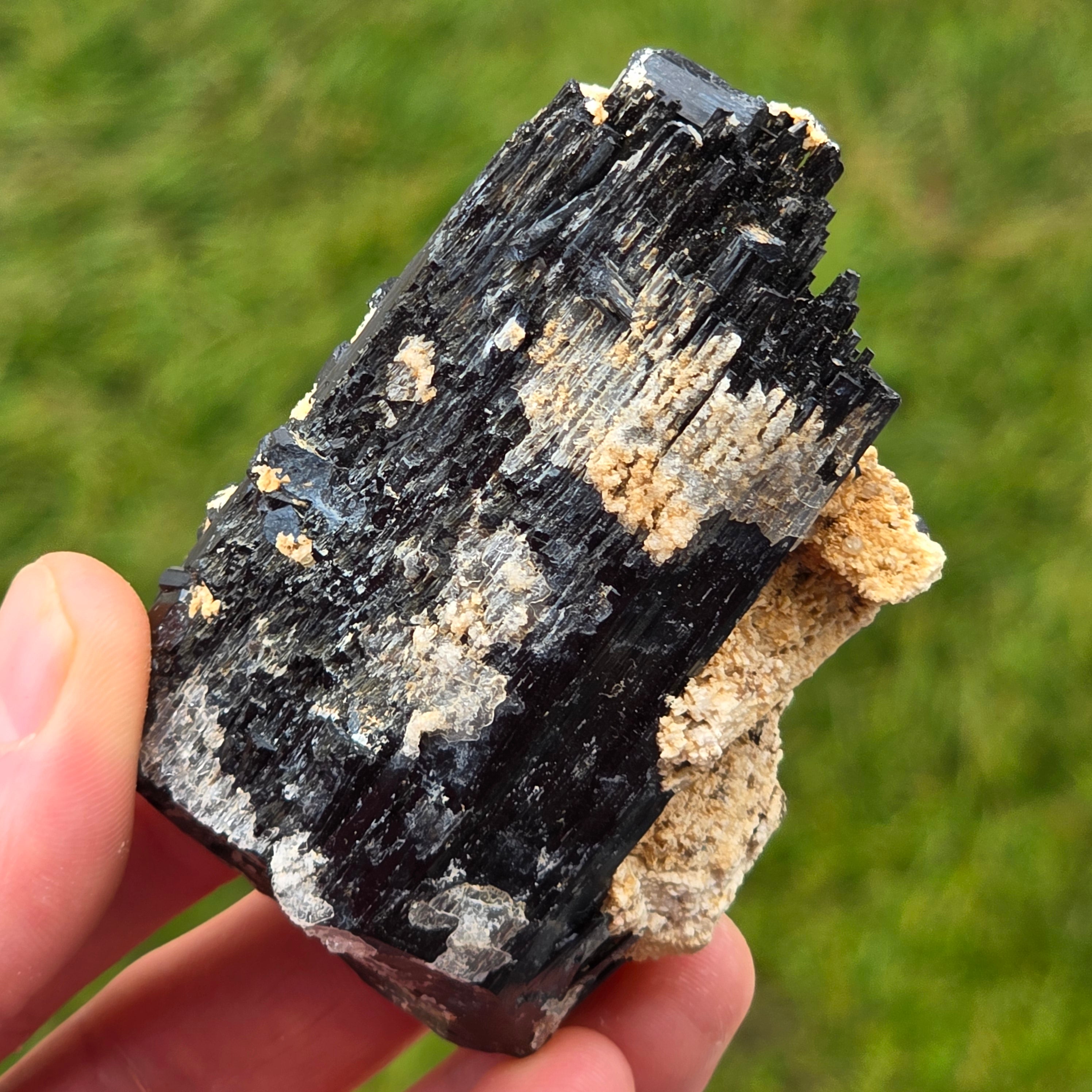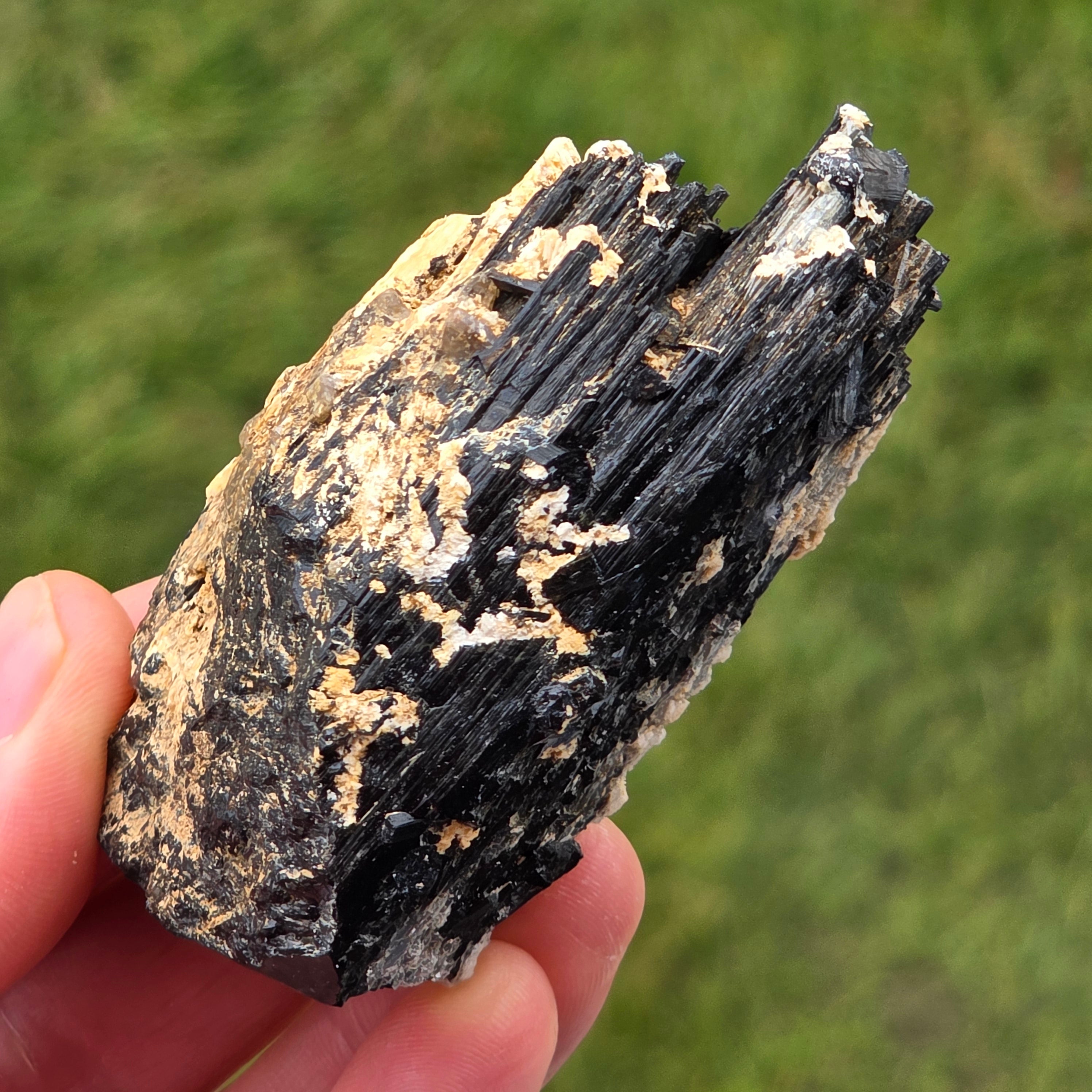 Schwarzer Turmalin, auch als Schörl bekannt, besteht aus einer komplexen Mischung von Borosilikaten und kommt in verschiedenen Kristallformen vor. Es ist ein sehr hartes Mineral und ist widerstandsfähig gegen Kratzer und Abnutzung.