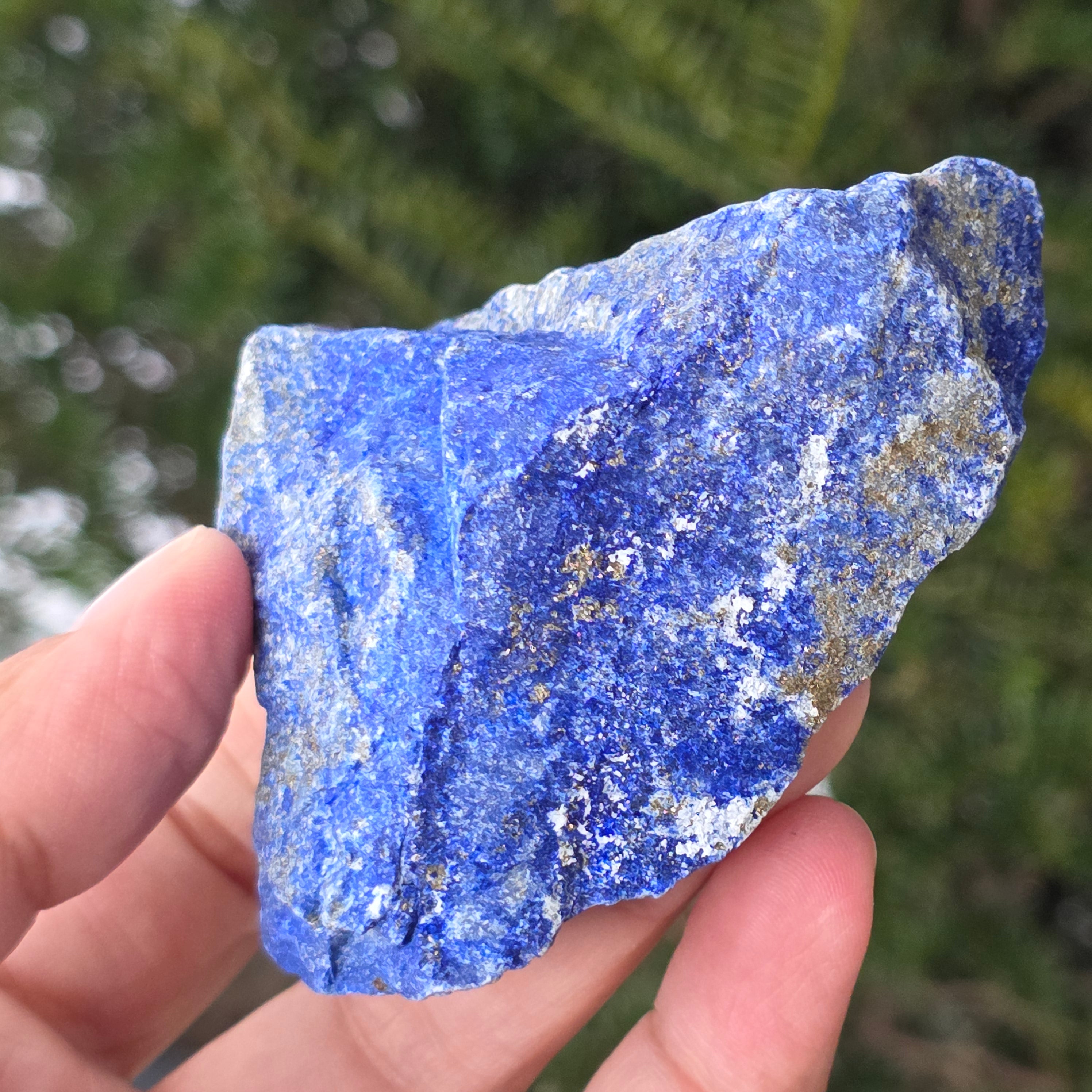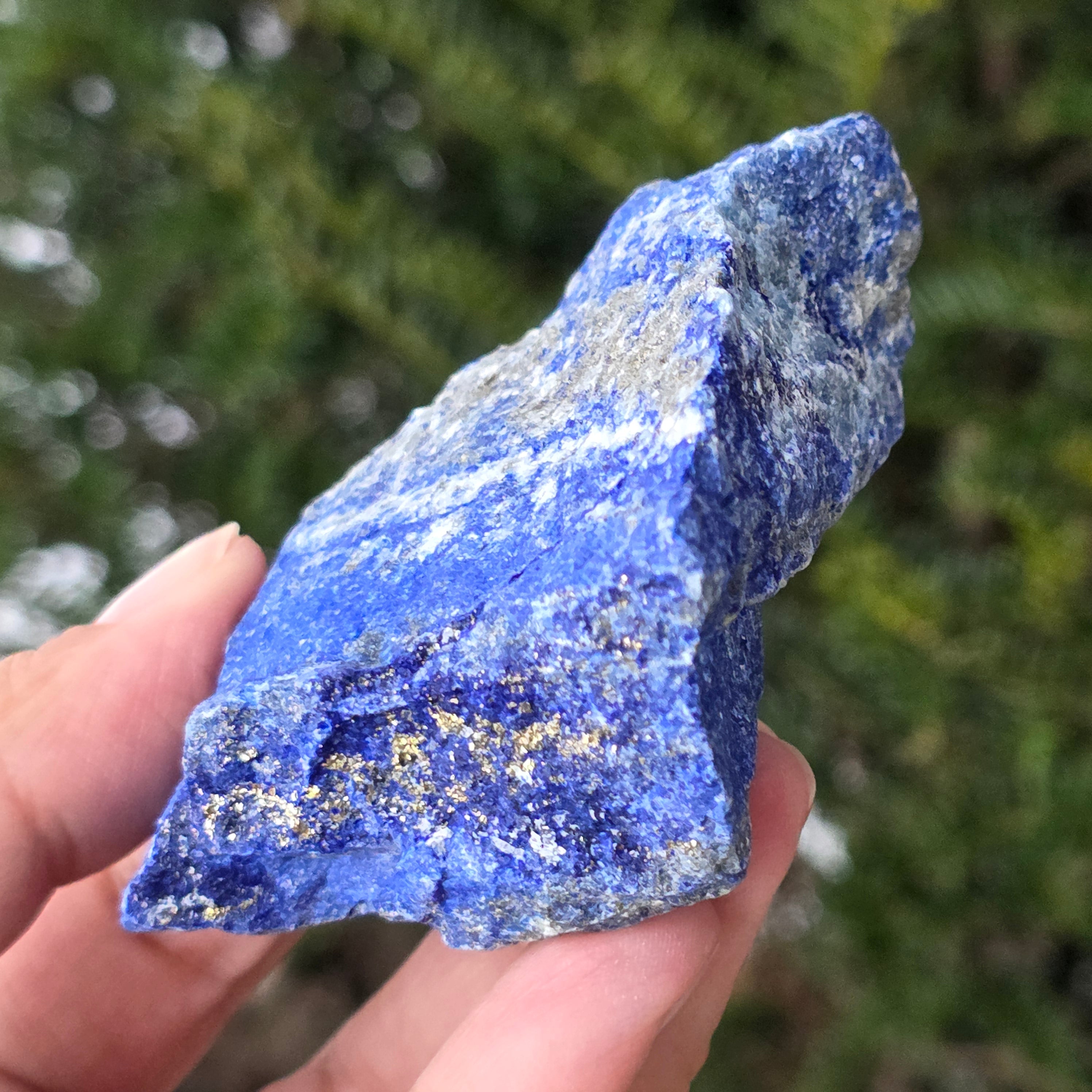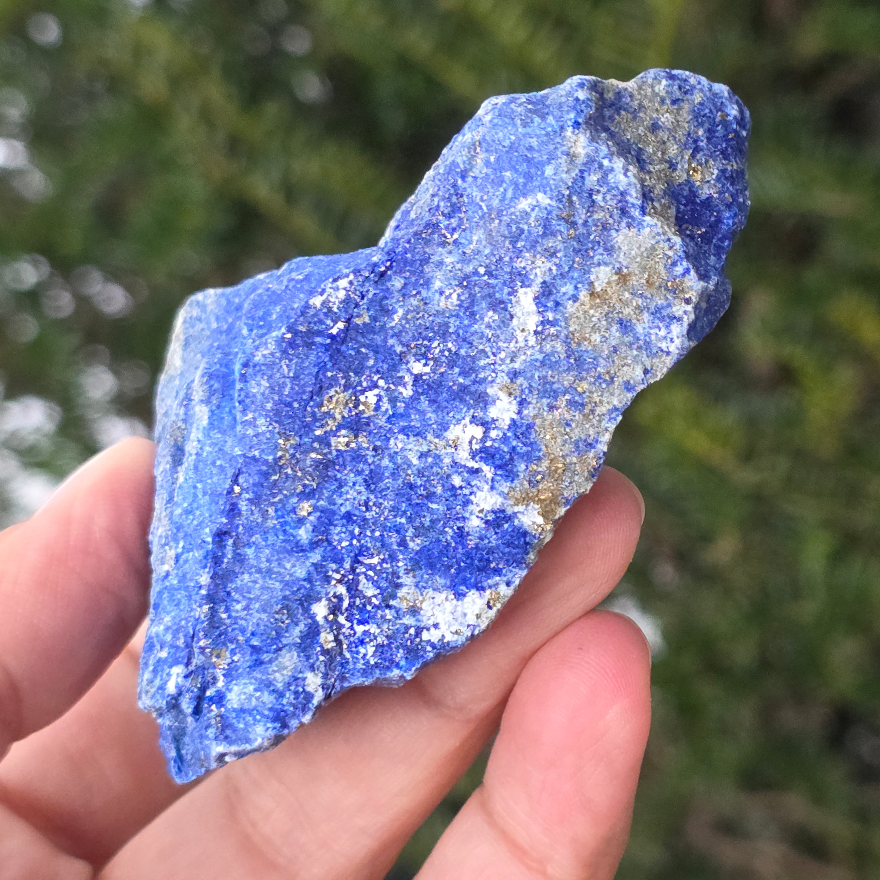 Lapislazuli ist ein Halbedelstein, der aus einer Mischung von Lazurit, Calcit und Pyrit besteht, wobei Lazurit den größten Anteil hat.