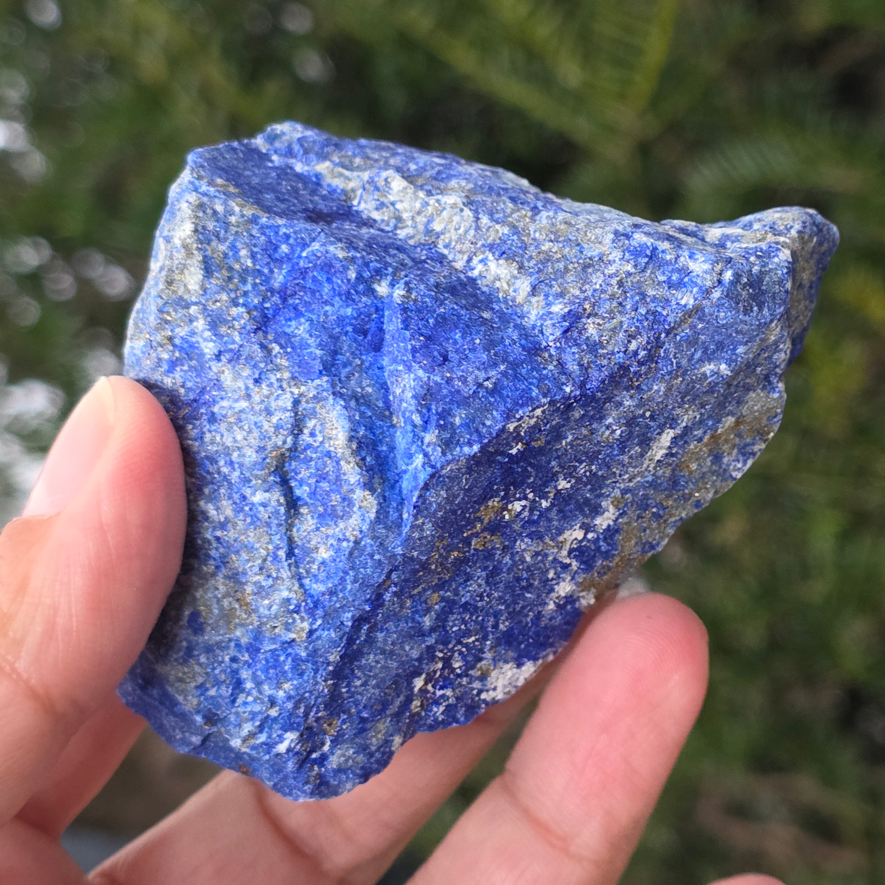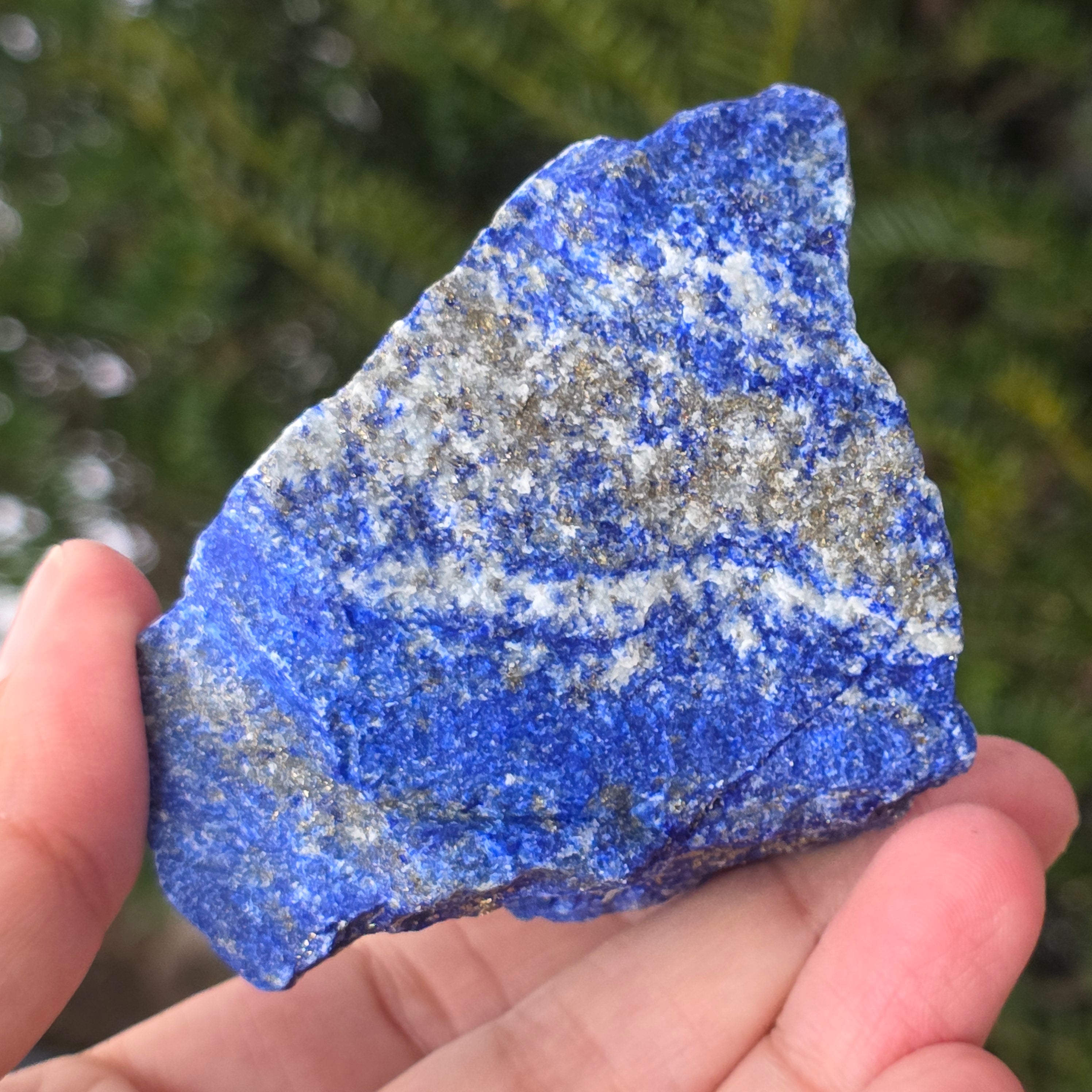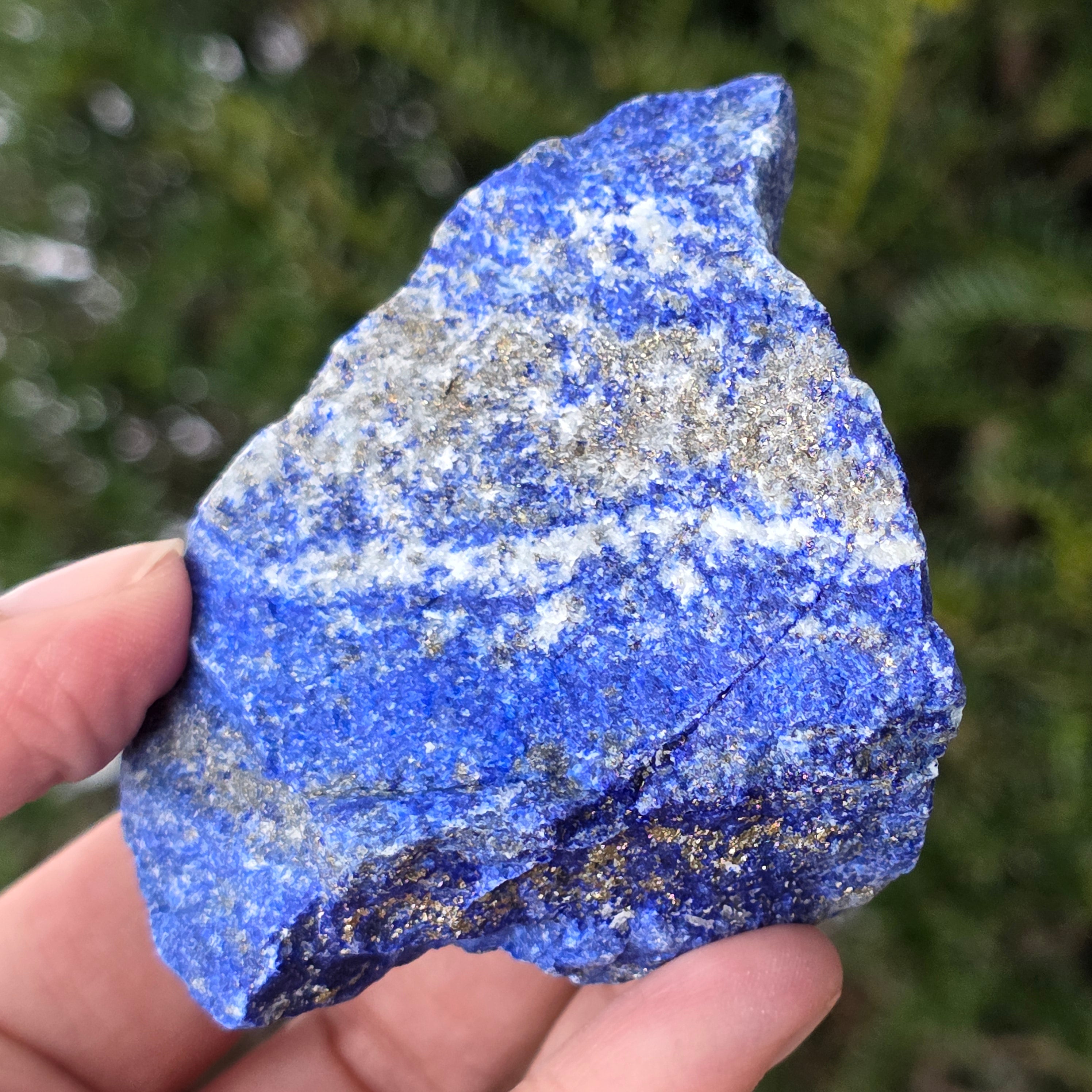 Lapislazuli ist ein Halbedelstein, der aus einer Mischung von Lazurit, Calcit und Pyrit besteht, wobei Lazurit den größten Anteil hat.