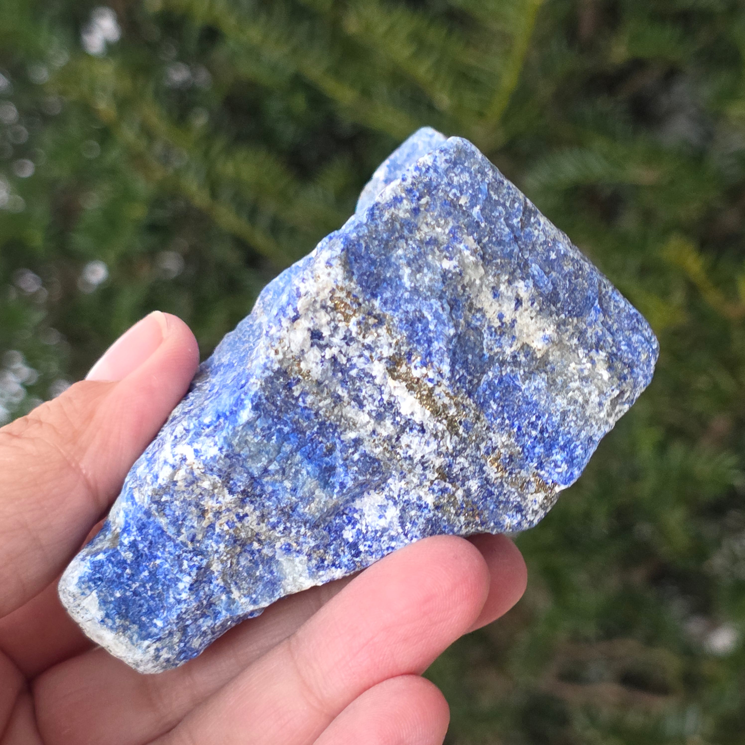 Lapis Lazuli ist ein Halbedelstein, der aus einer Mischung von Lapis, Calcit und Pyrit besteht, wobei der Lapis-Anteil am größten ist.