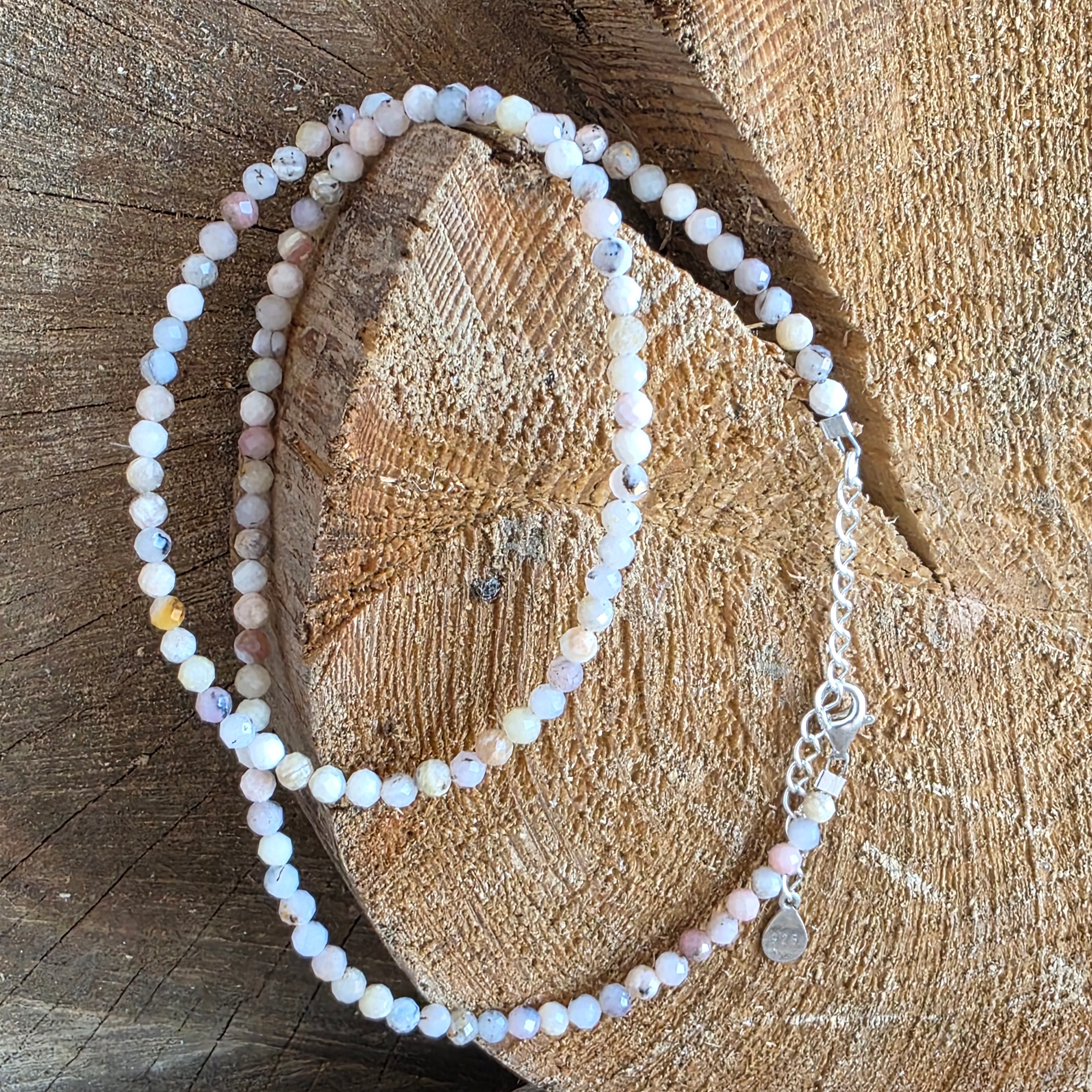 Materialien: natürlicher rosa Opal, facettierte Perlen 3 mm, 925er Silber