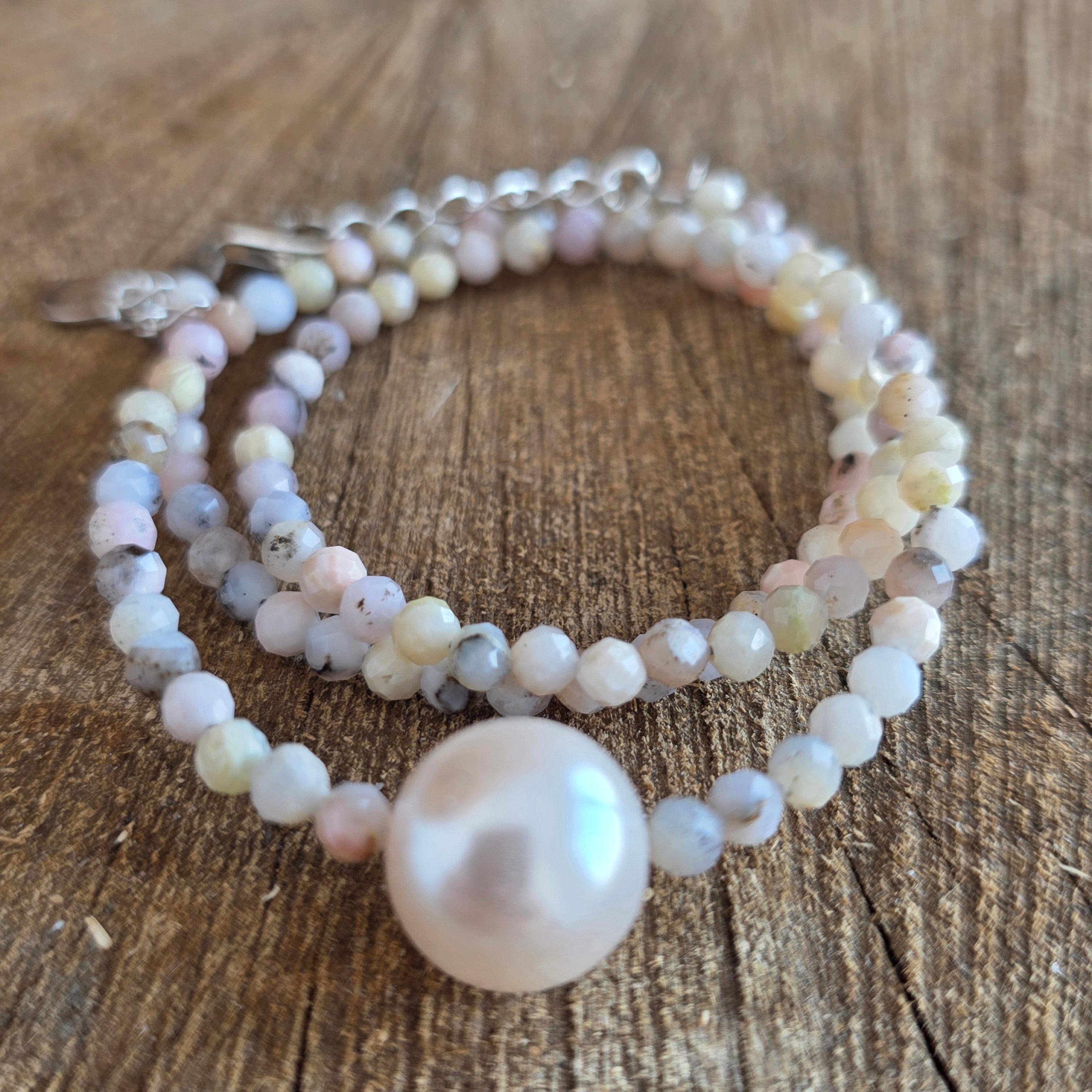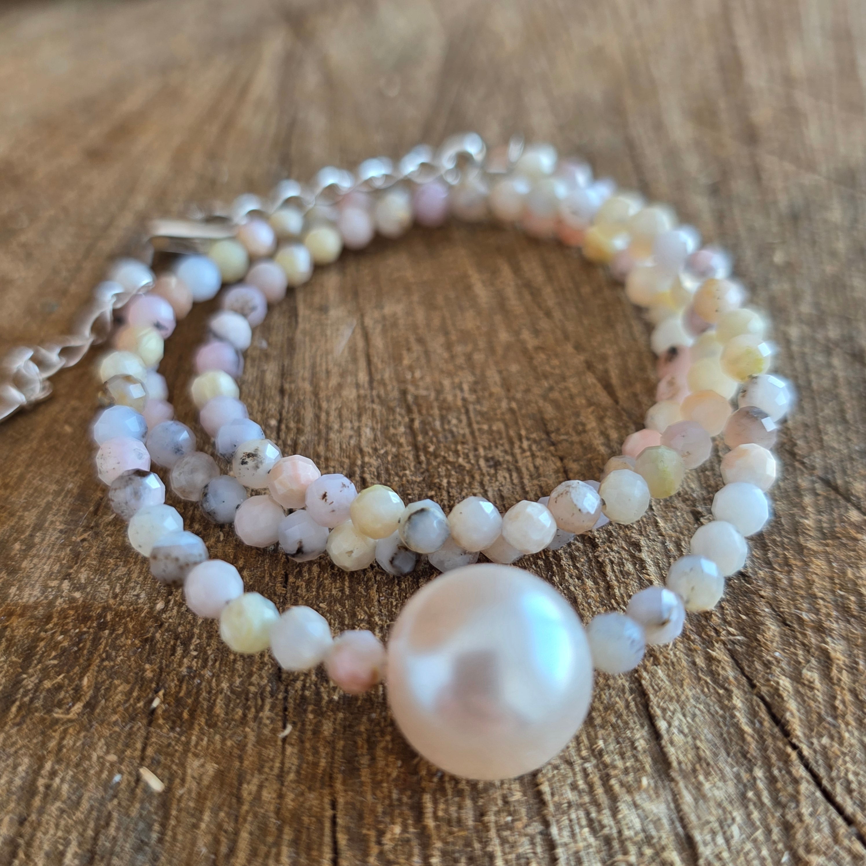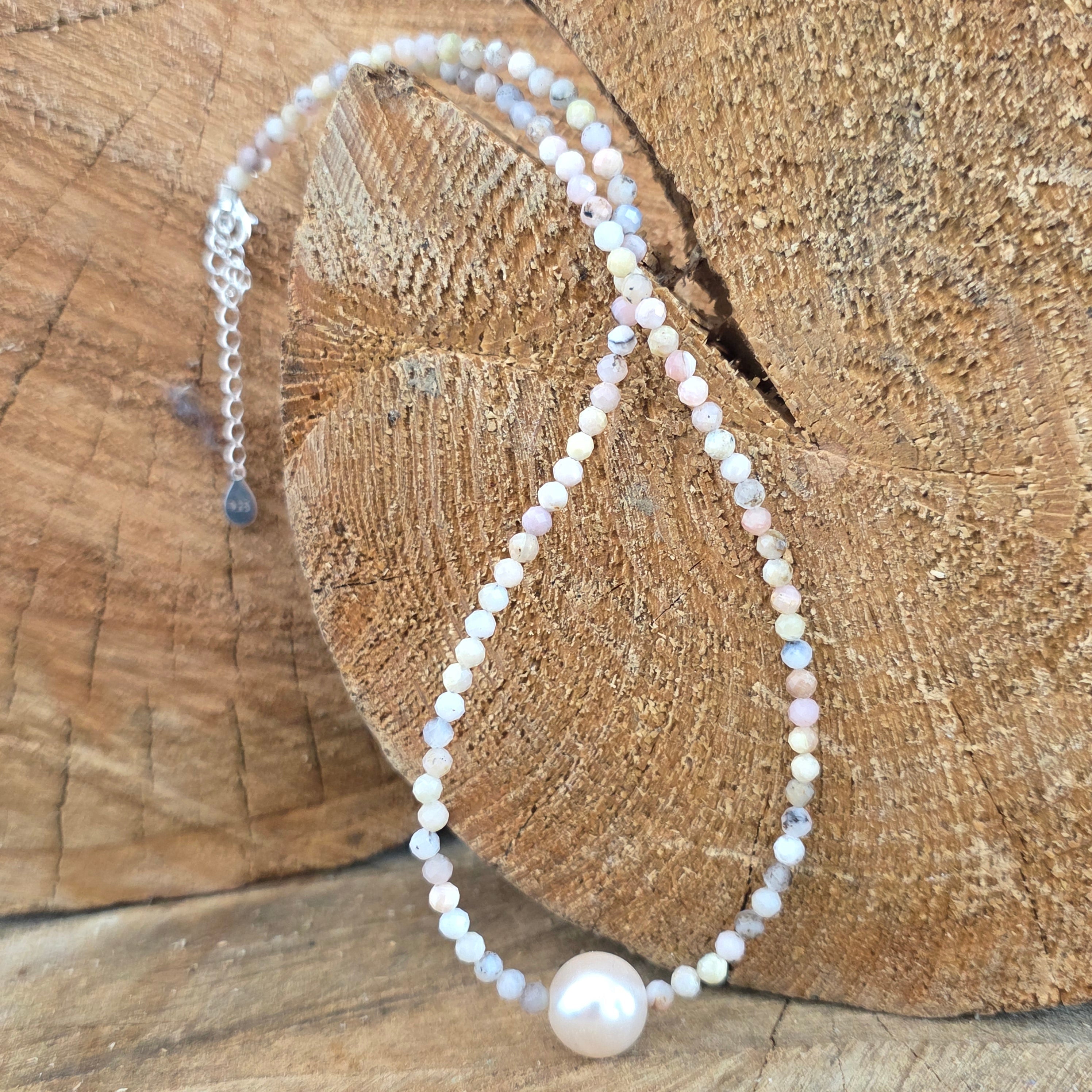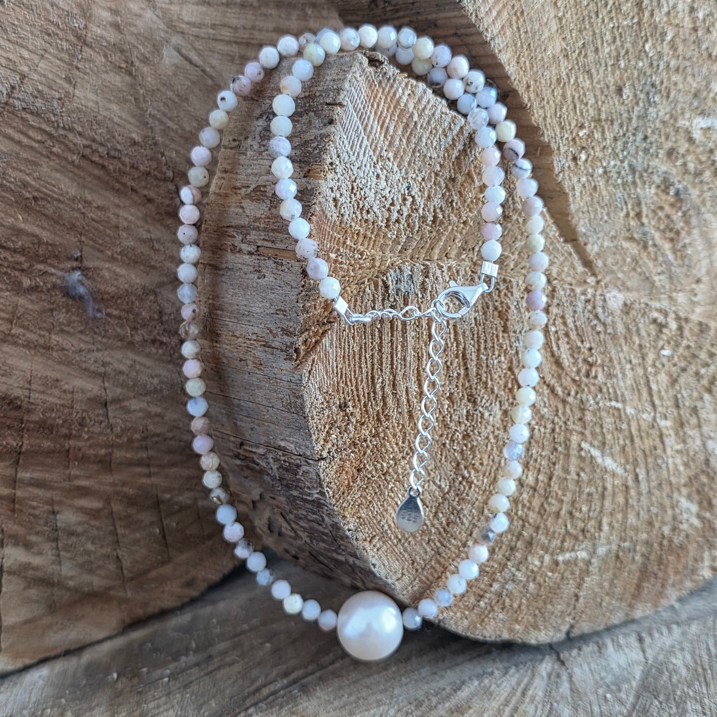 Materialien: natürlicher rosa Opal, facettierte Perlen 3 mm, 925er Silber