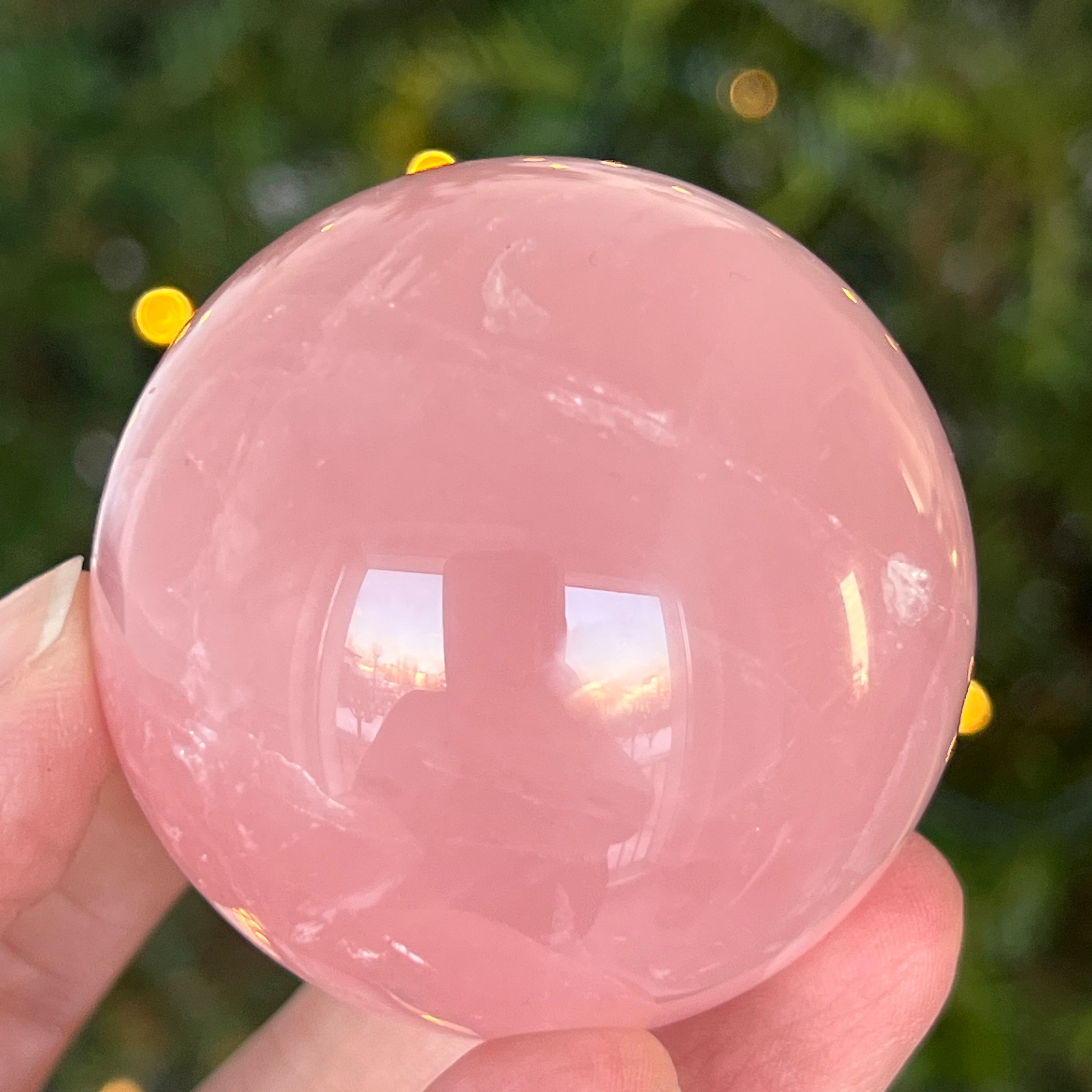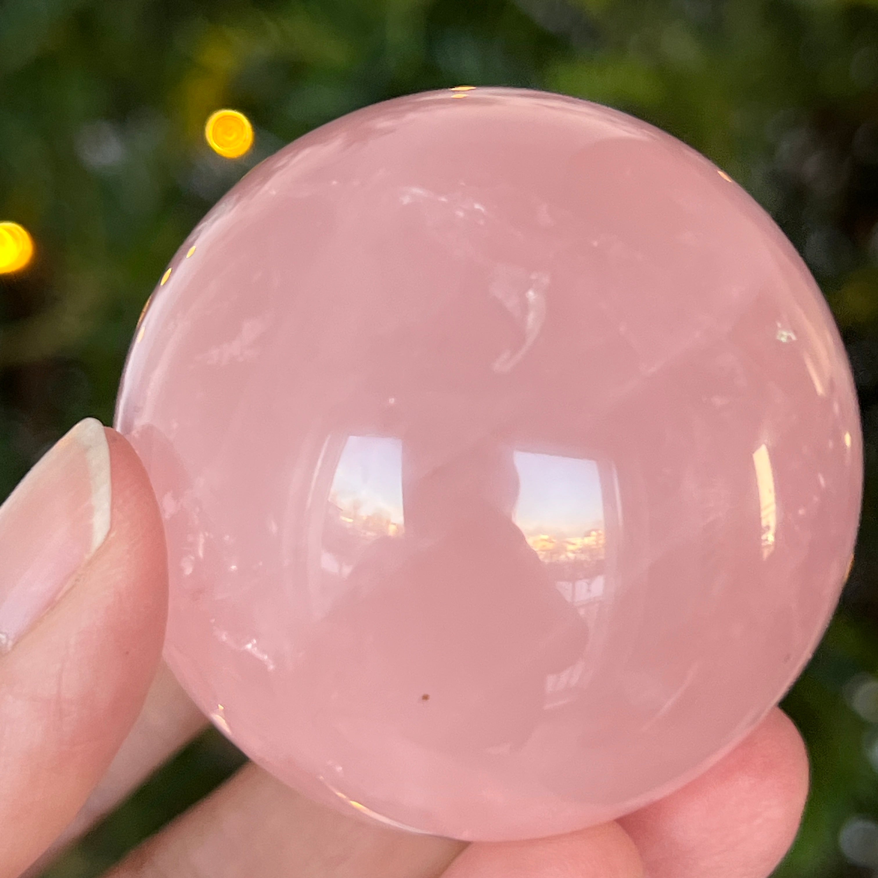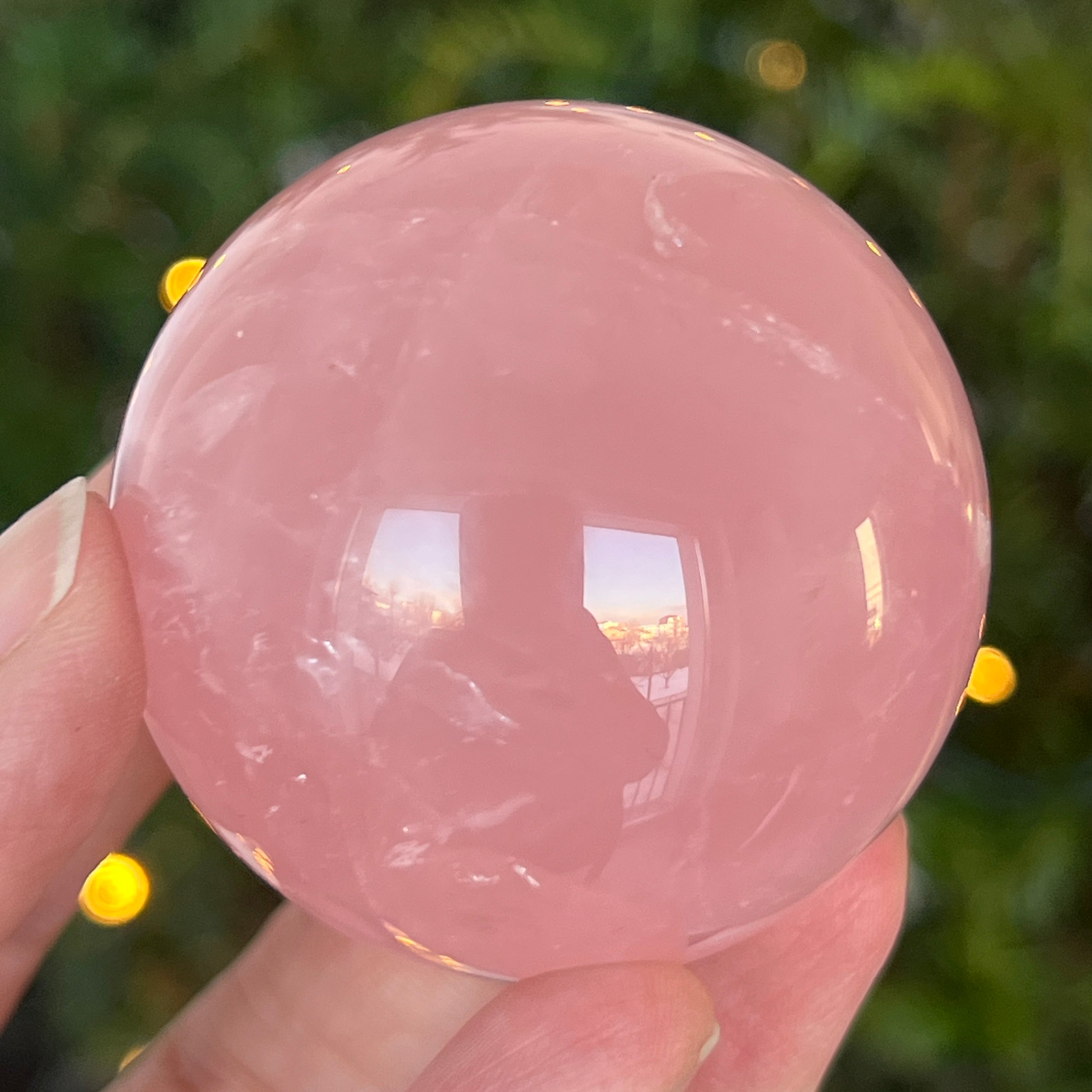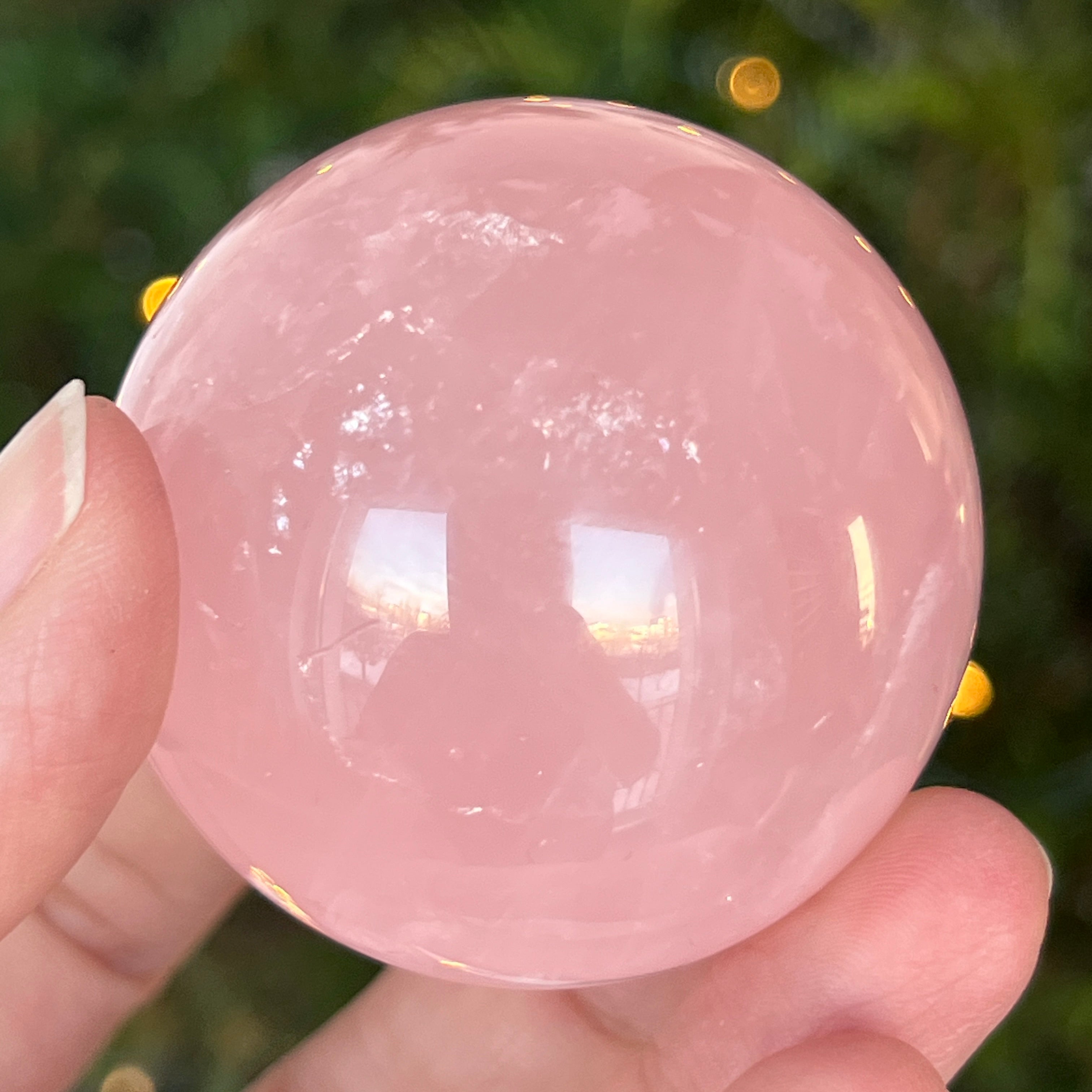• Stein: natürlicher Rosenquarz mit Asterismus – vollständig geschliffene Kugel