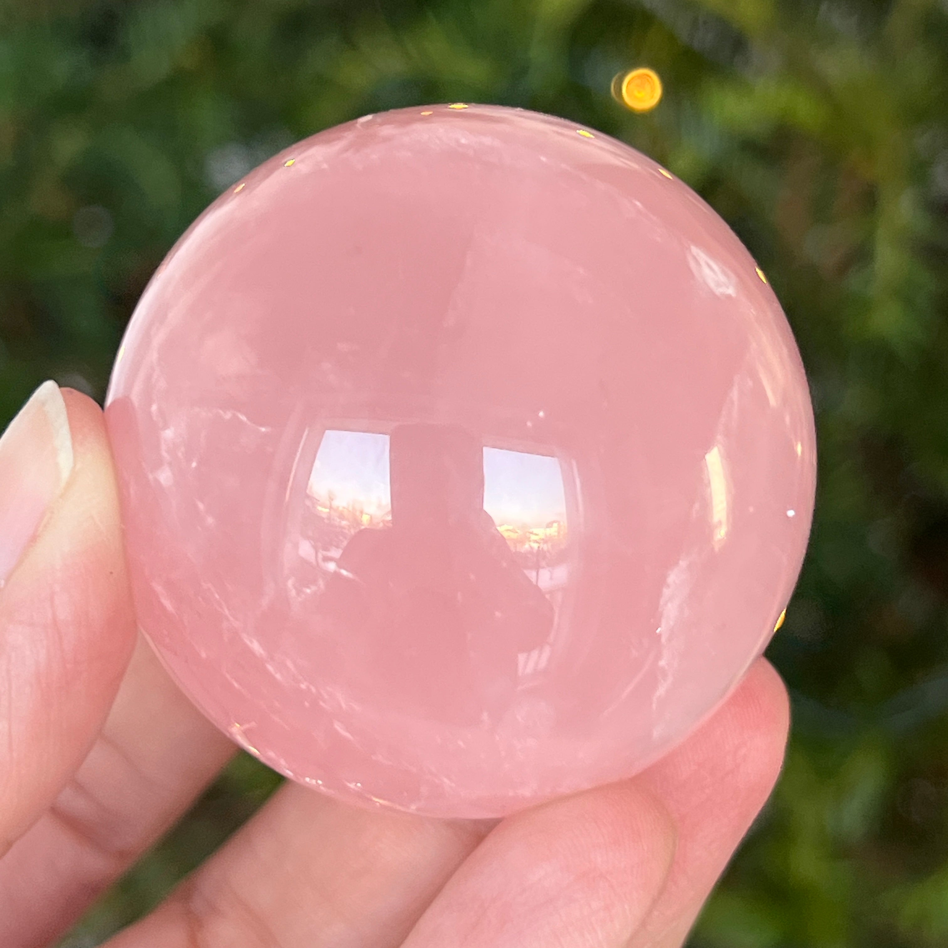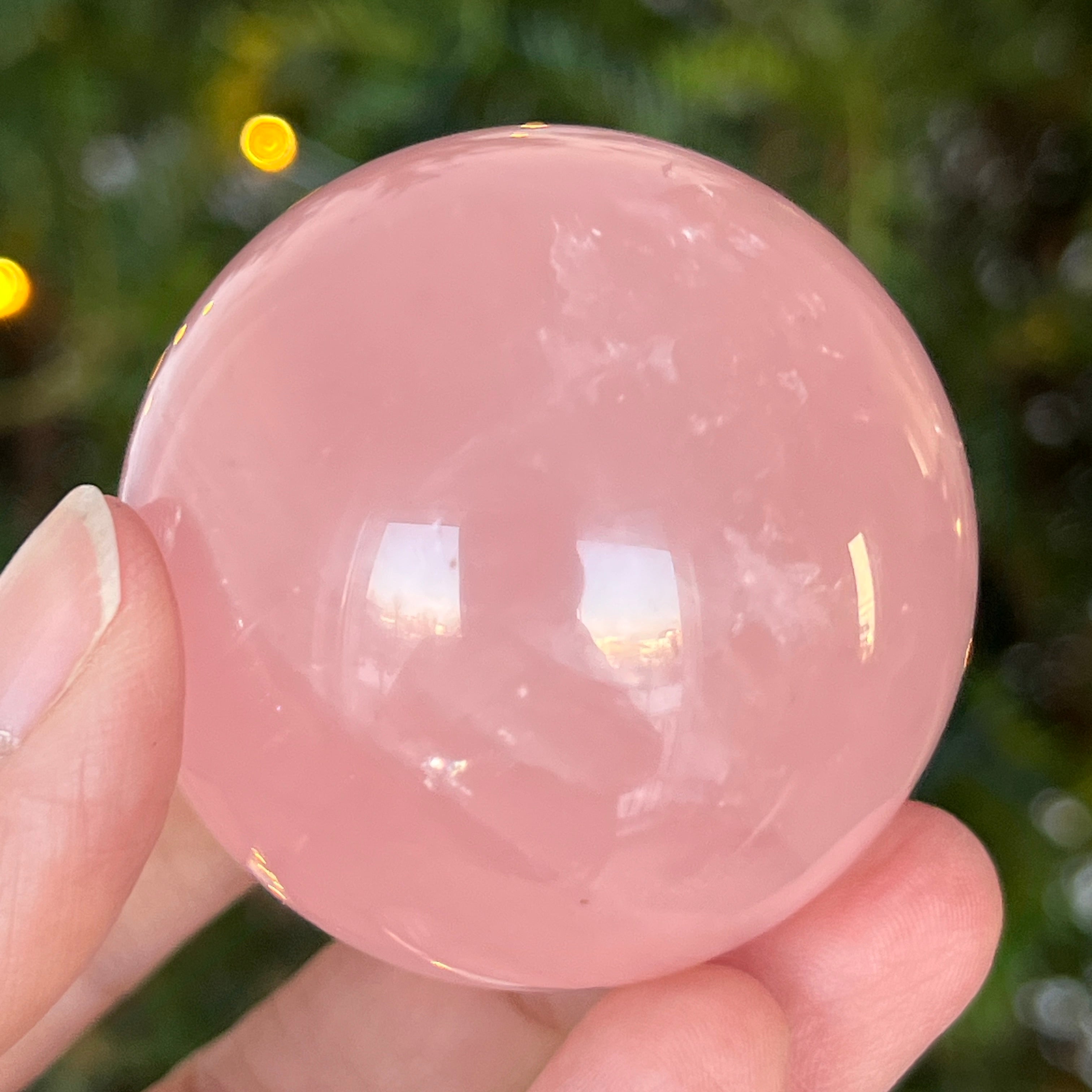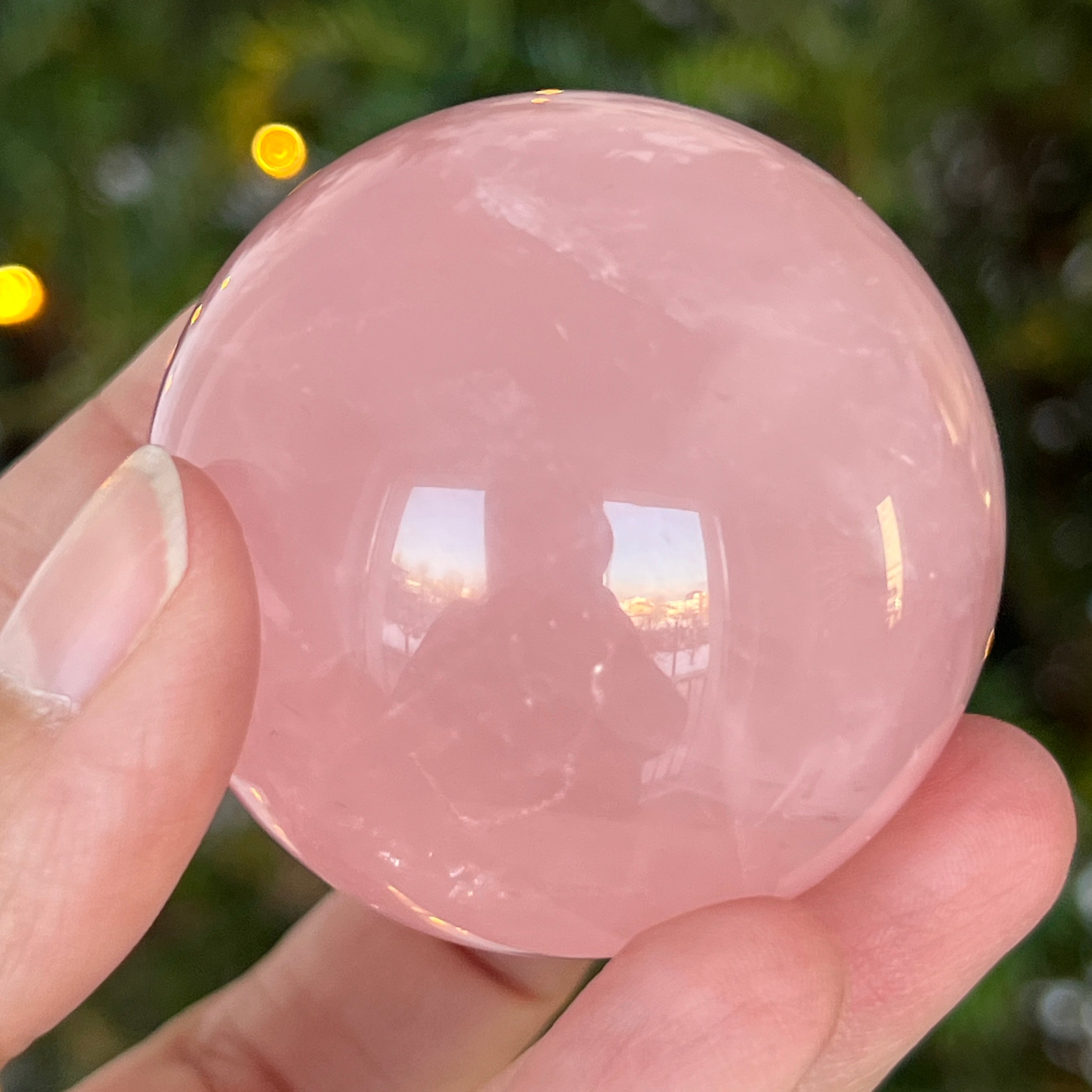 • Stein: natürlicher Rosenquarz mit Asterismus – vollständig geschliffene Kugel