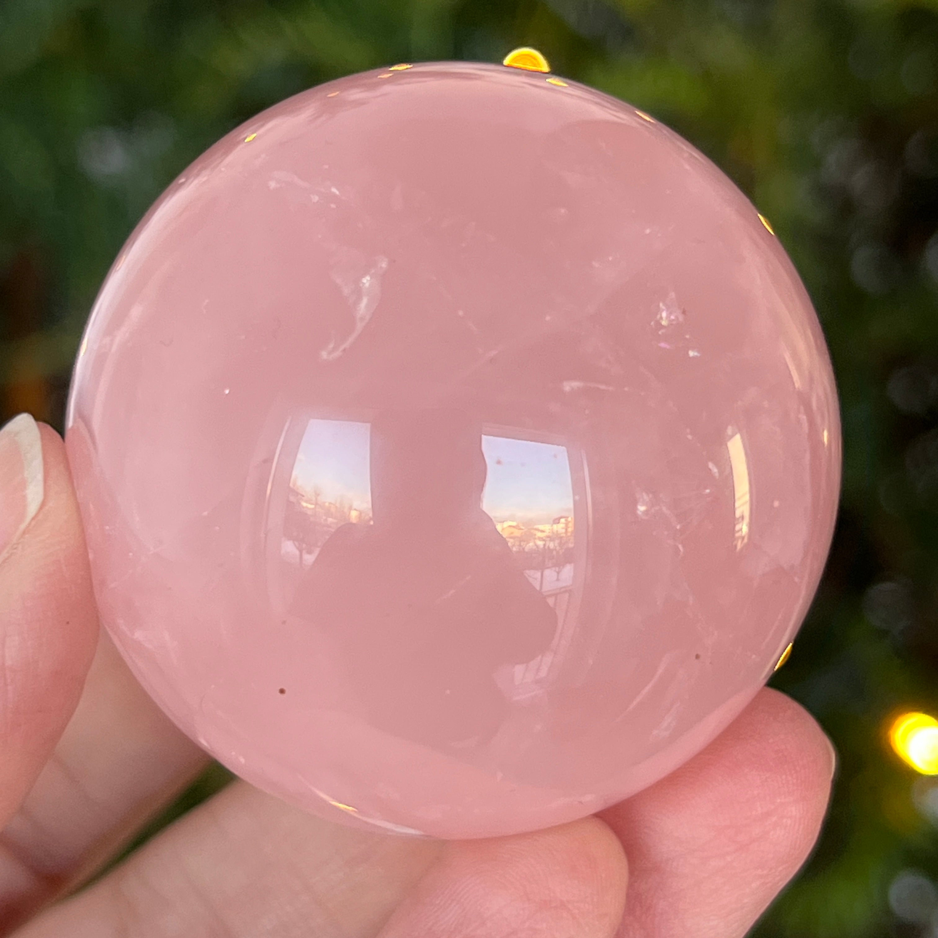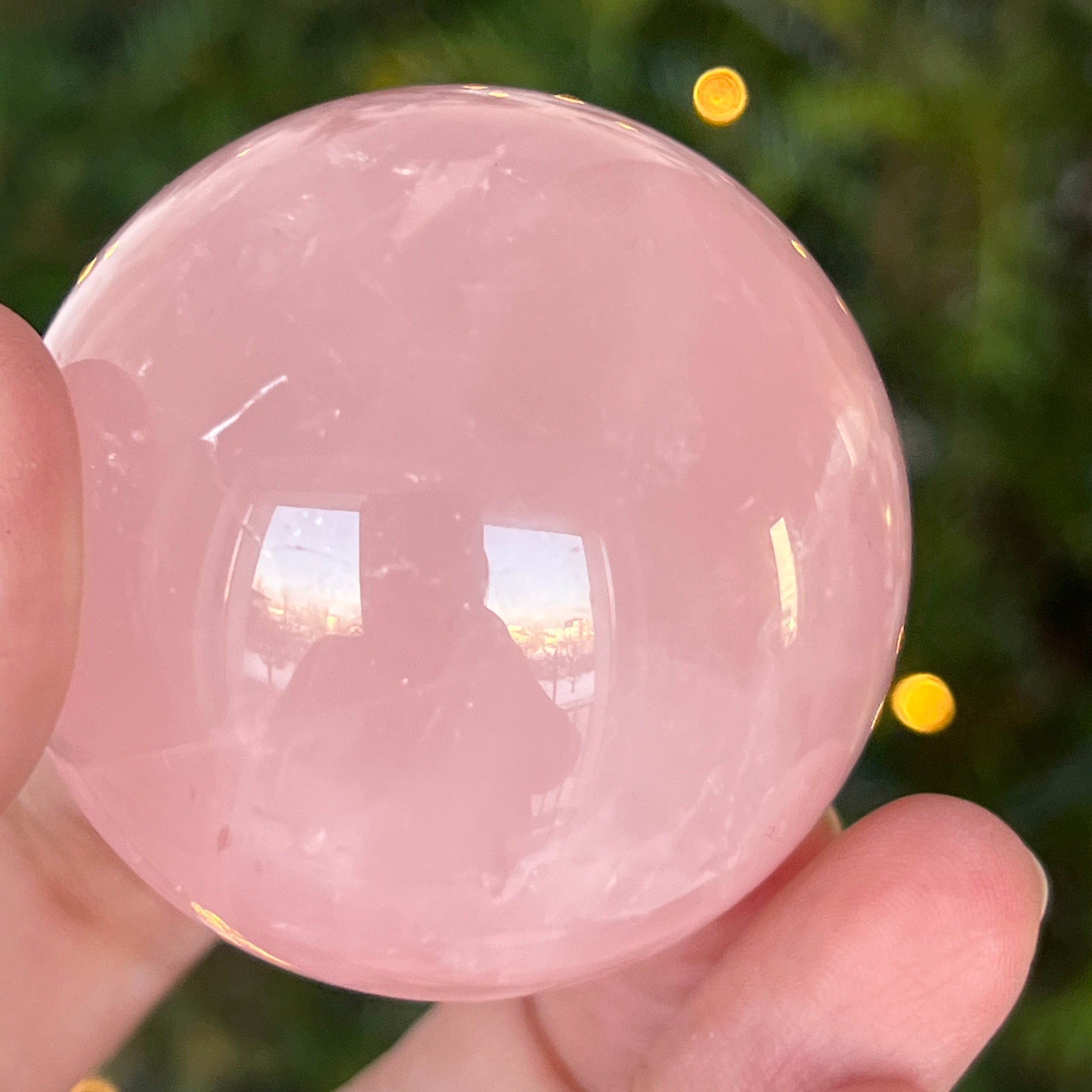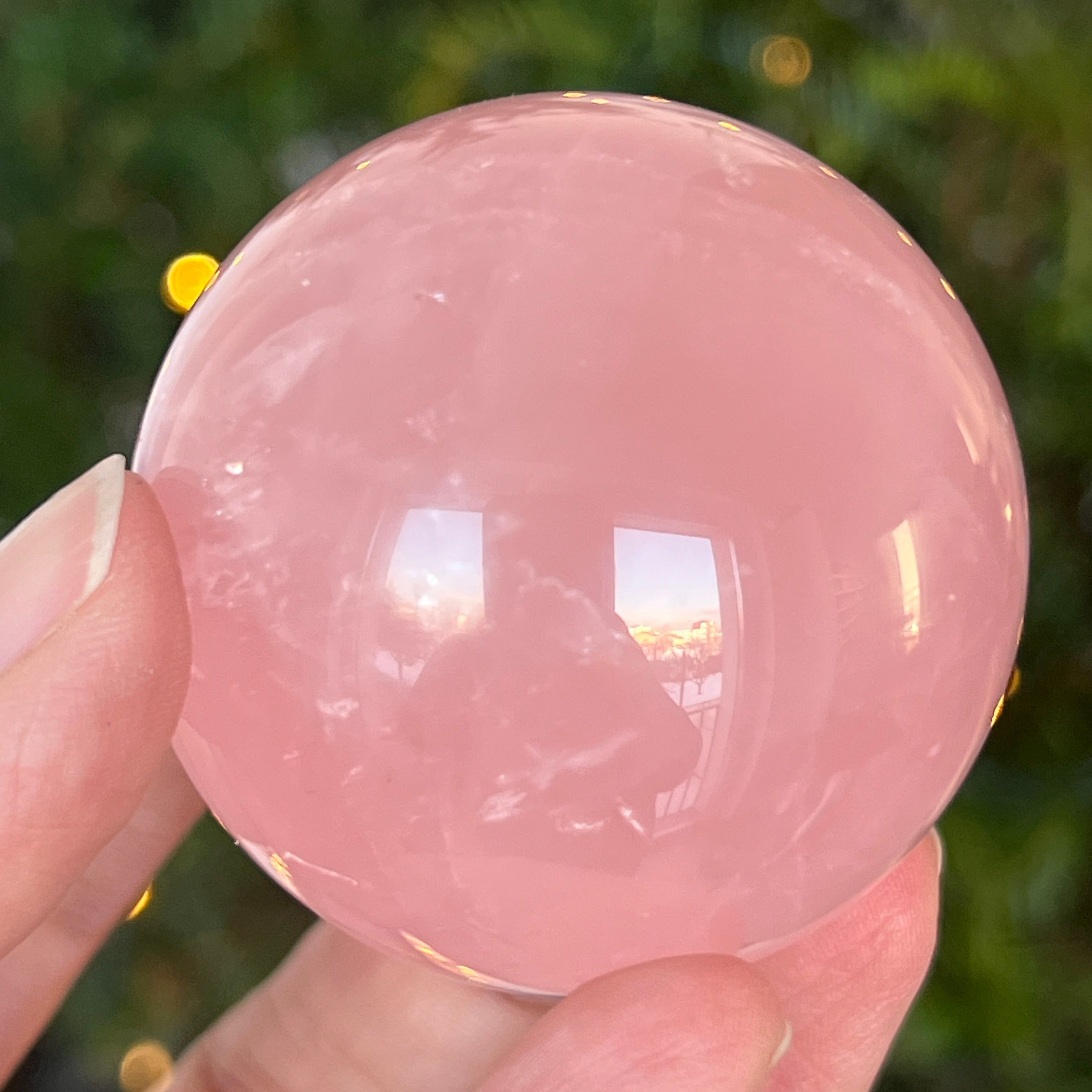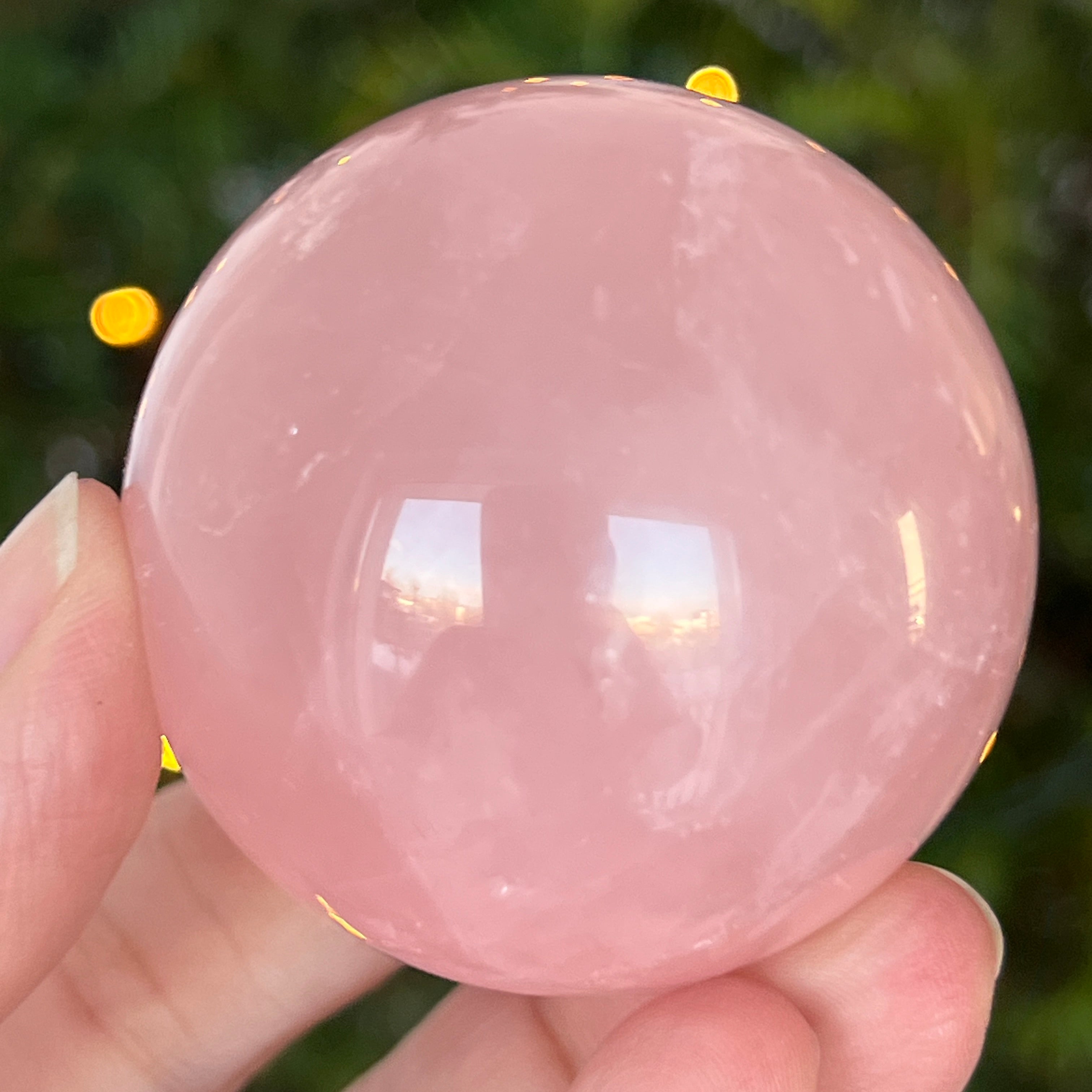 • Stein: natürlicher Rosenquarz mit Asterismus – vollständig geschliffene Kugel