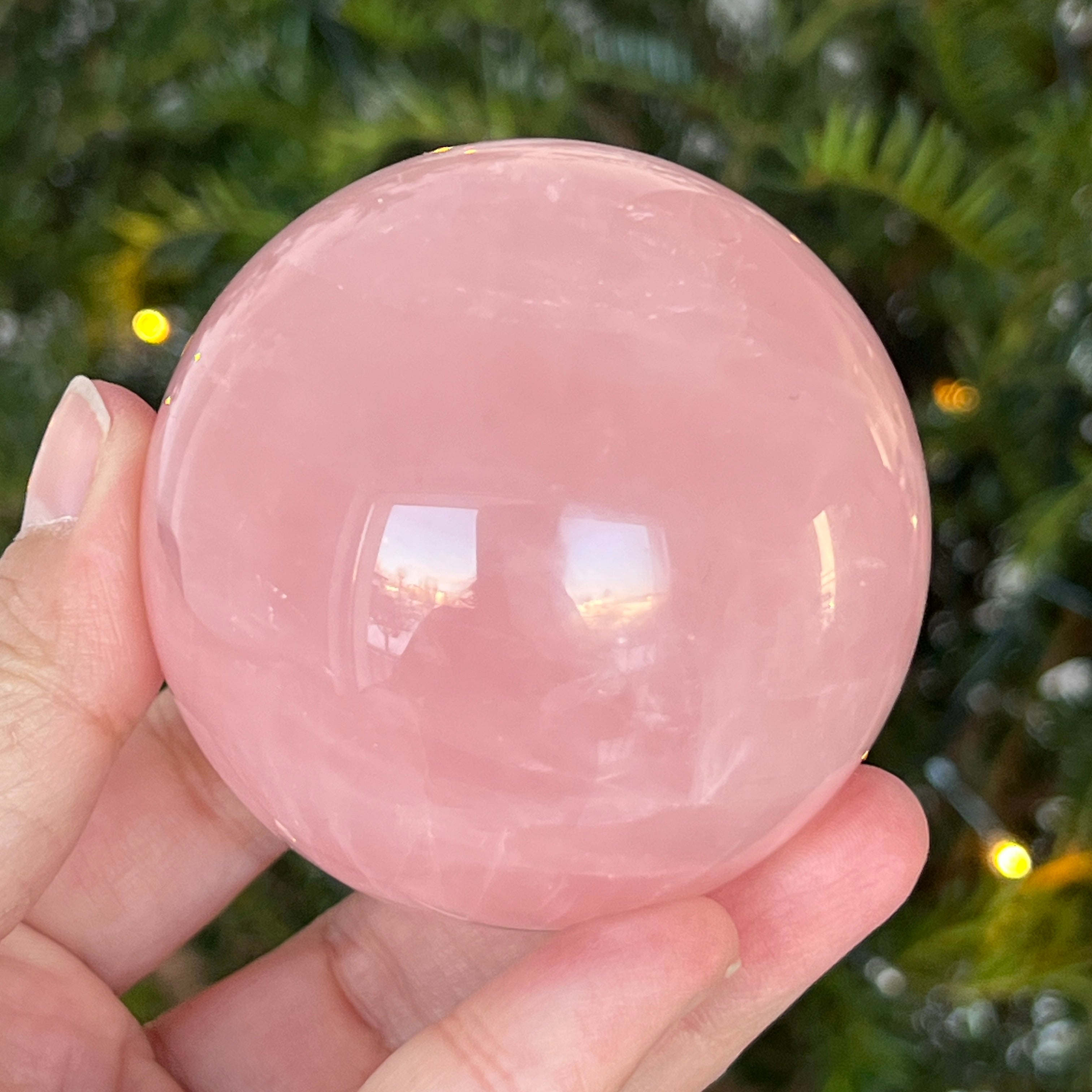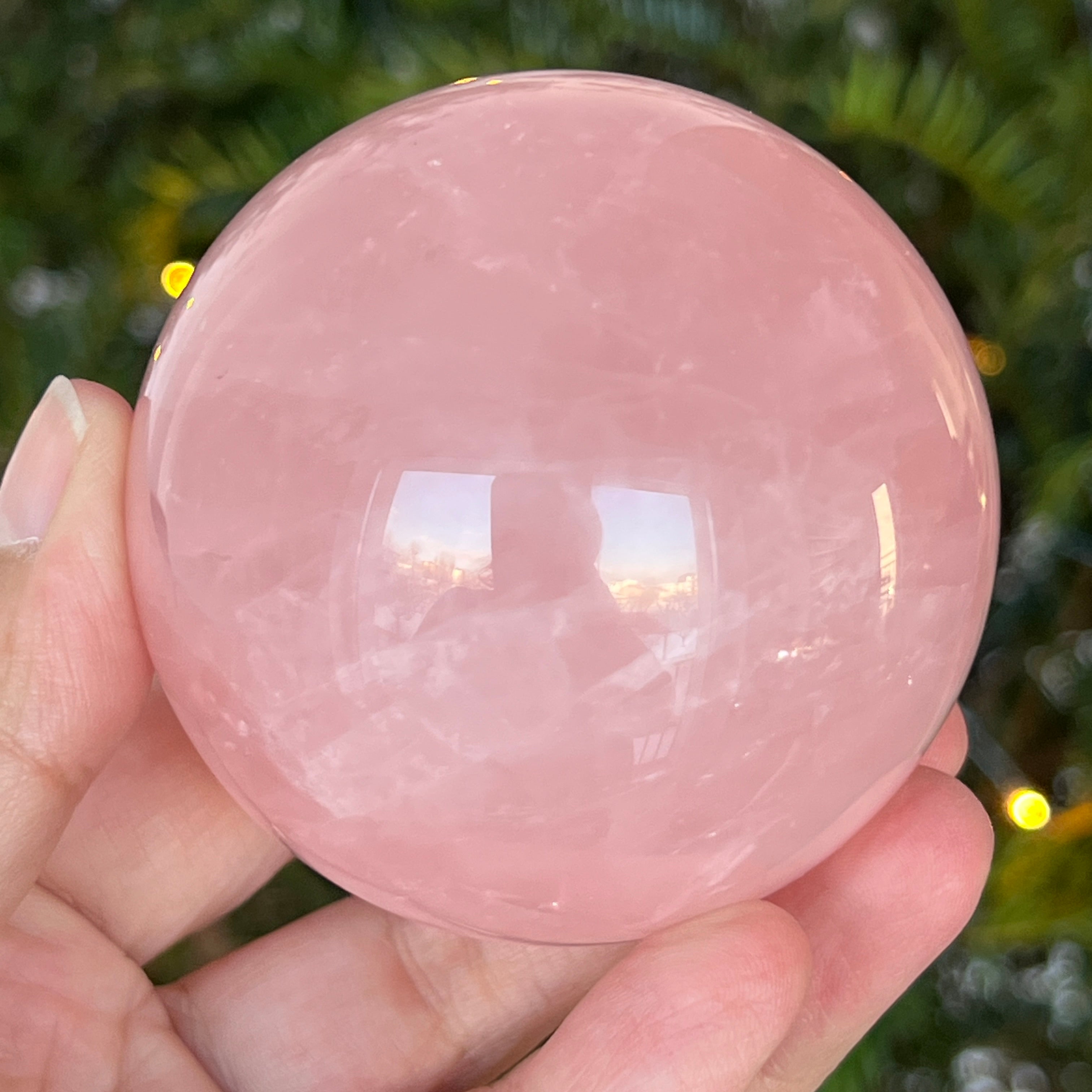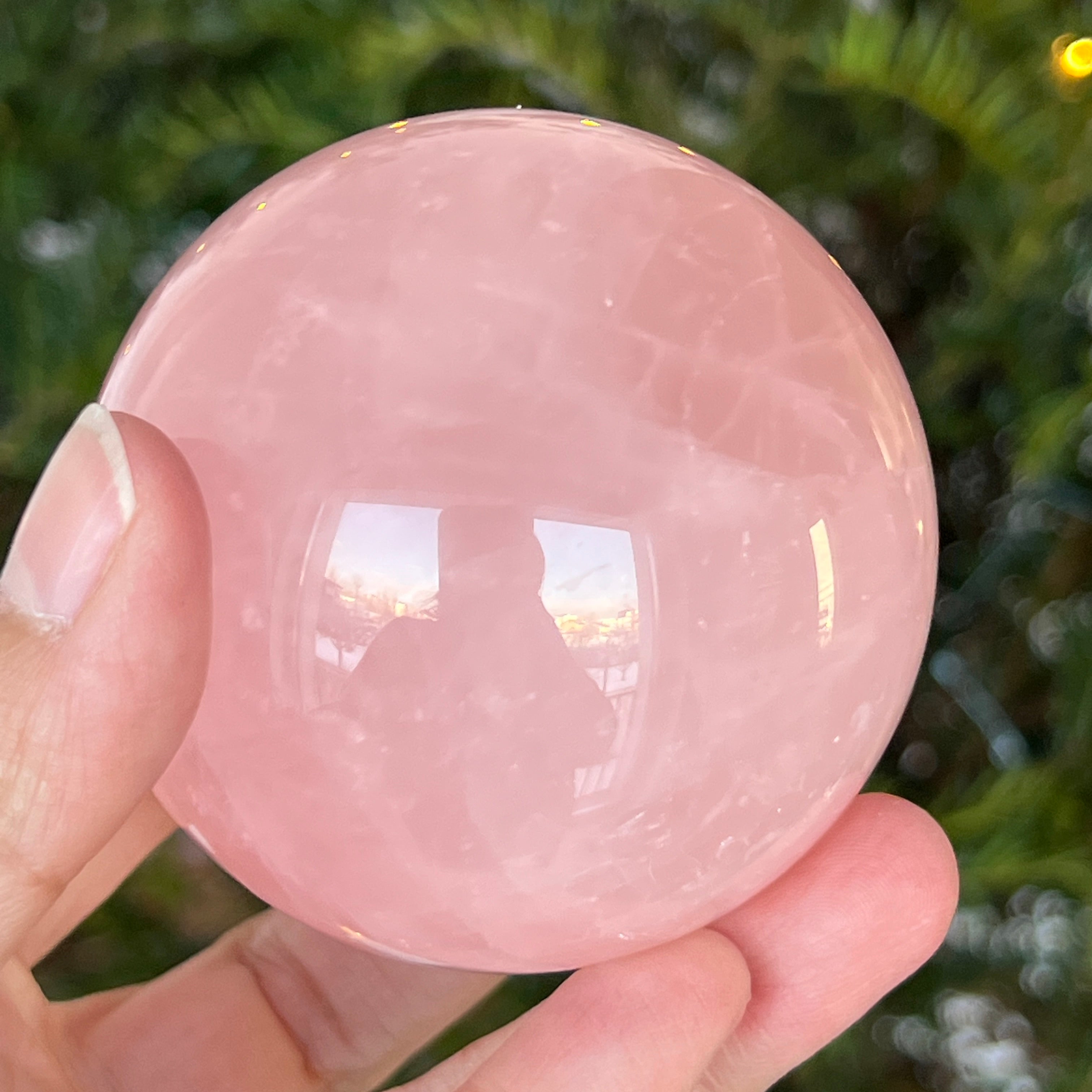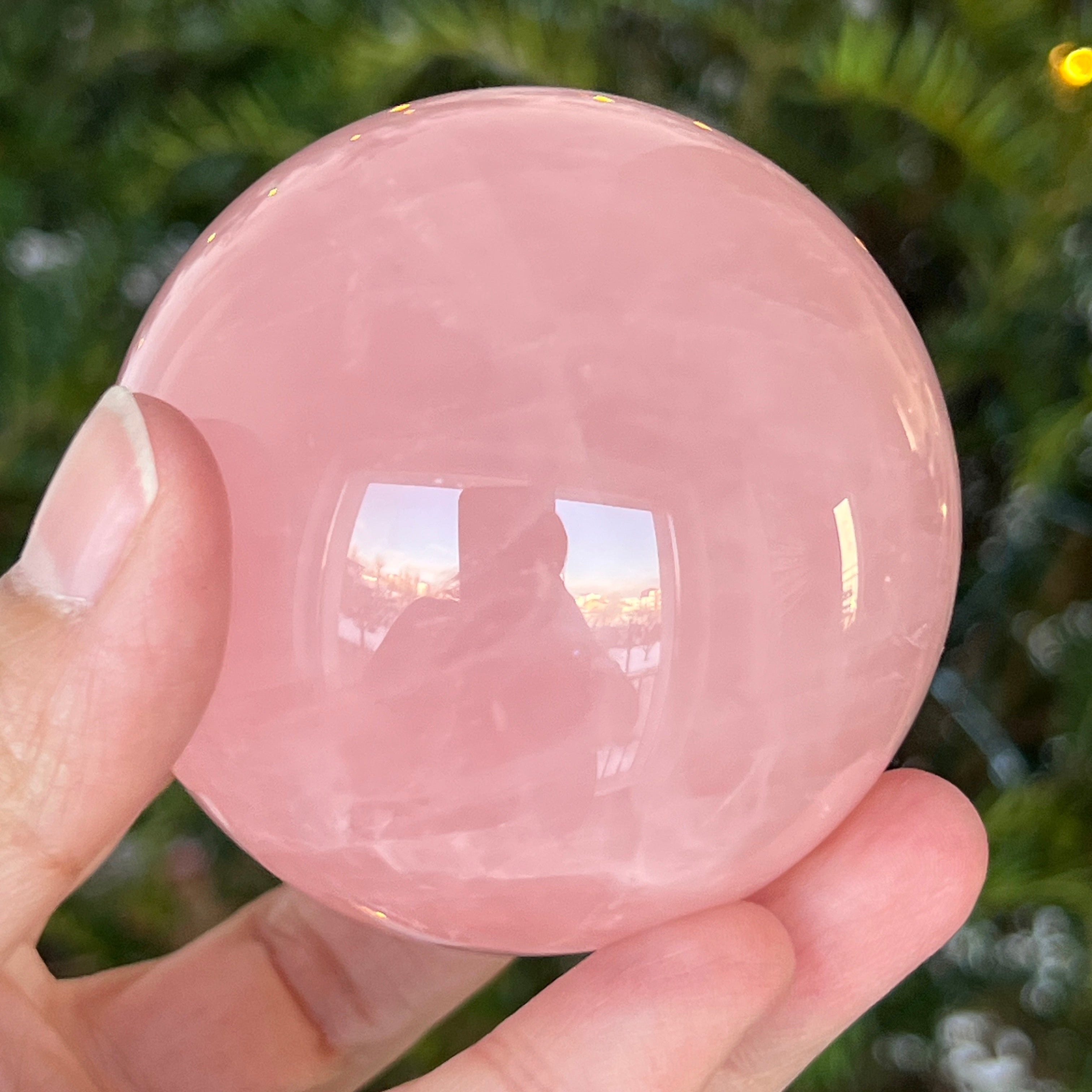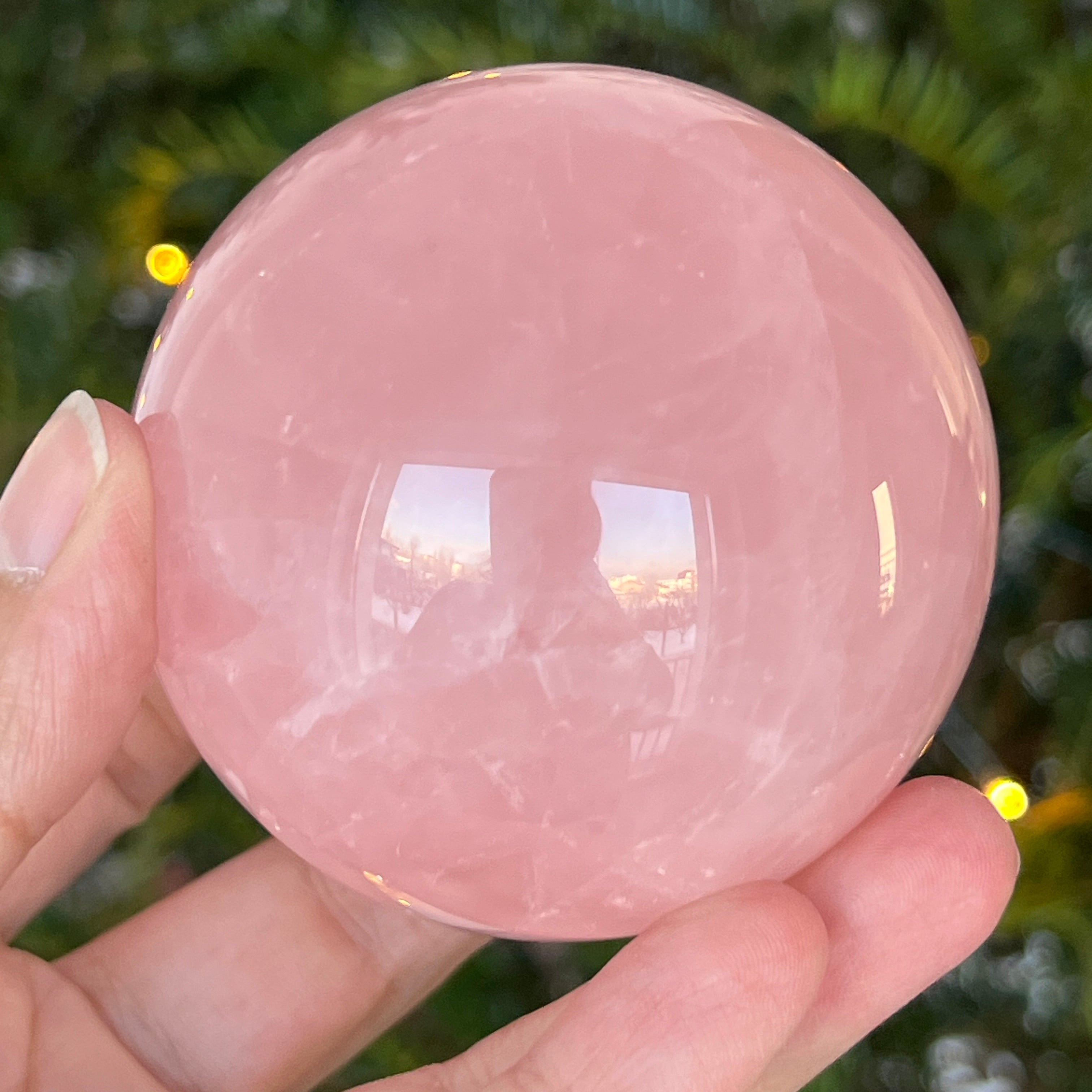 • Stone: Natürlicher Rosenquarz mit Asterismus – Vollständig polierte Kugel