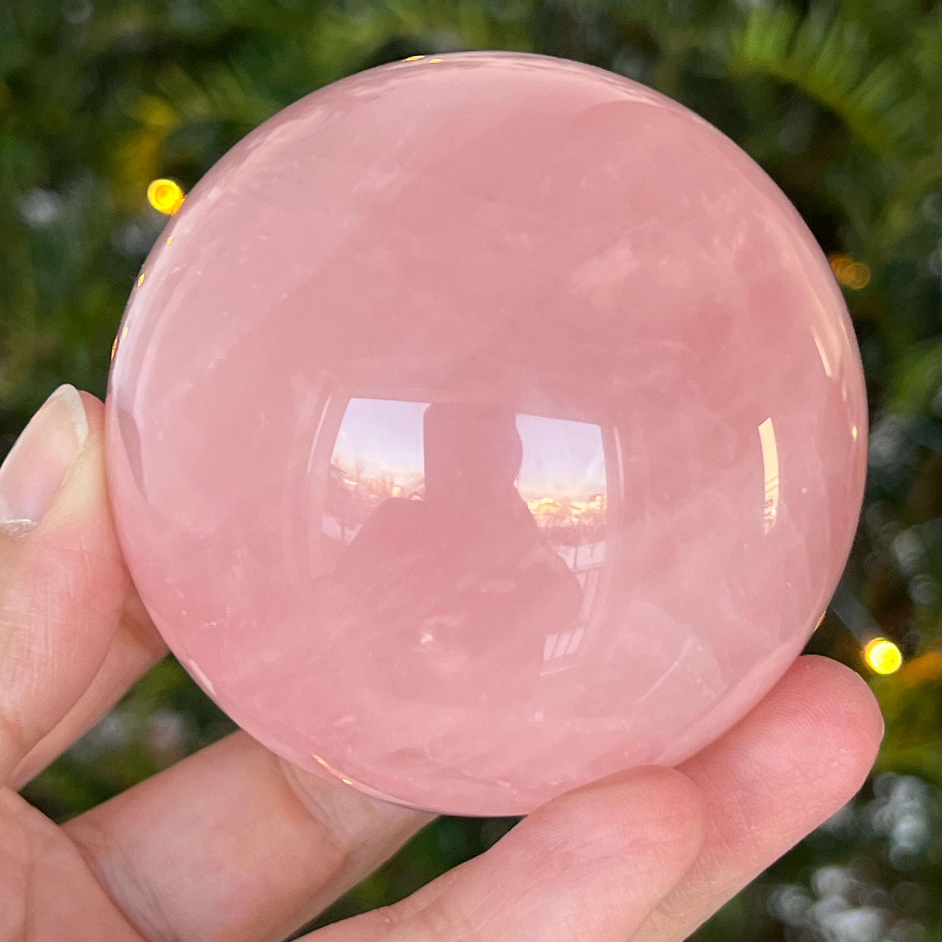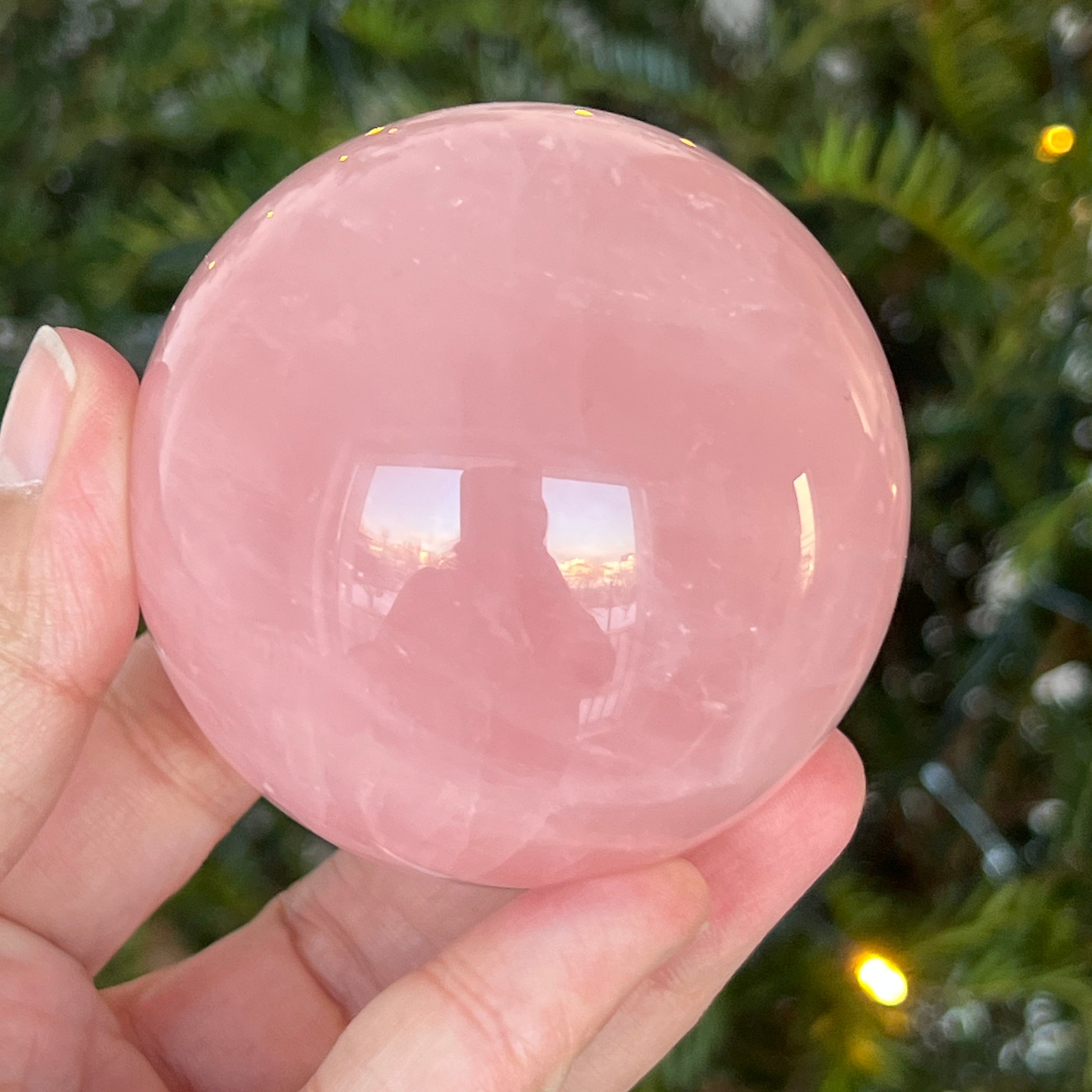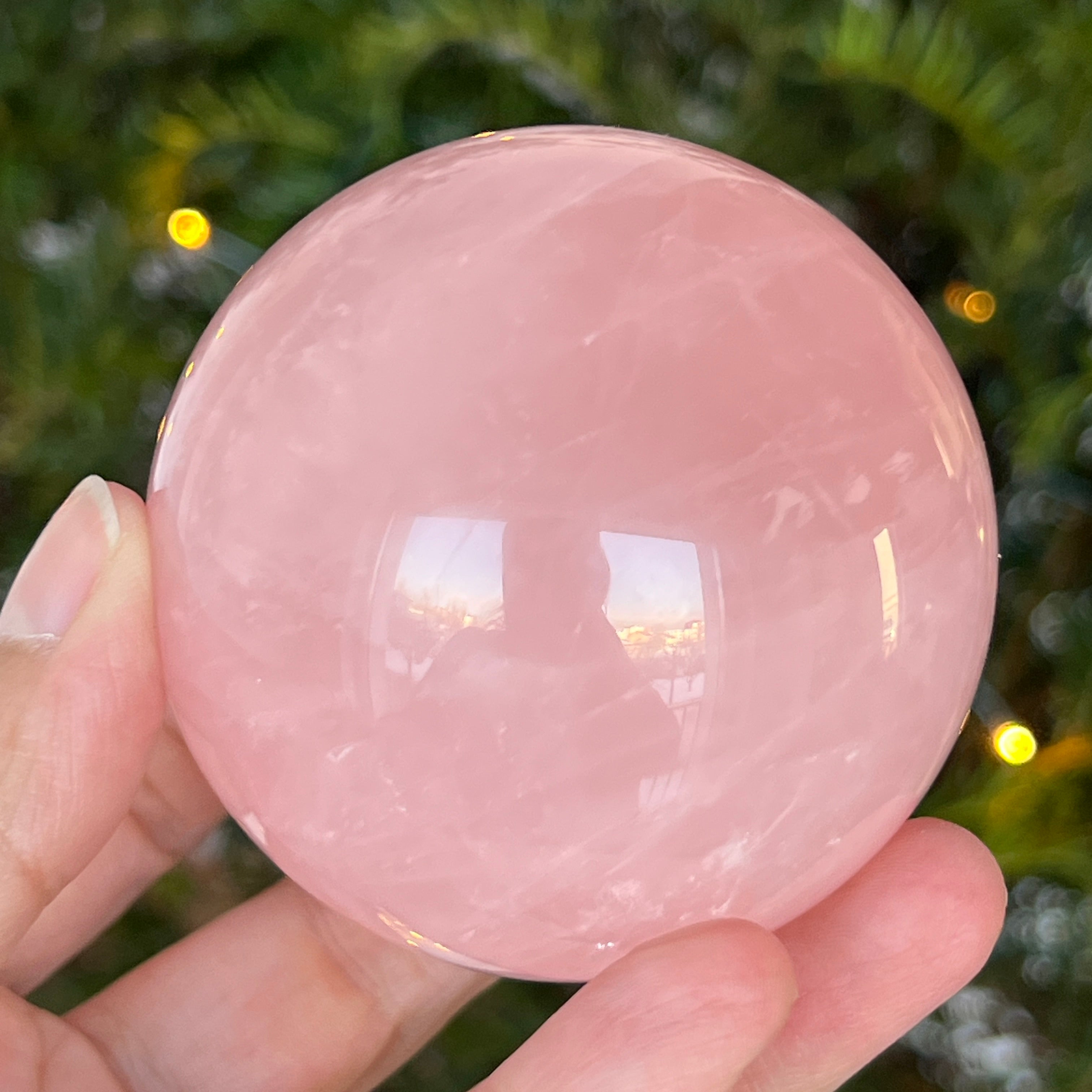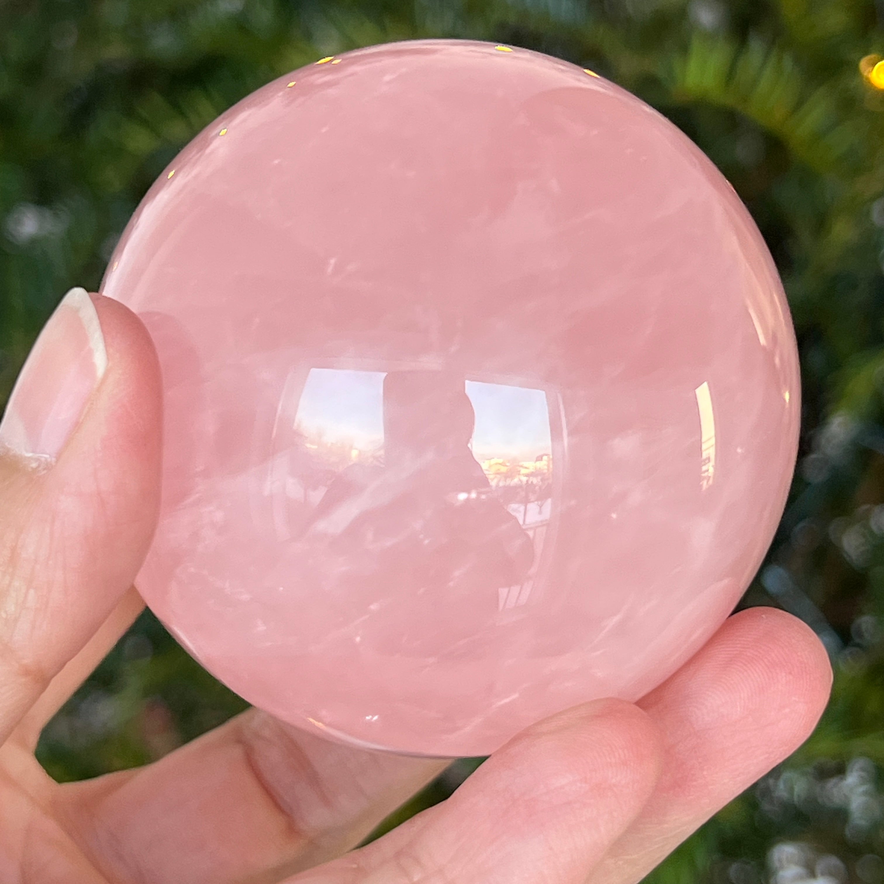• Stone: Natürlicher Rosenquarz mit Asterismus – Vollständig polierte Kugel