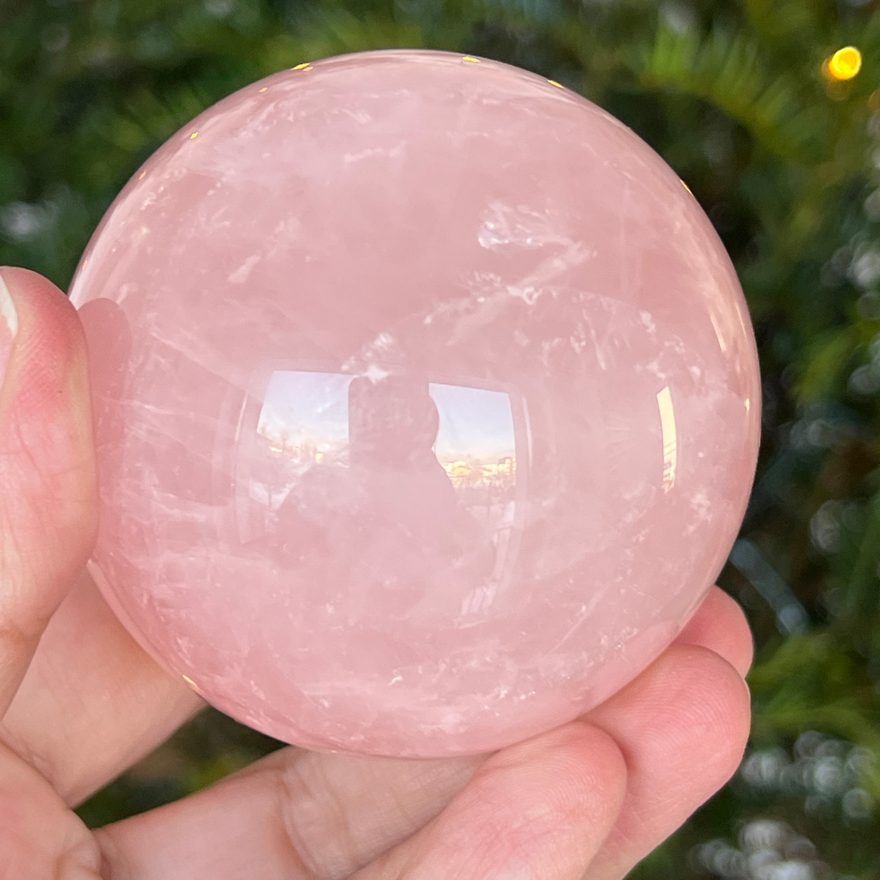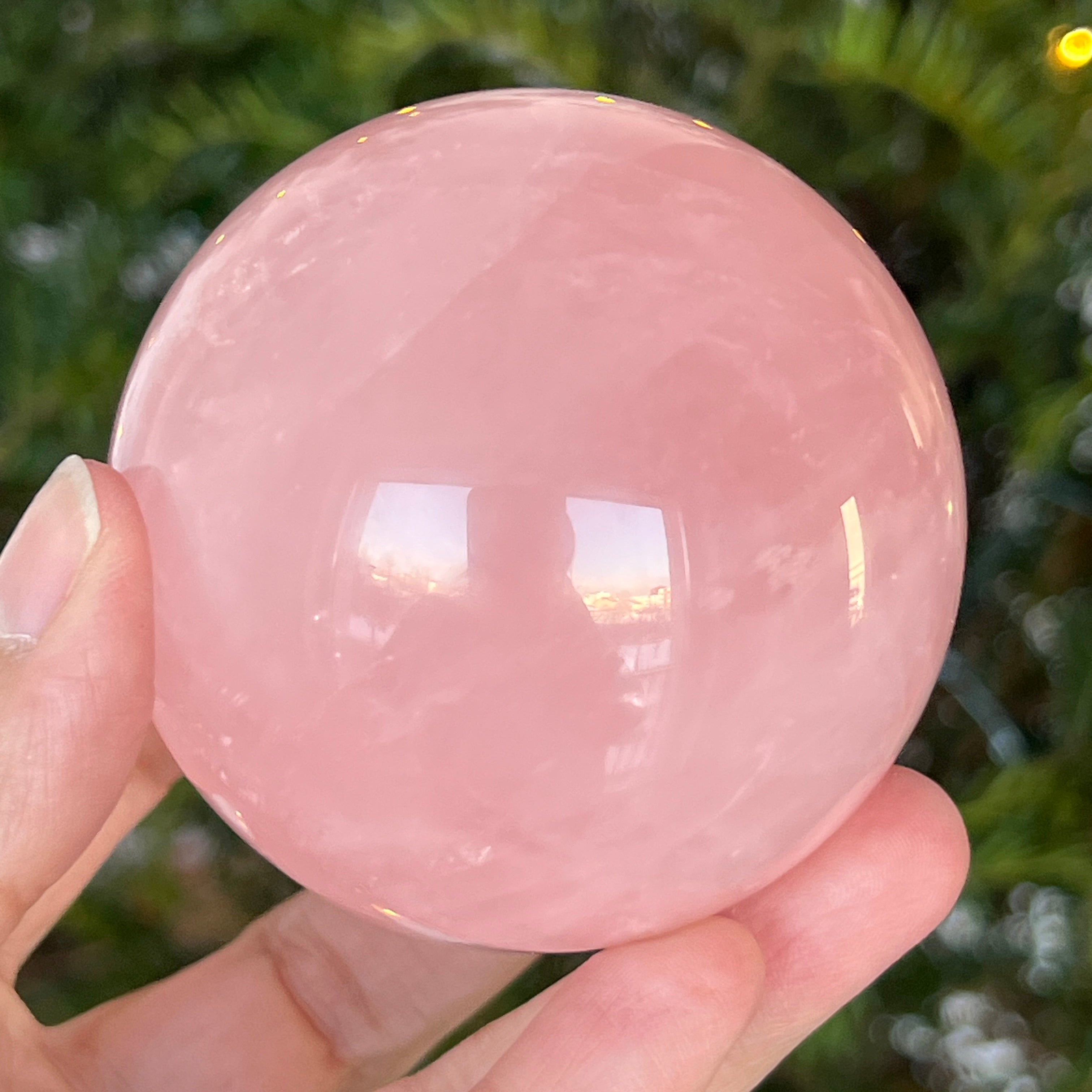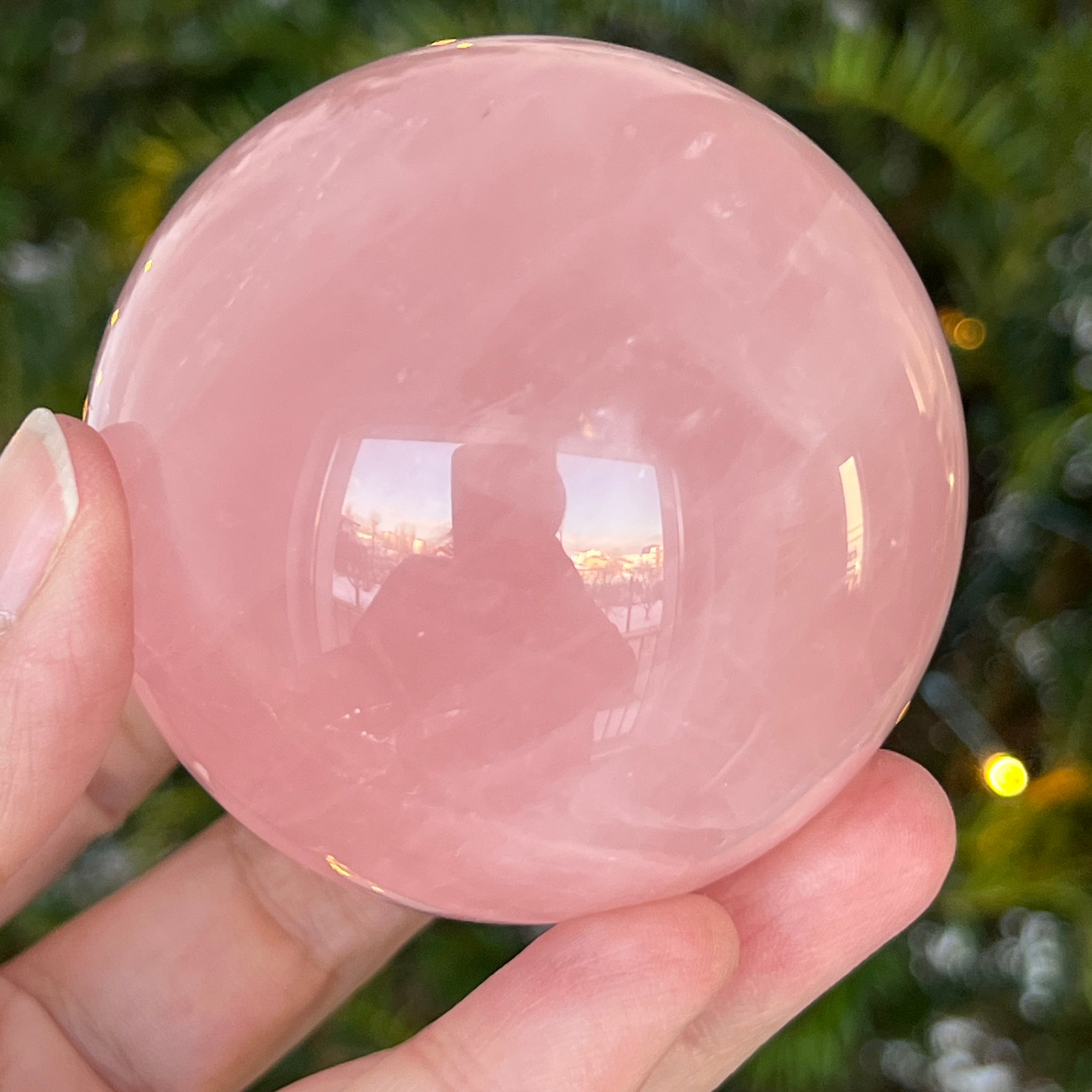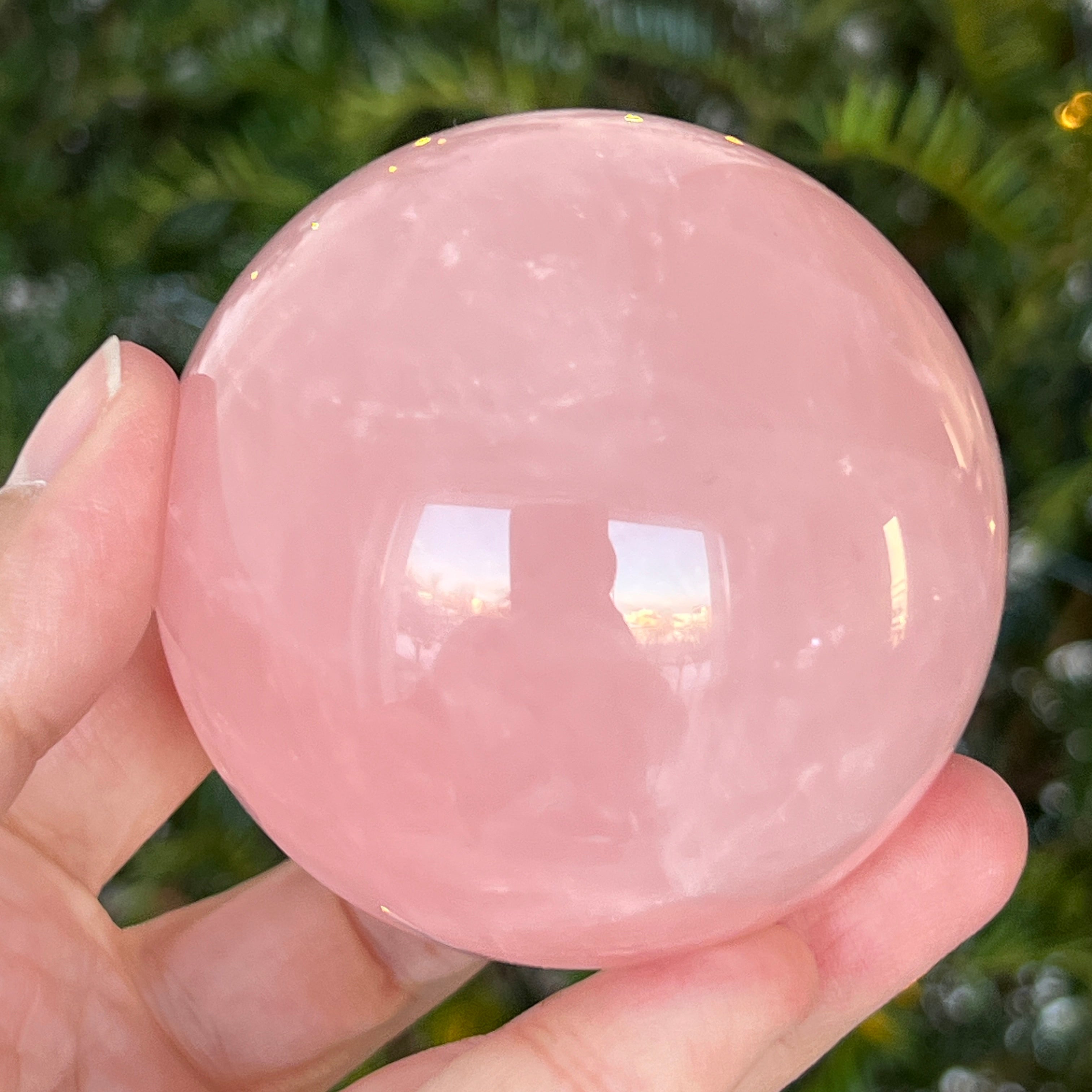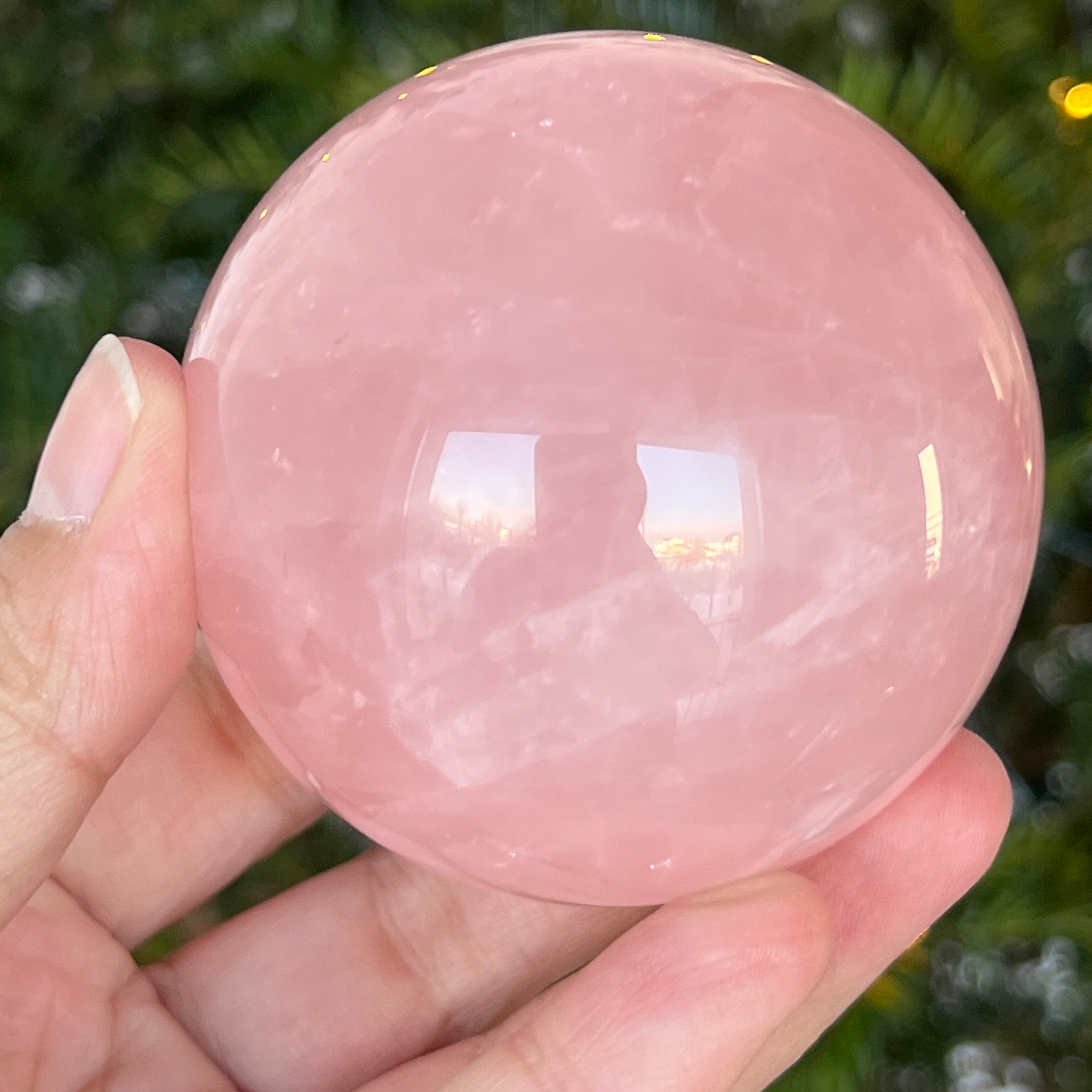 • Stone: Natürlicher Rosenquarz mit Asterismus – Vollständig polierte Kugel