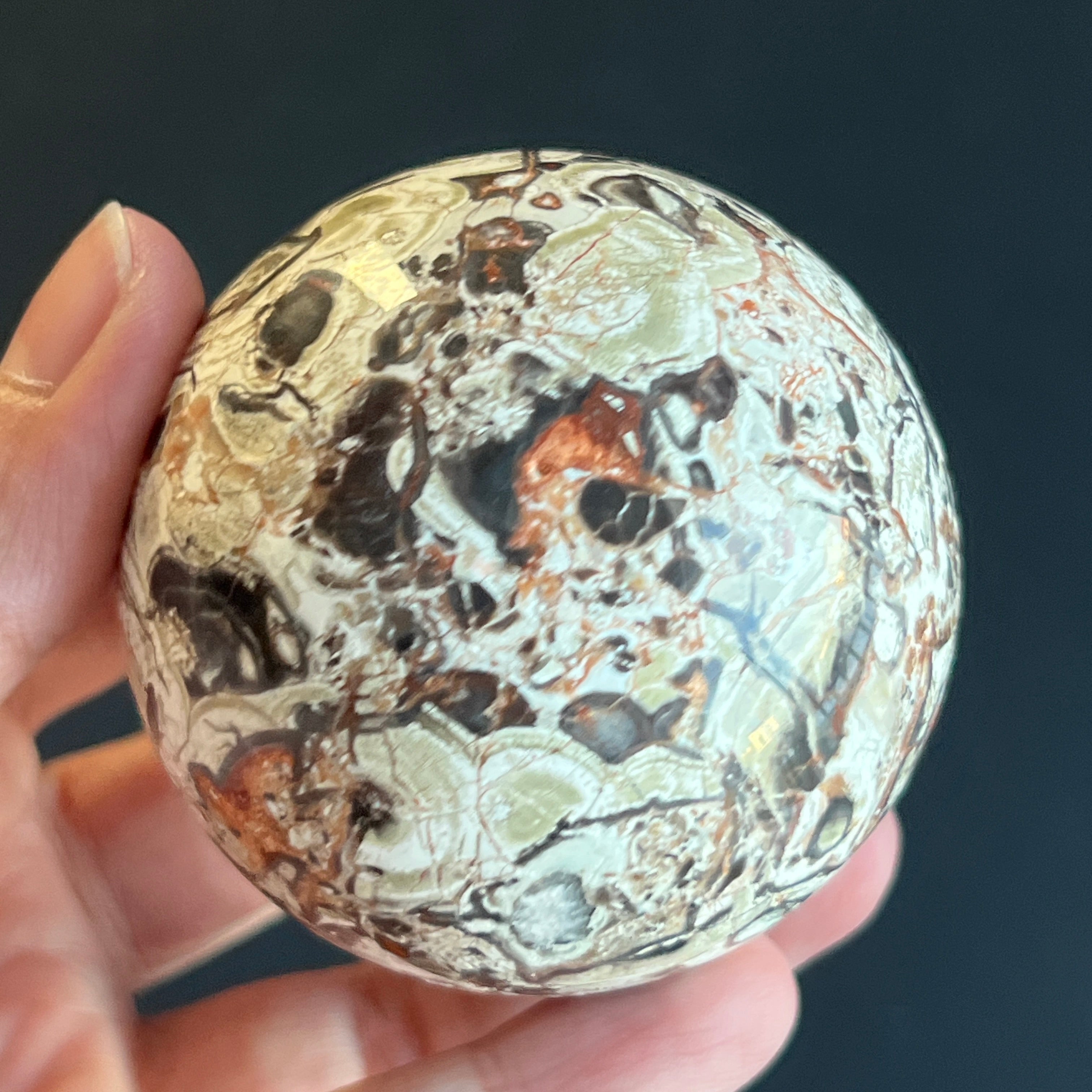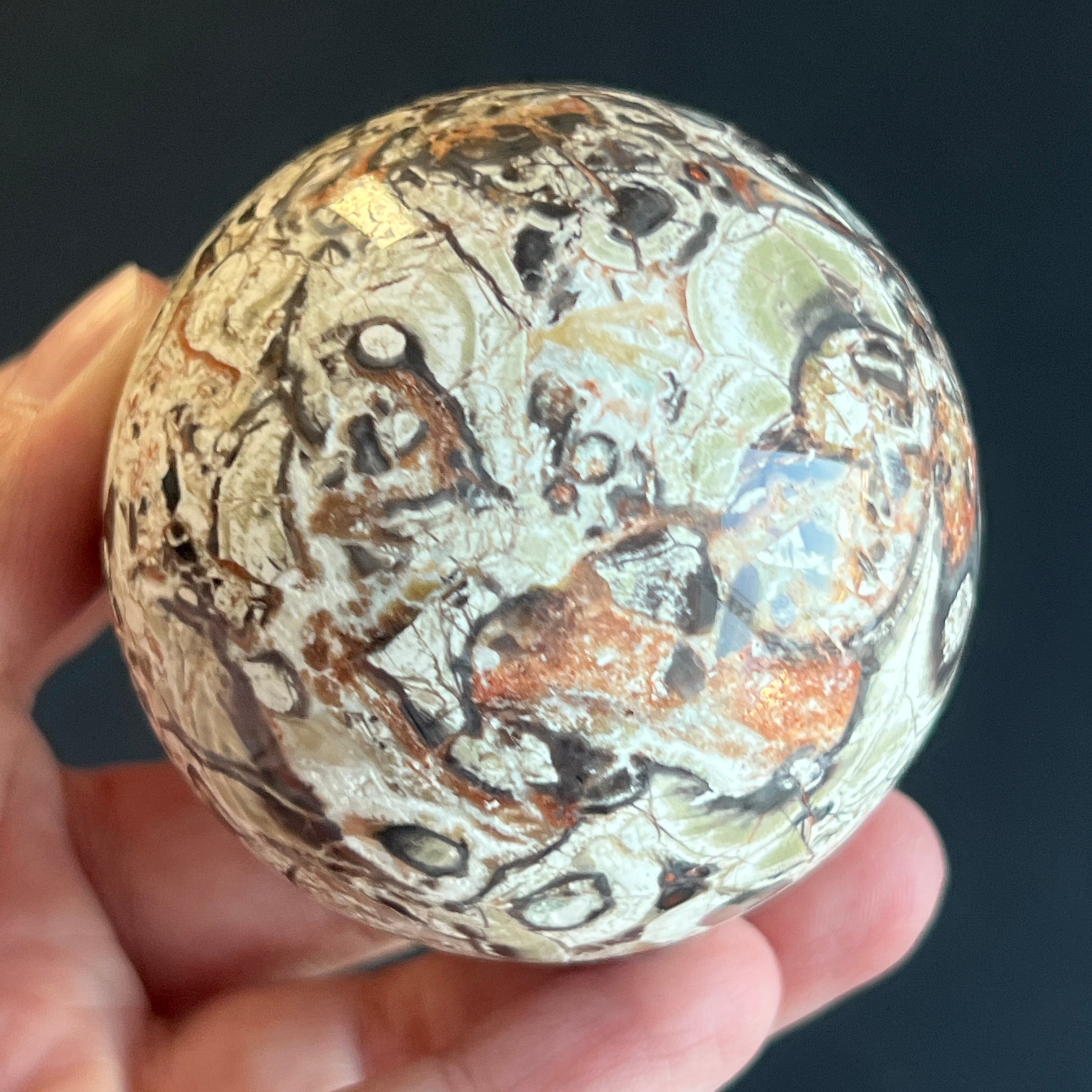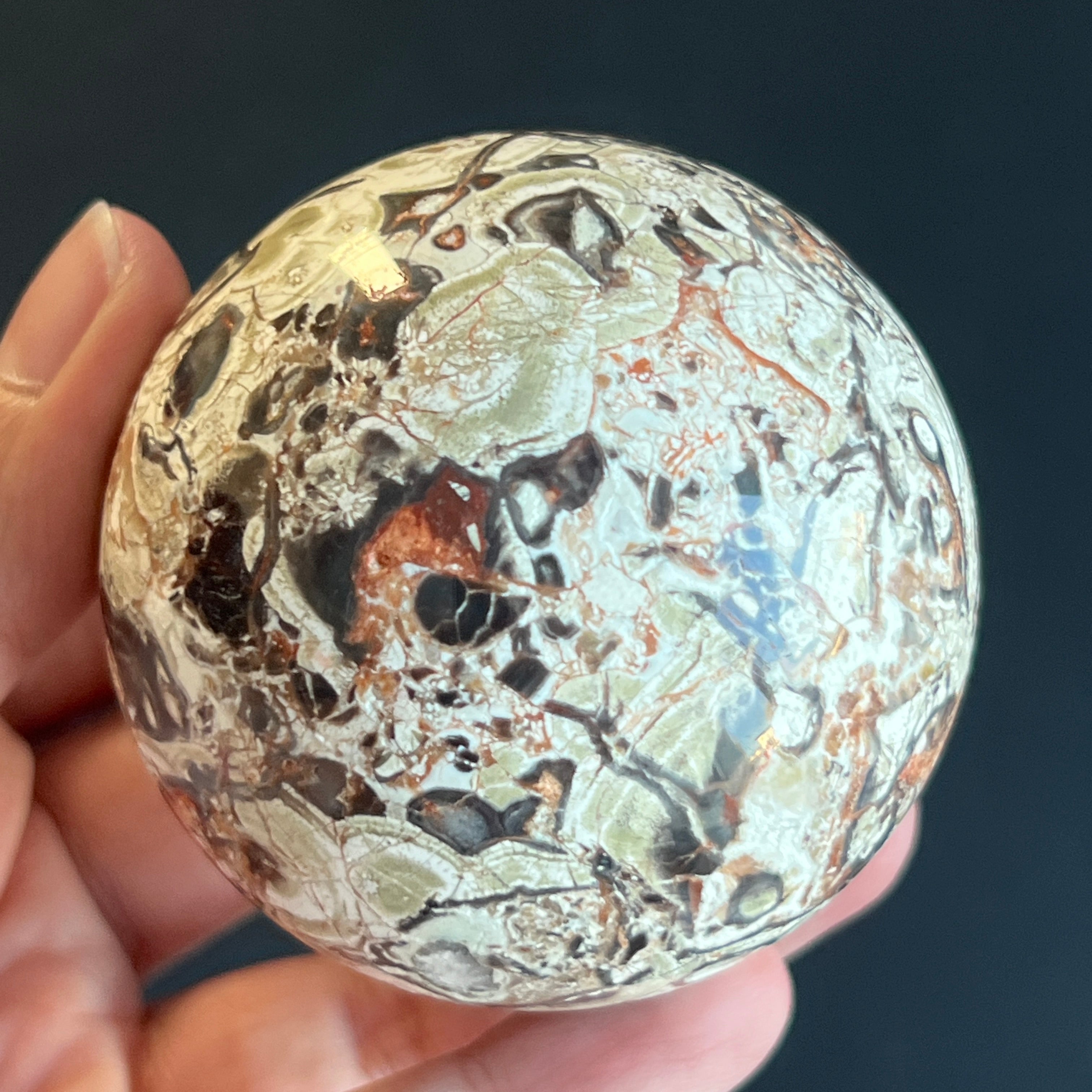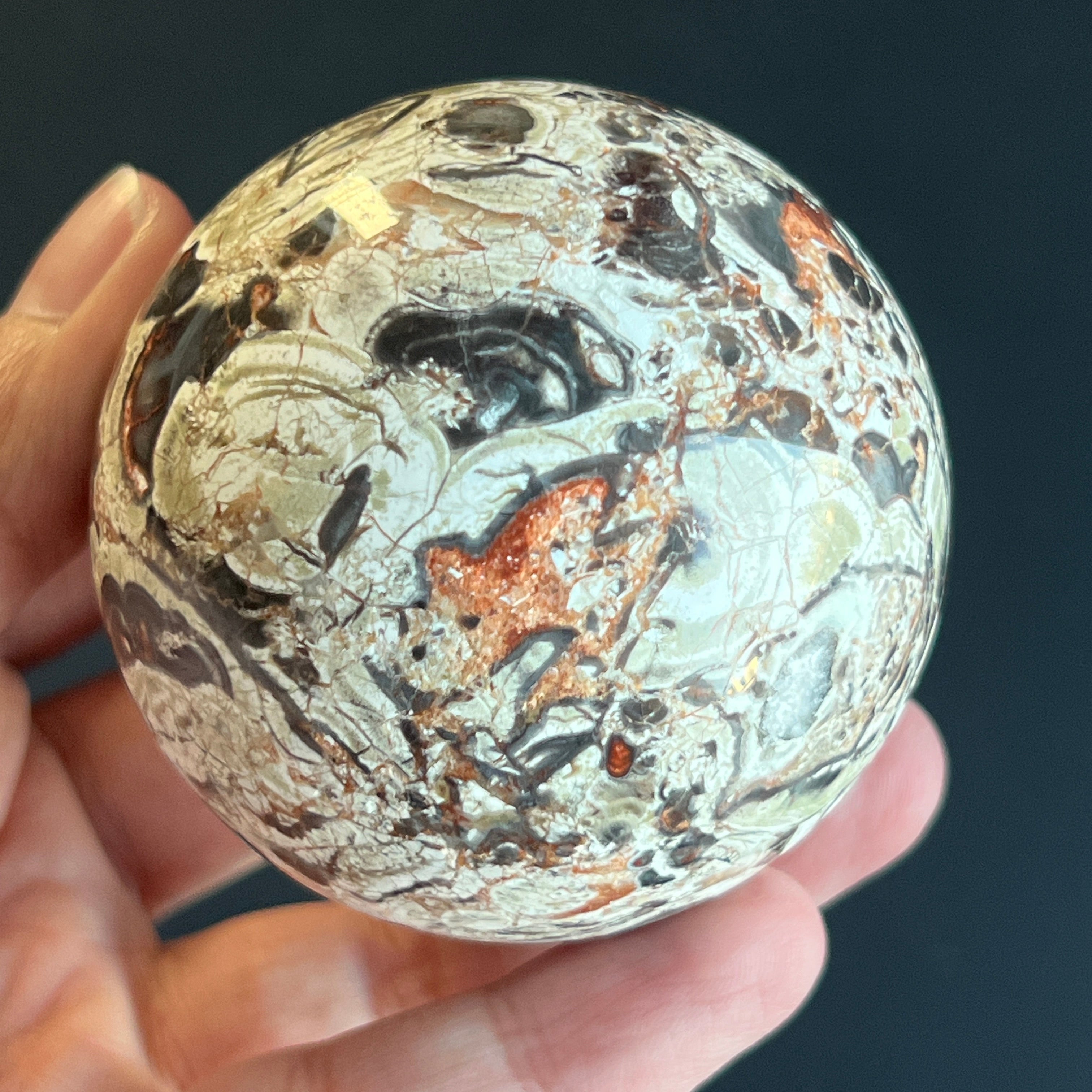 • Stein: Natürlicher roter Breccia Jaspis – vollständig geschliffene Kugel