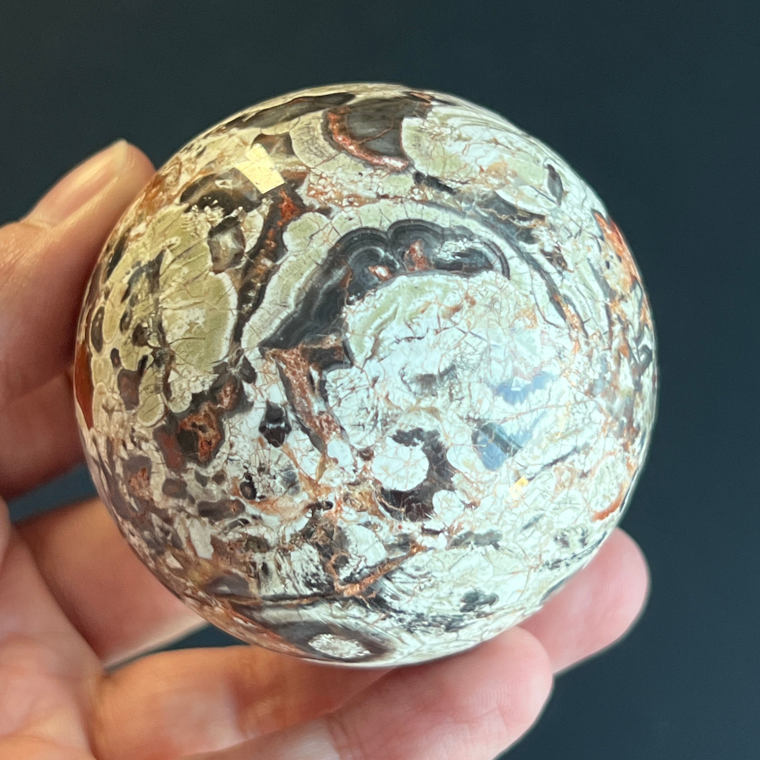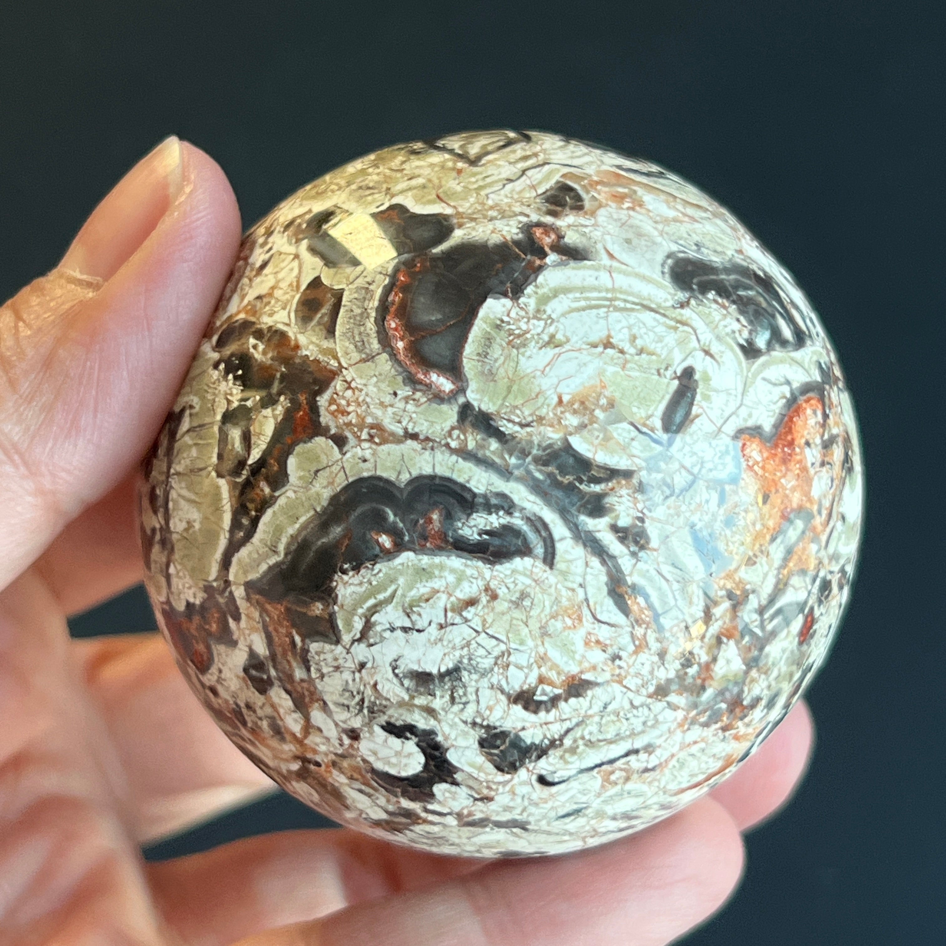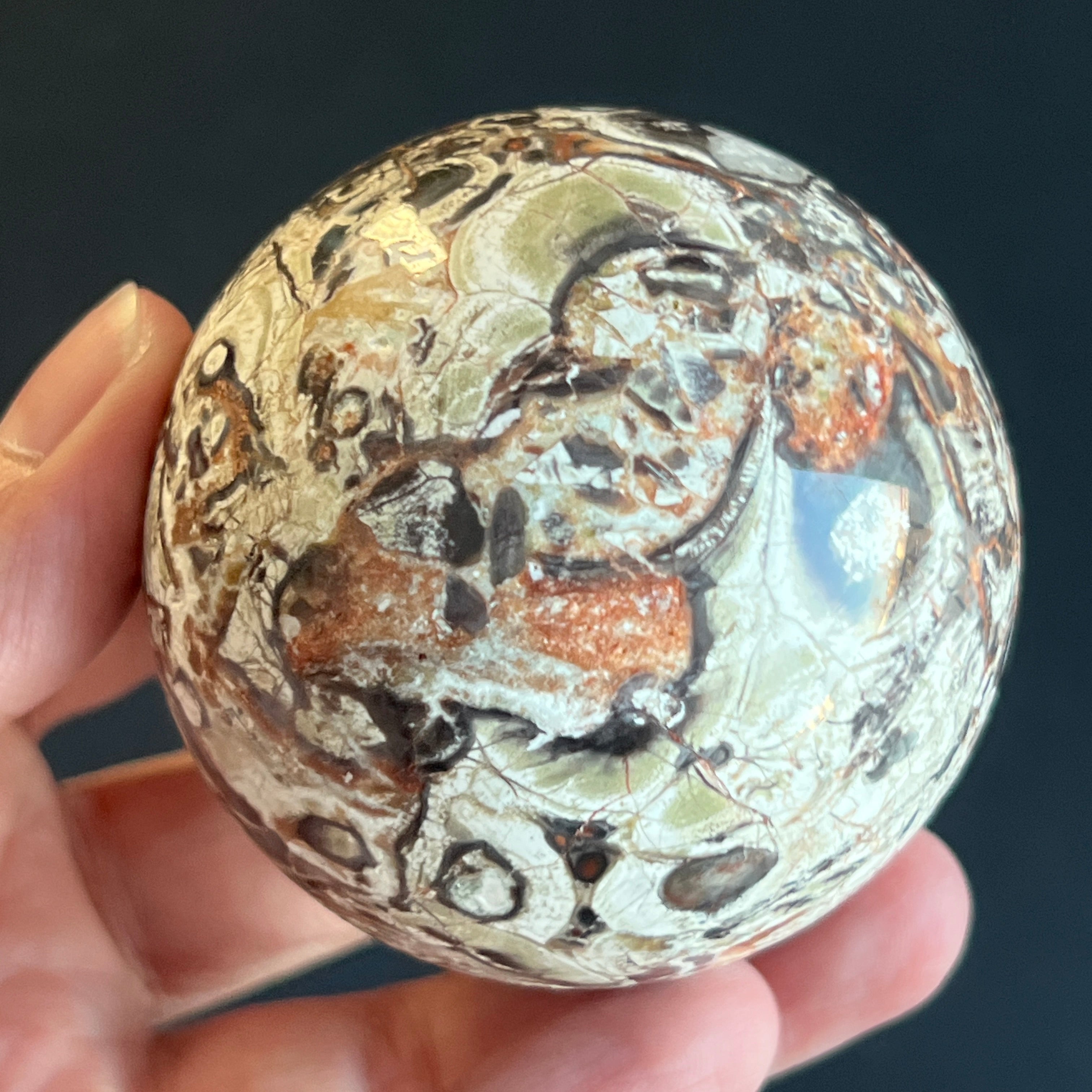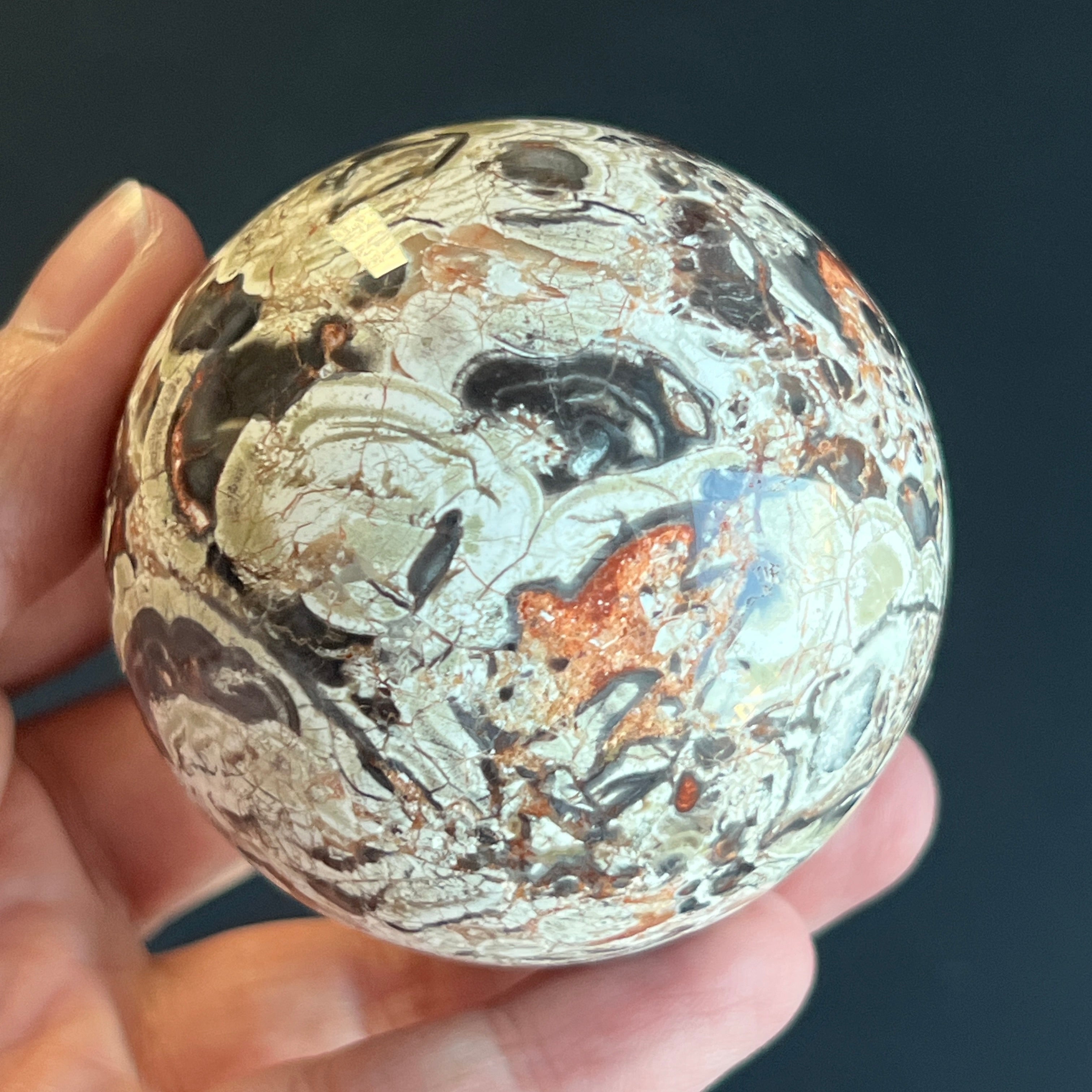 • Stein: Natürlicher roter Breccia Jaspis – vollständig geschliffene Kugel
