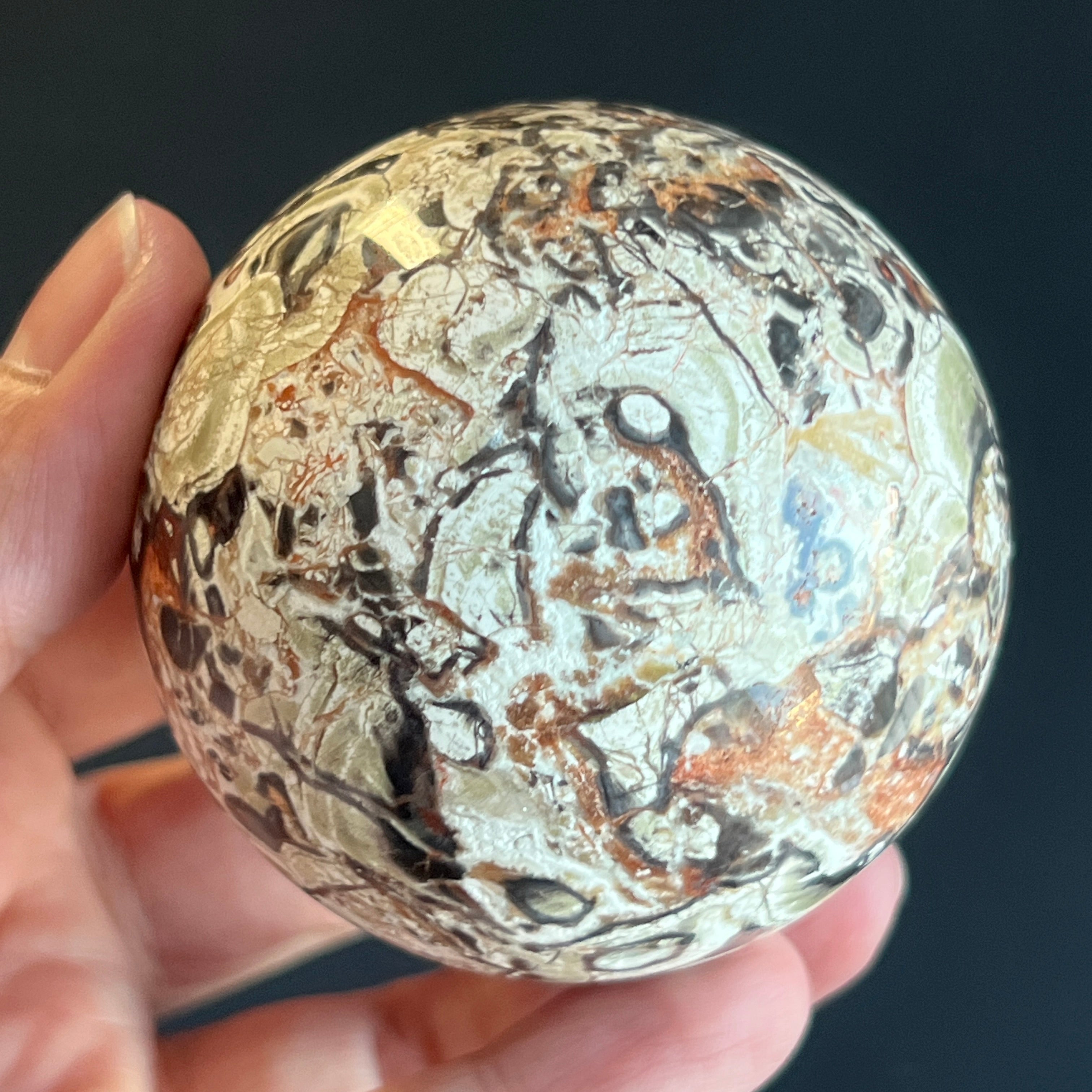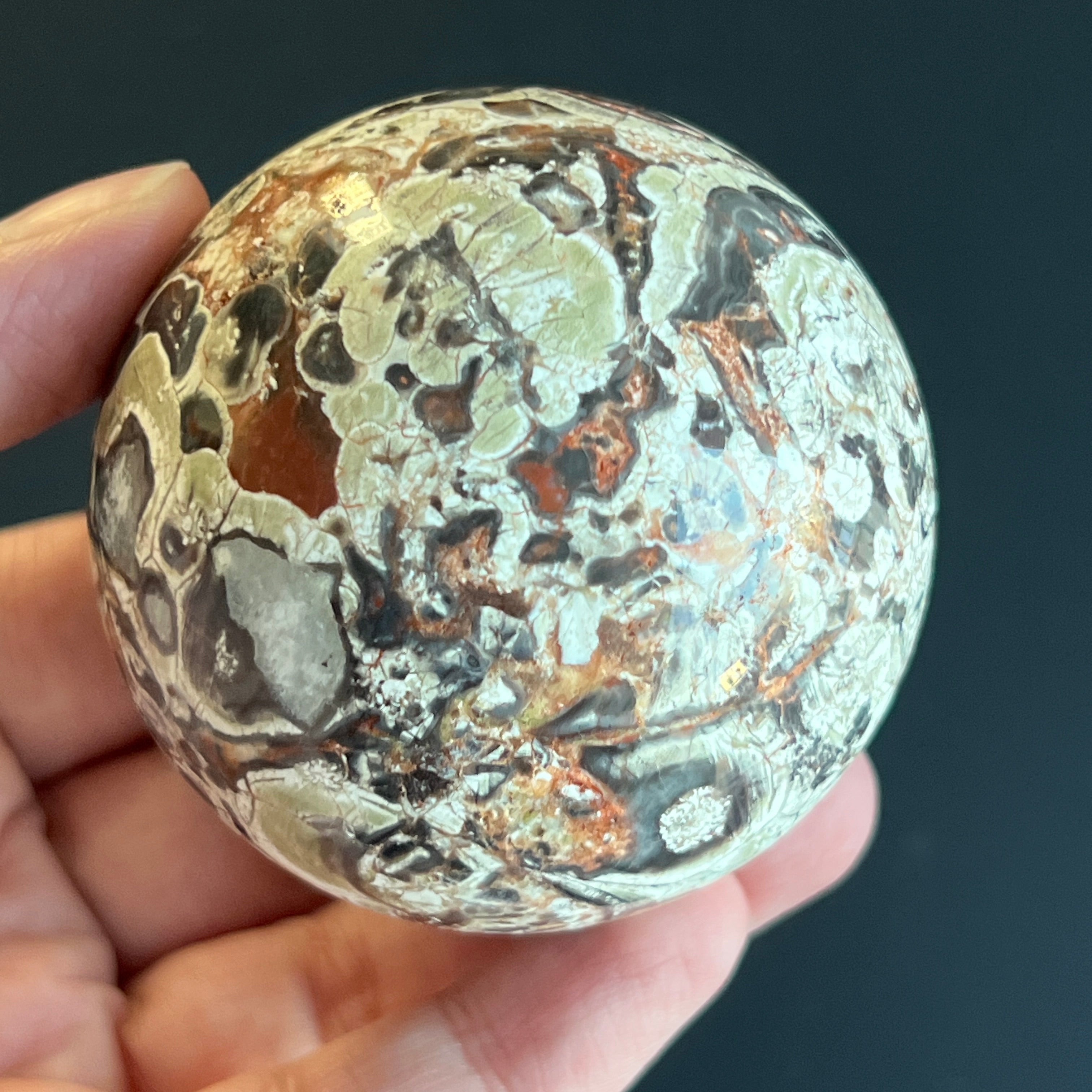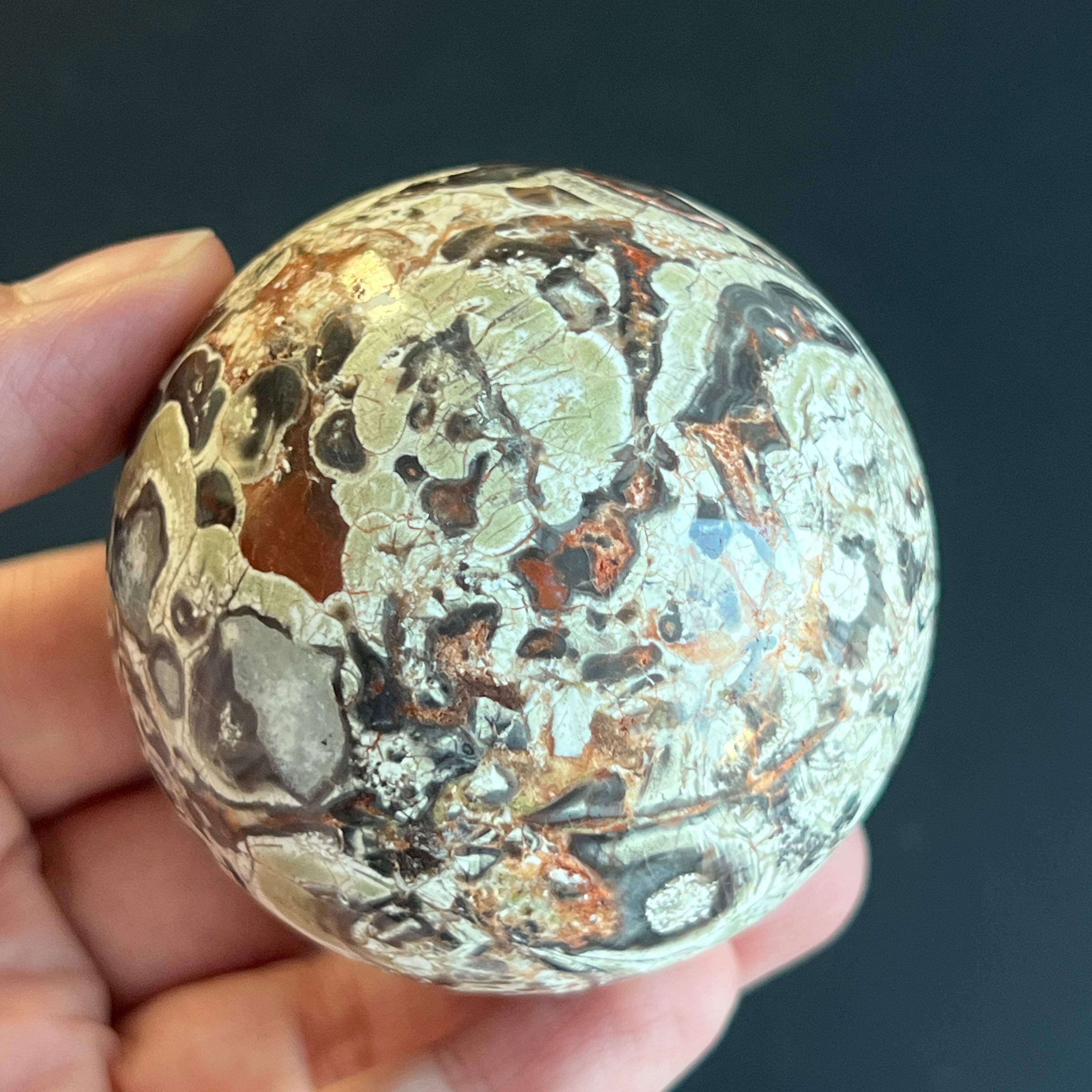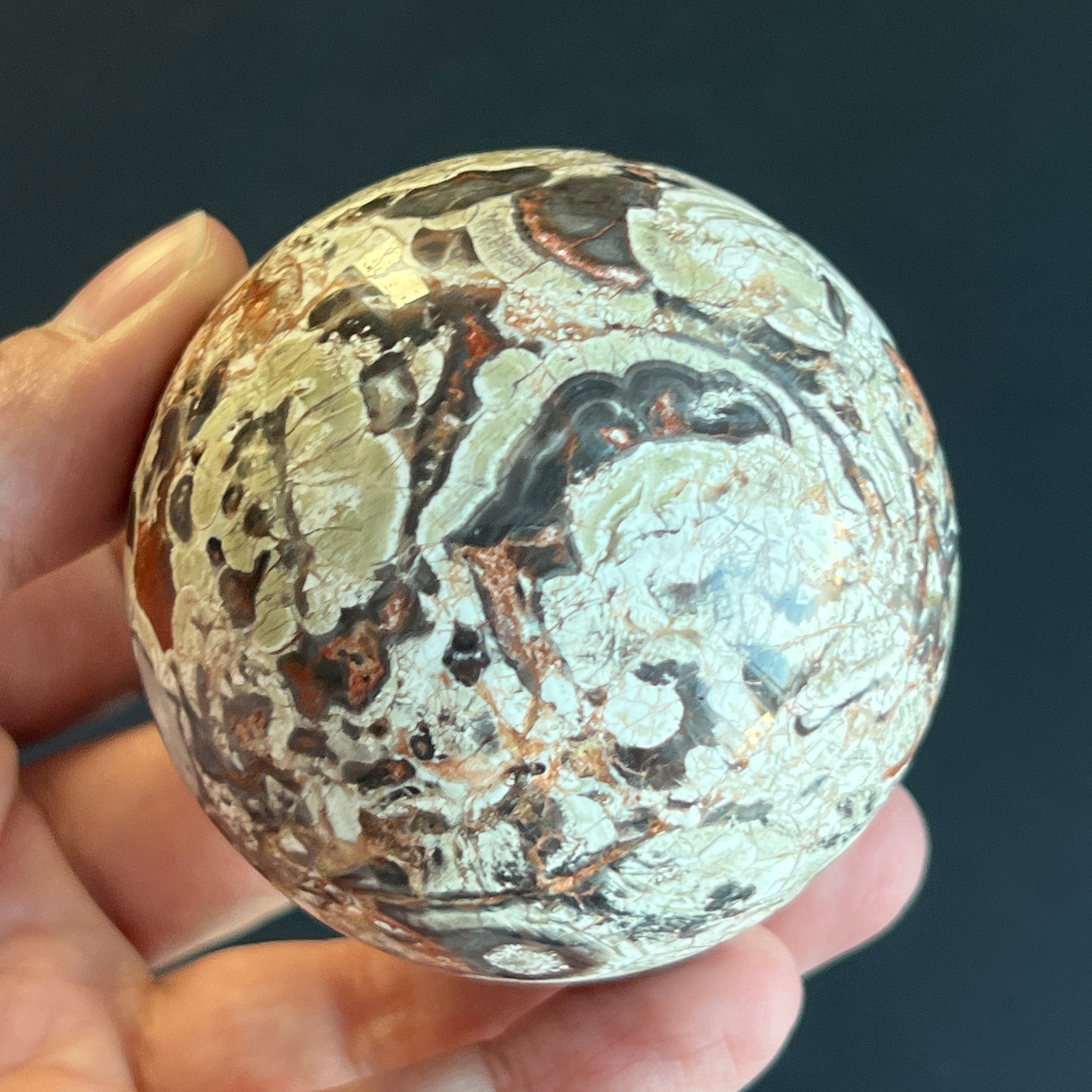 • Stein: Natürlicher roter Breccia Jaspis – vollständig geschliffene Kugel