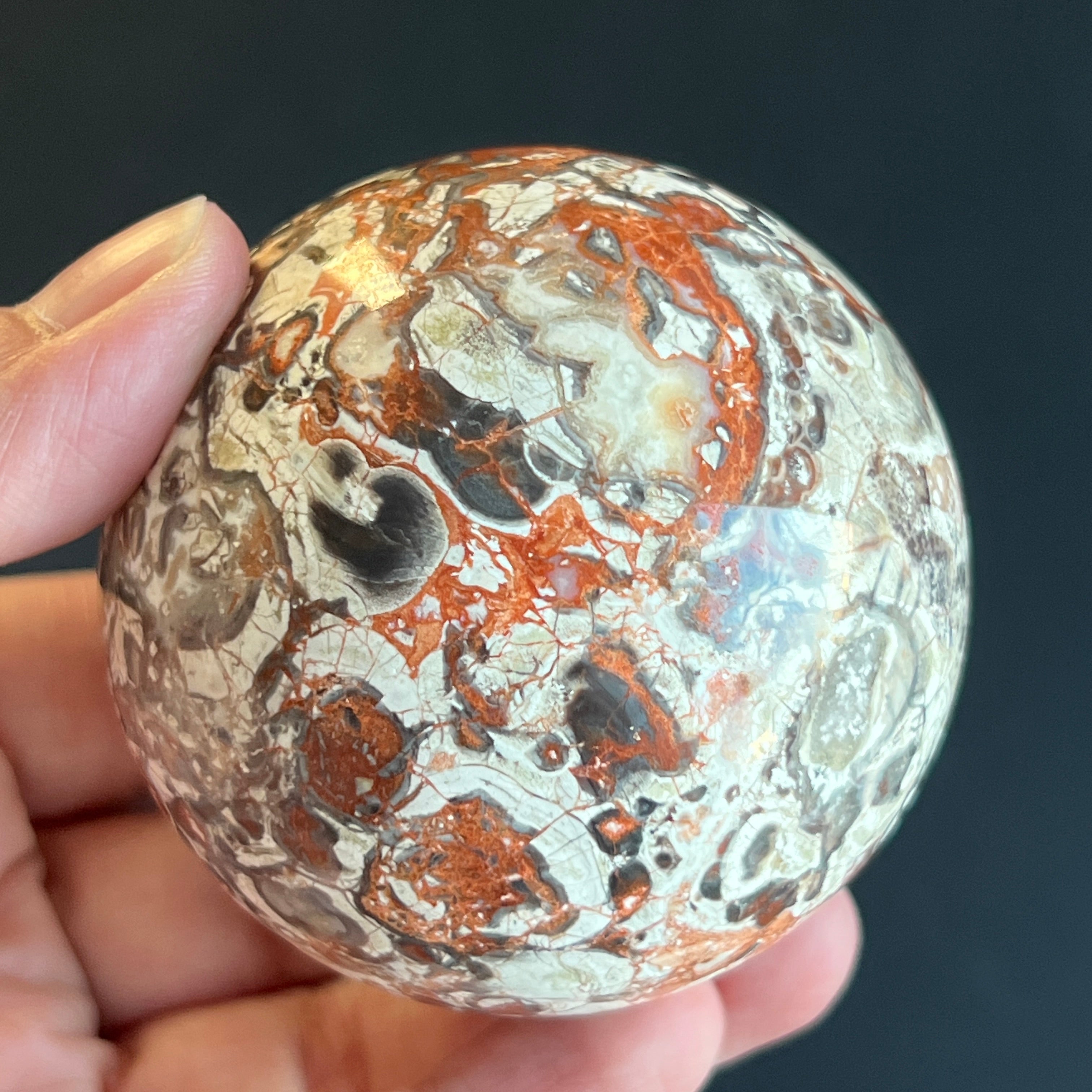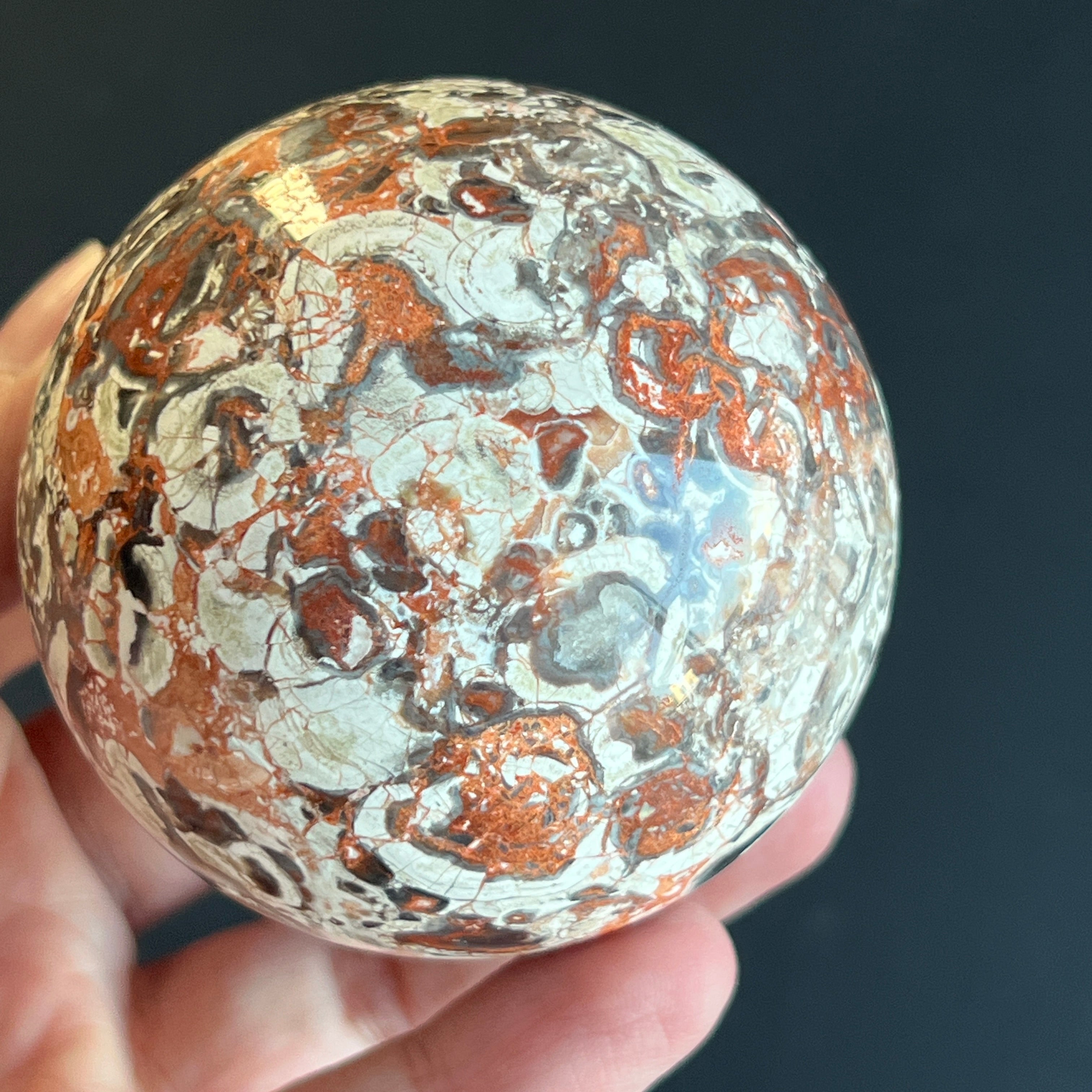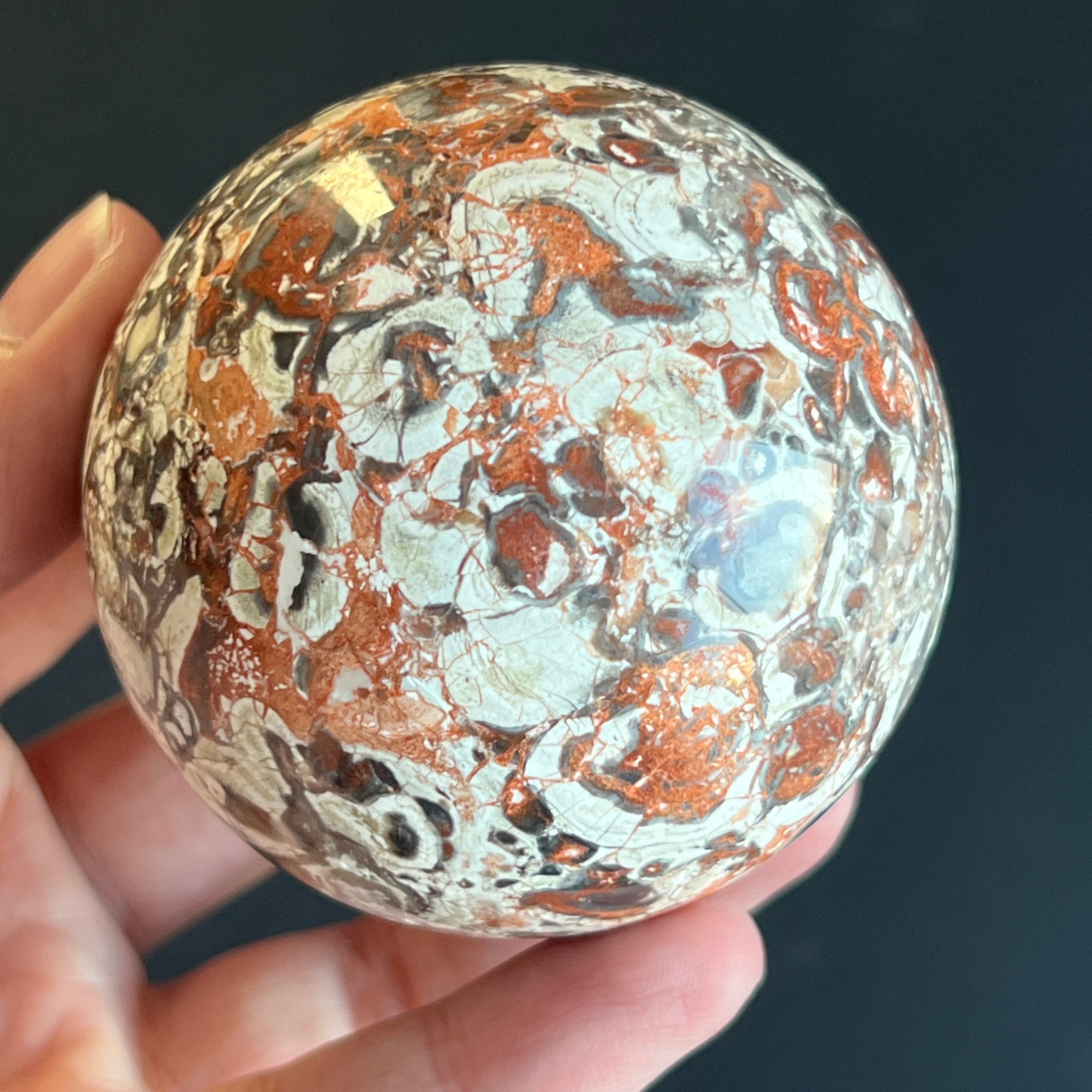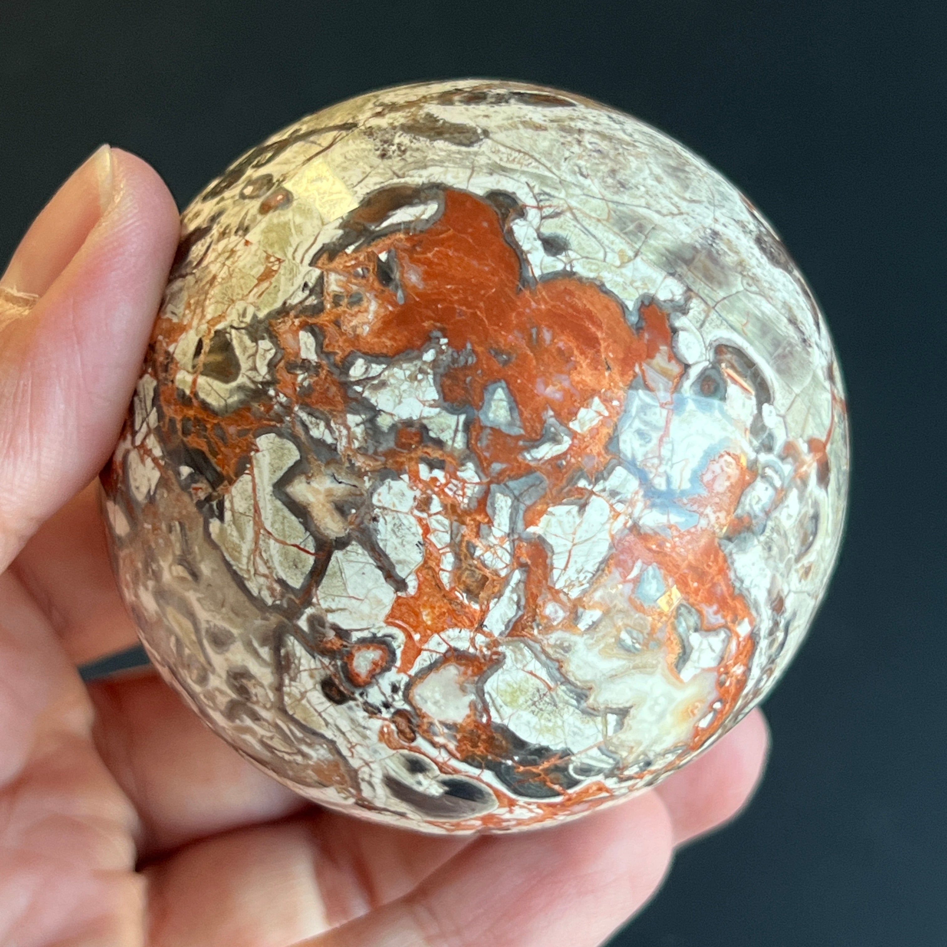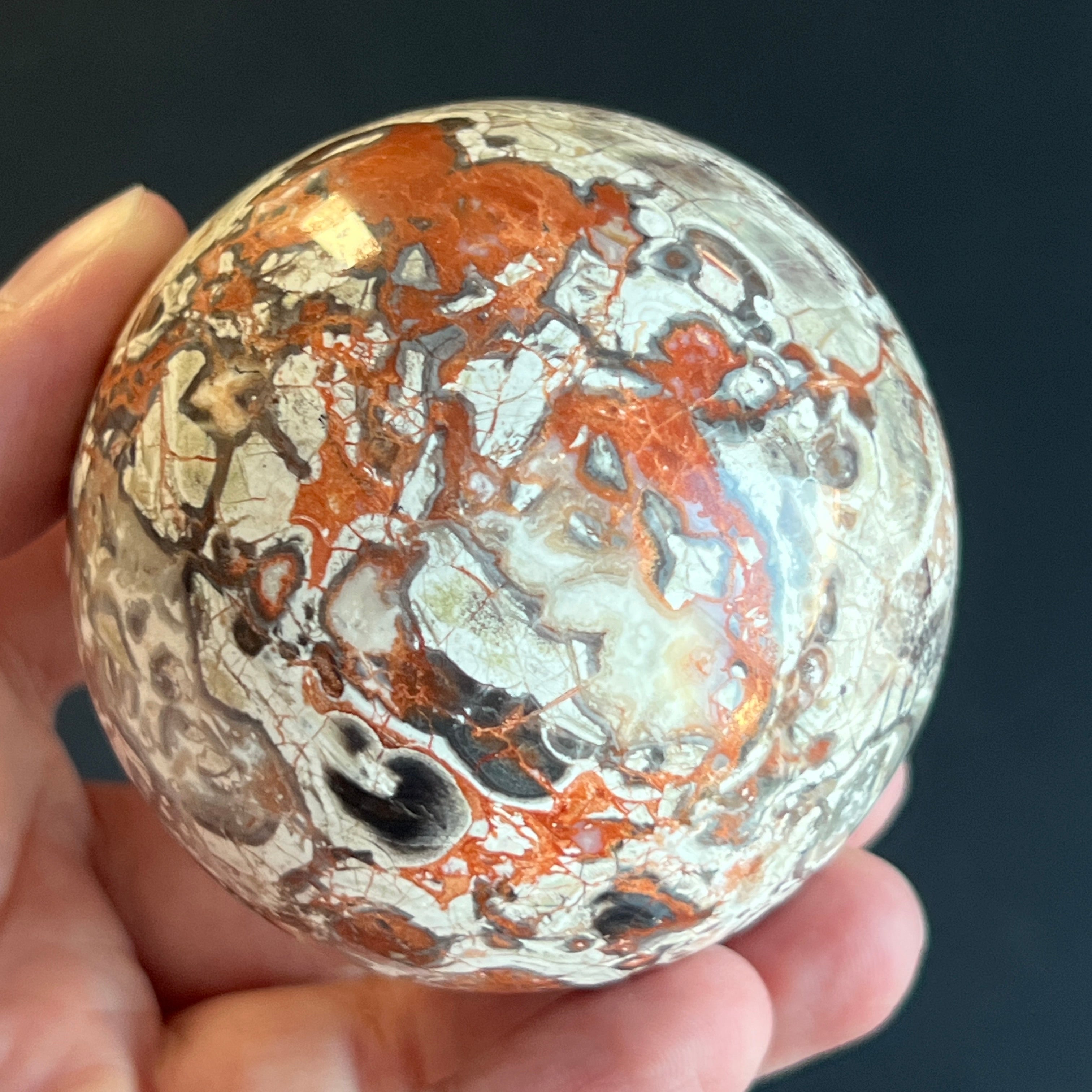 • Stein: natürlicher roter Breccia-Jaspis – vollständig geschliffene Kugel