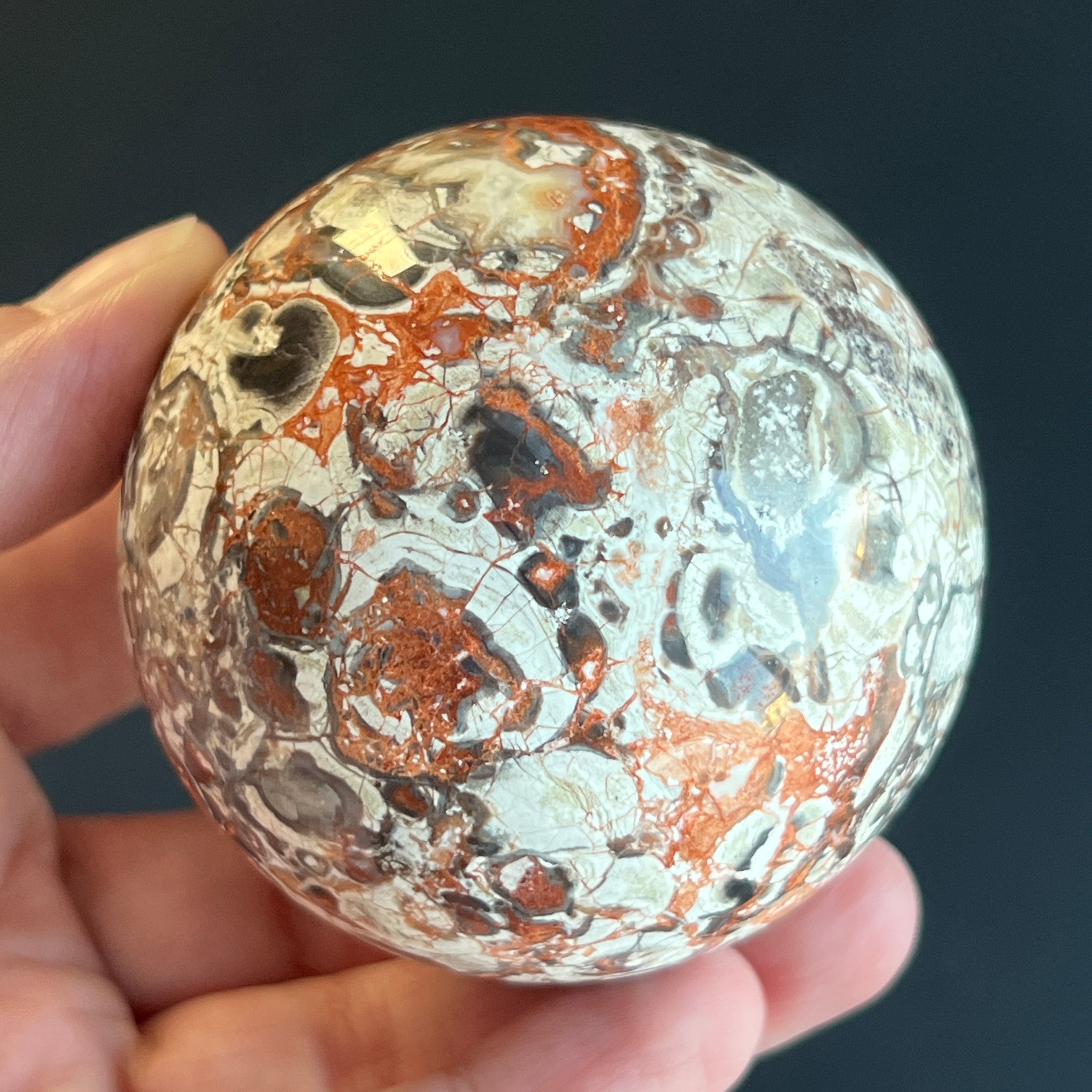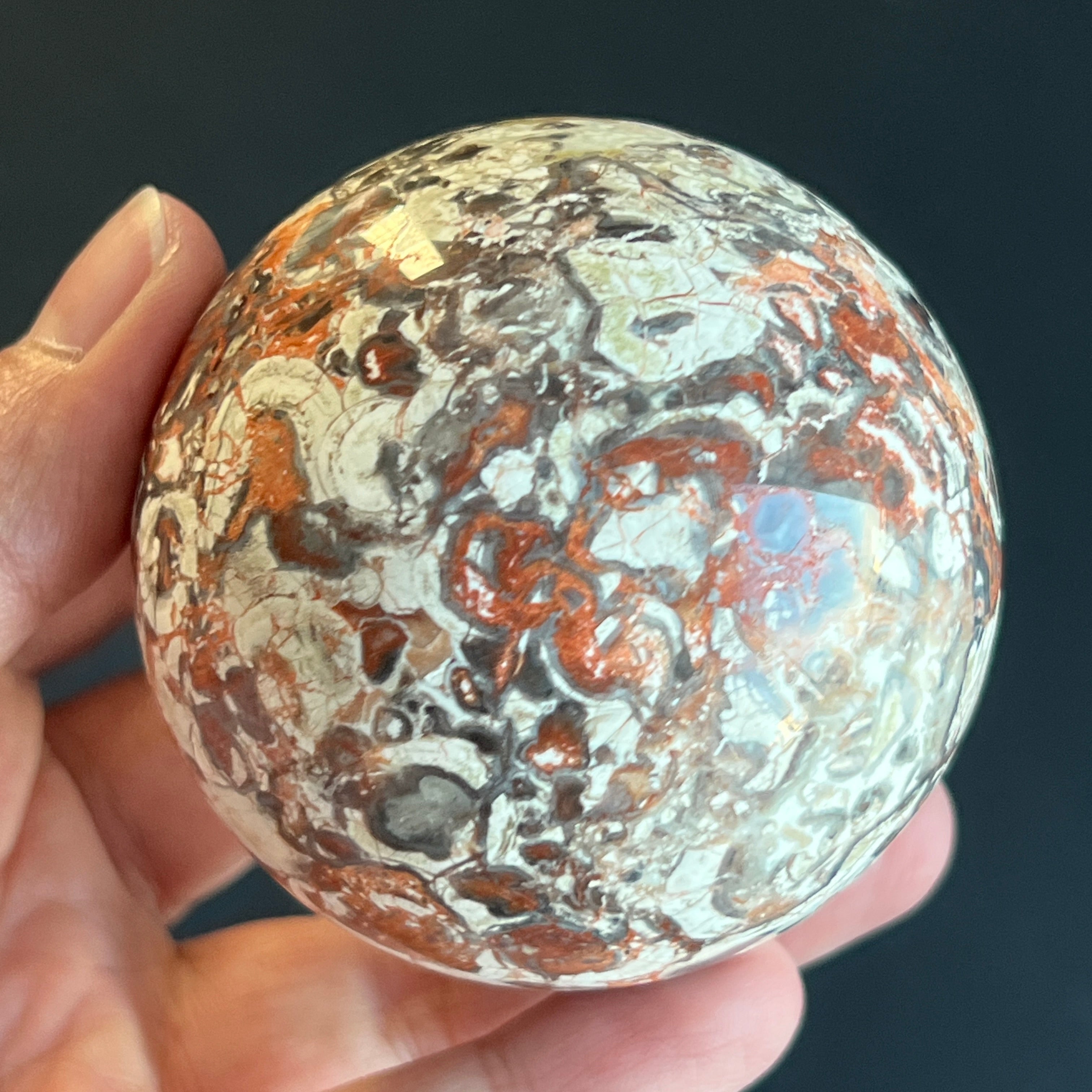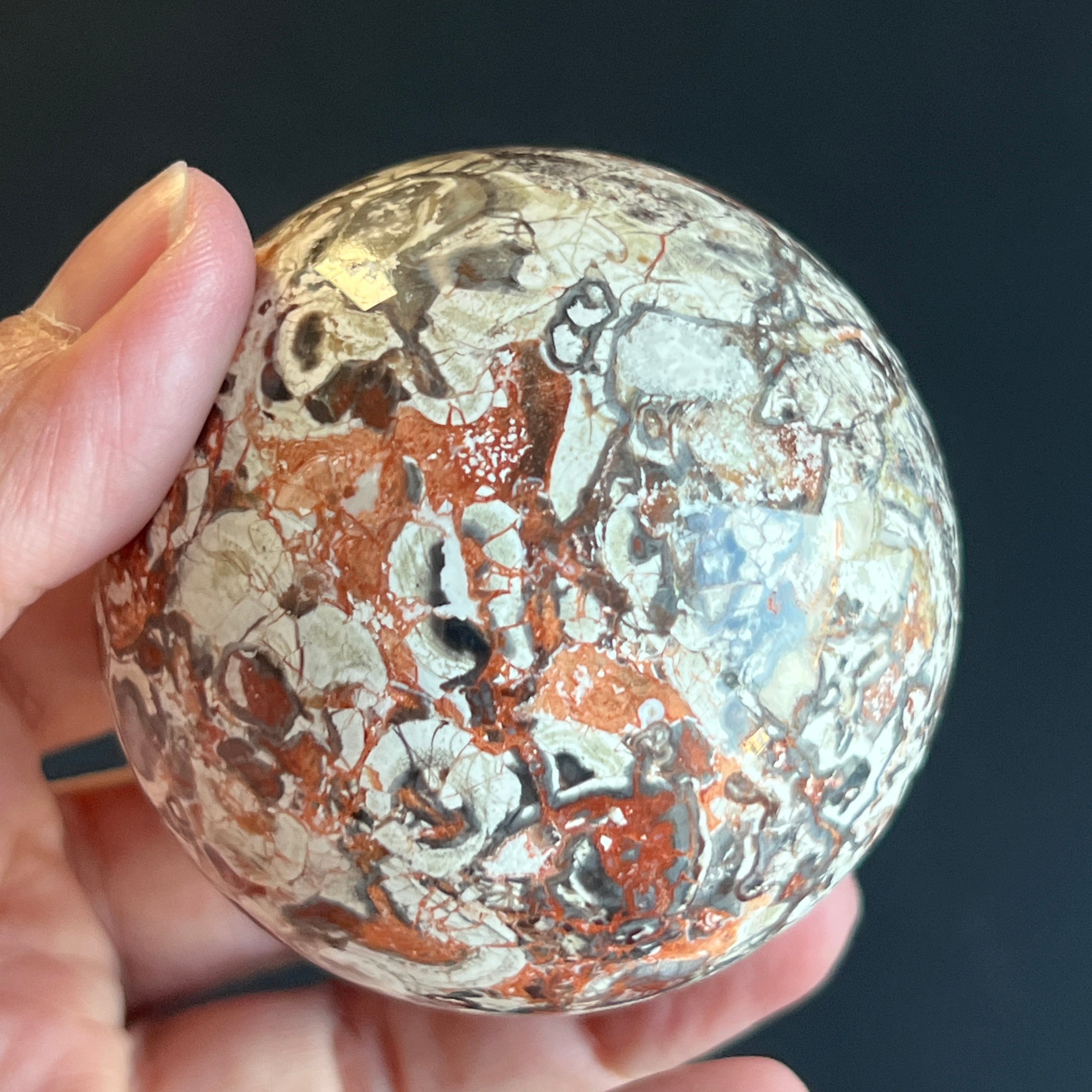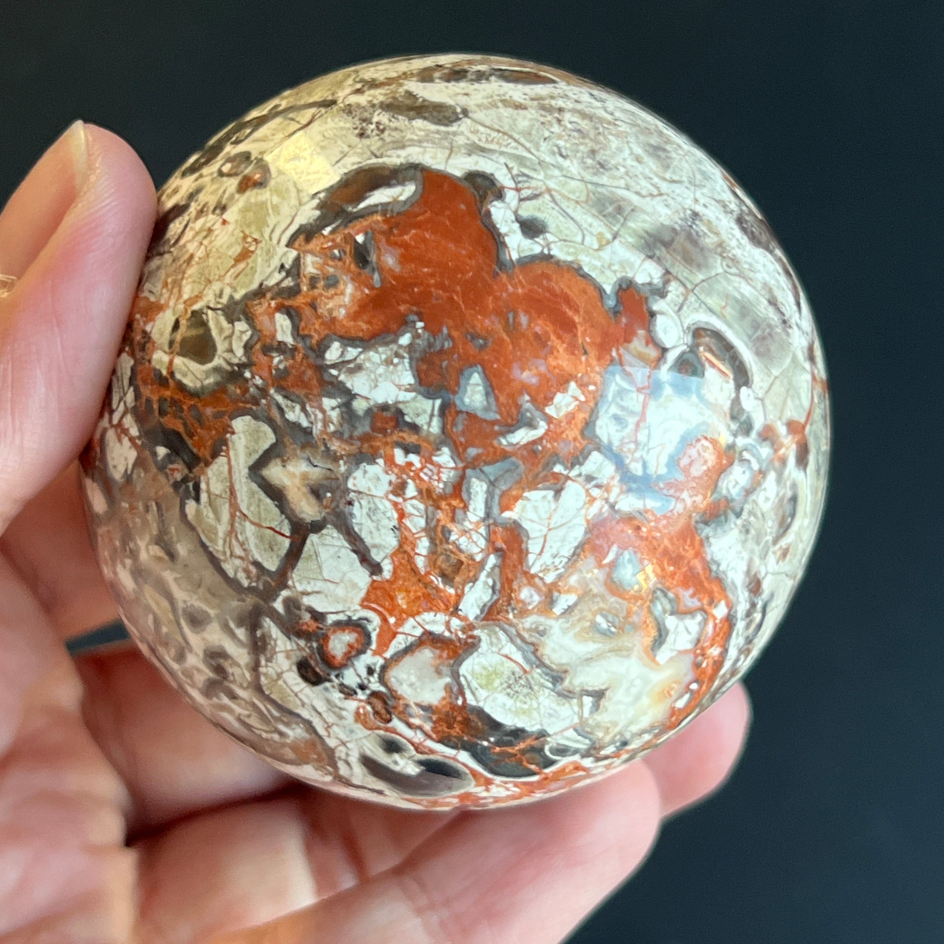 • Stein: natürlicher roter Breccia-Jaspis – vollständig geschliffene Kugel