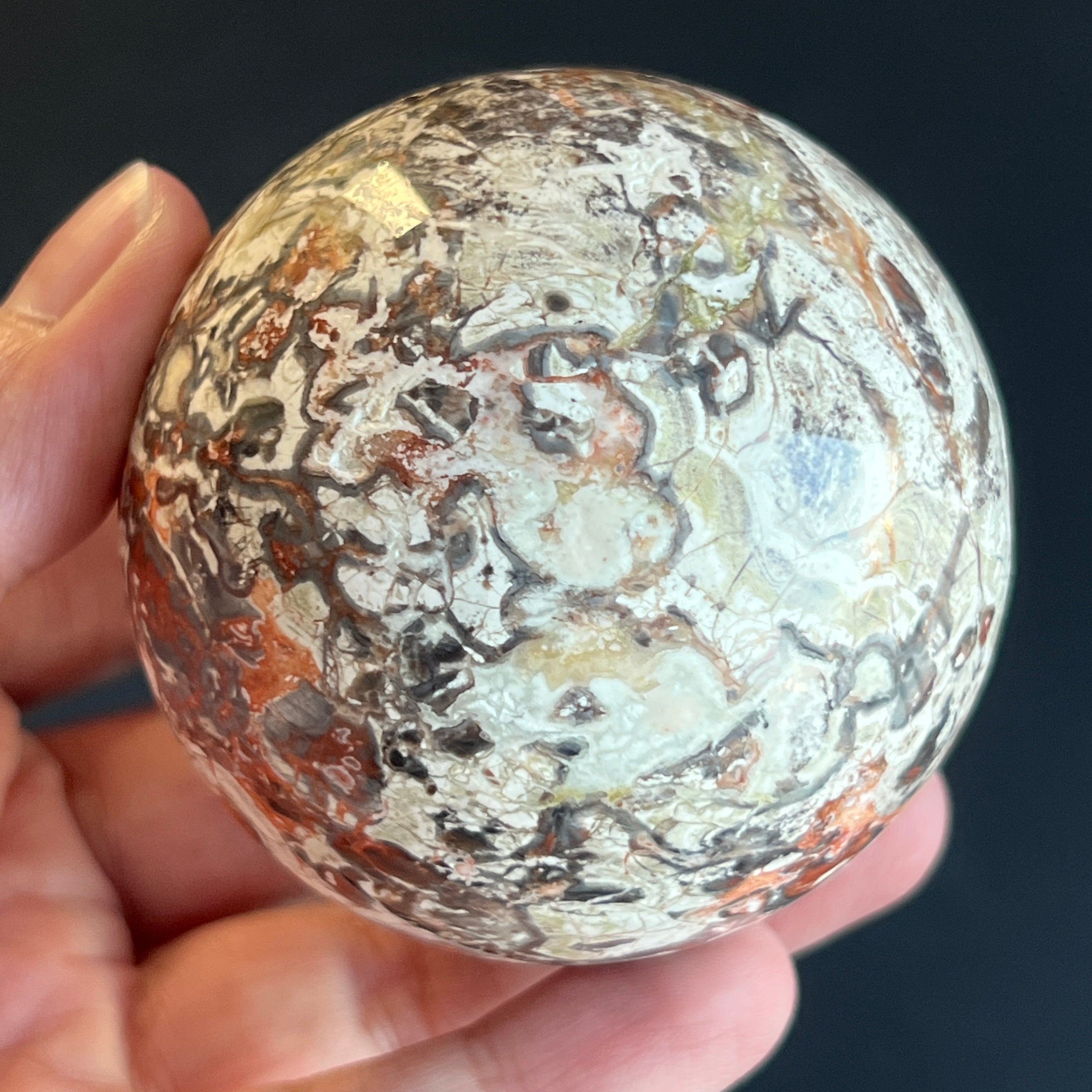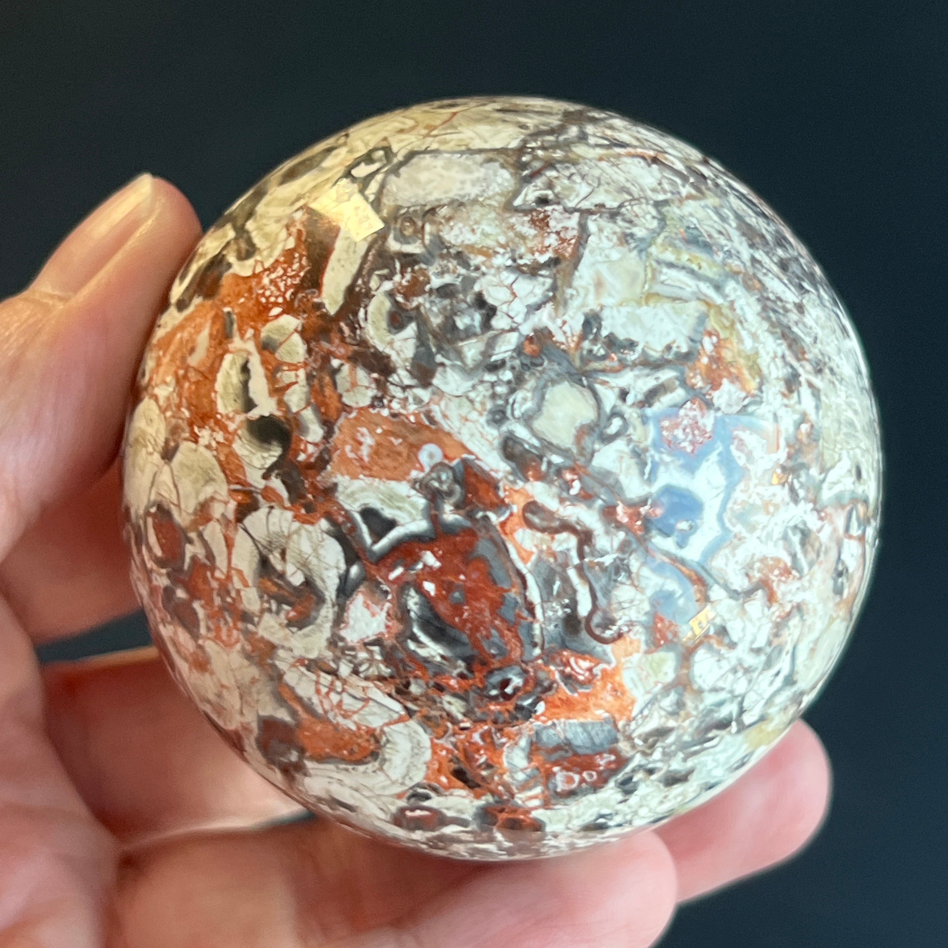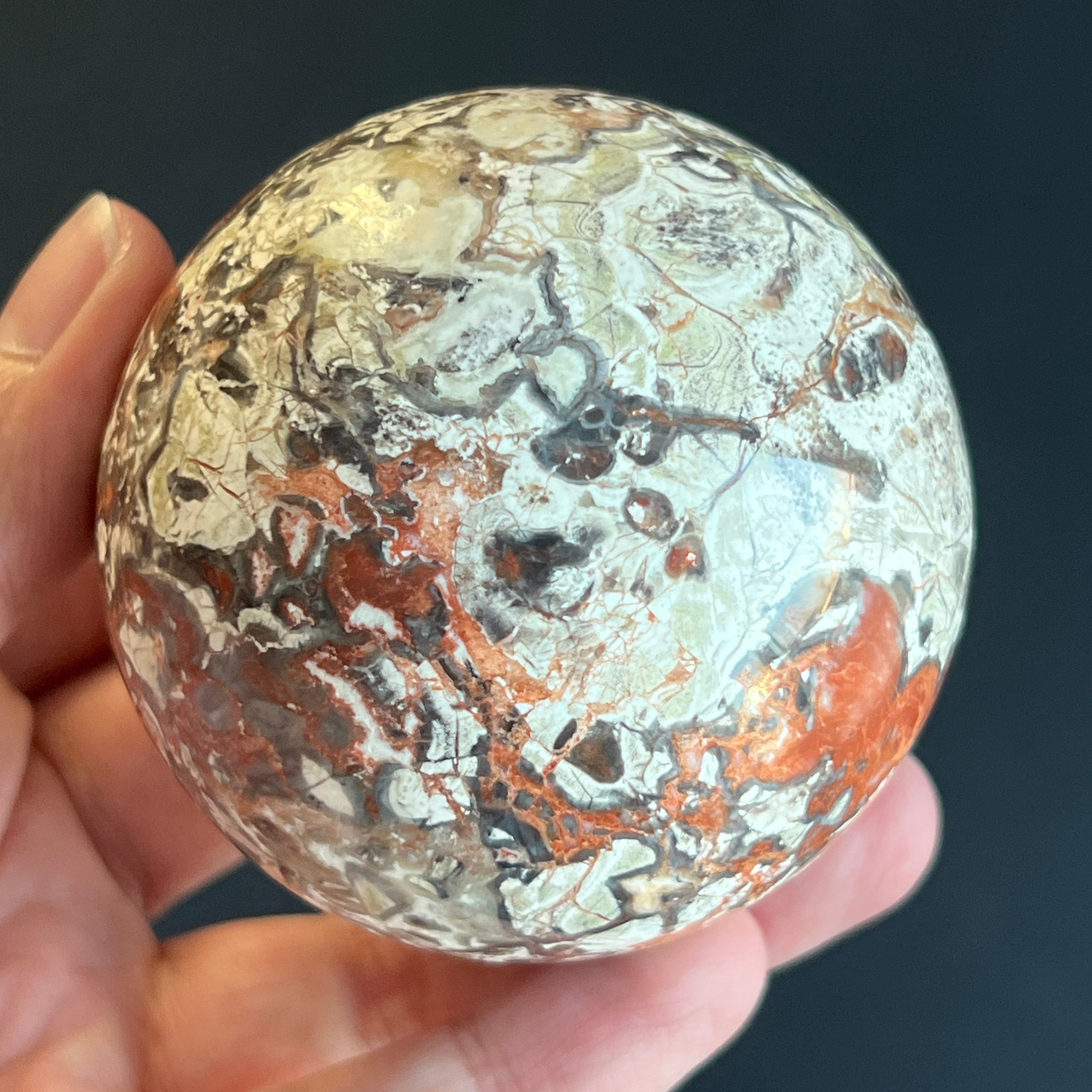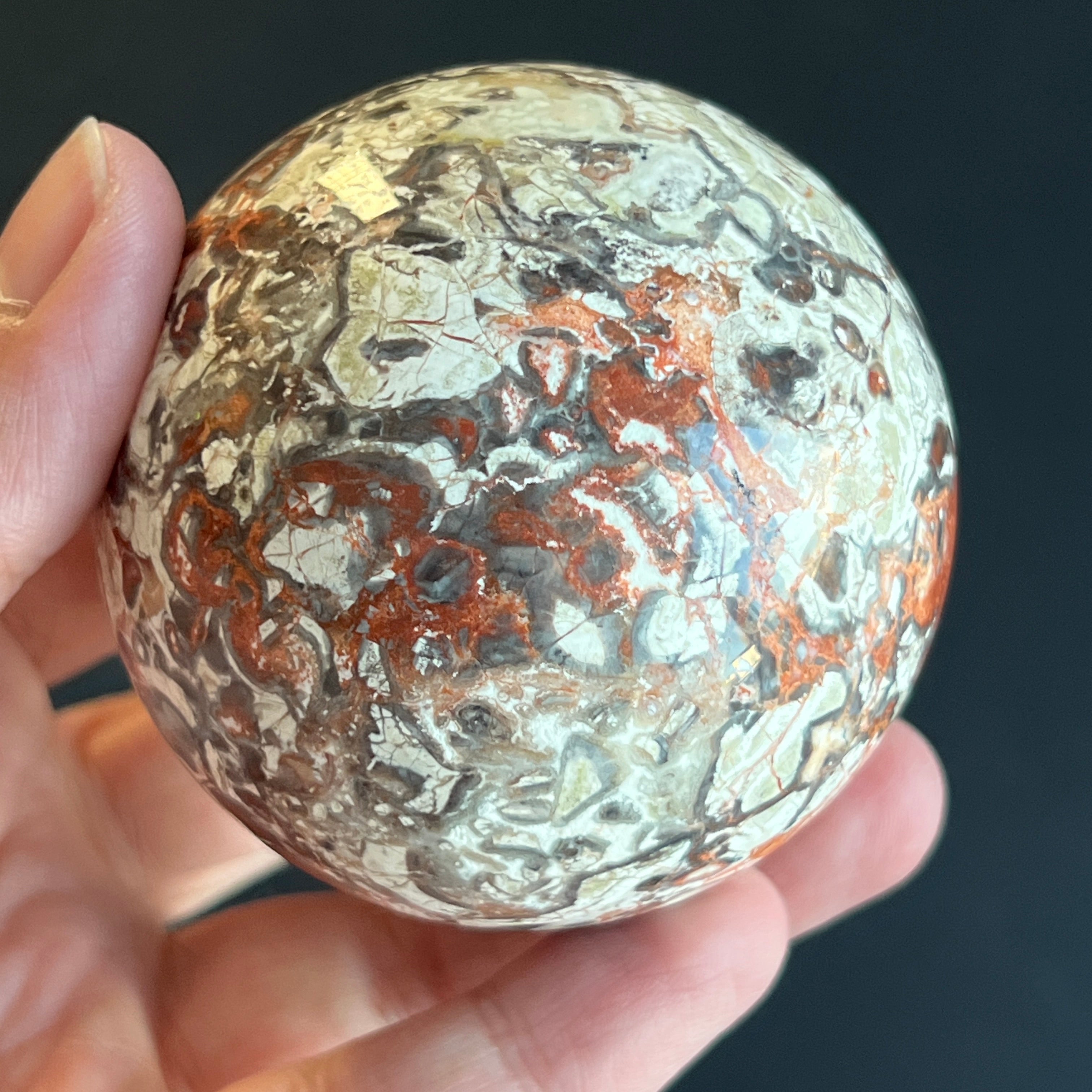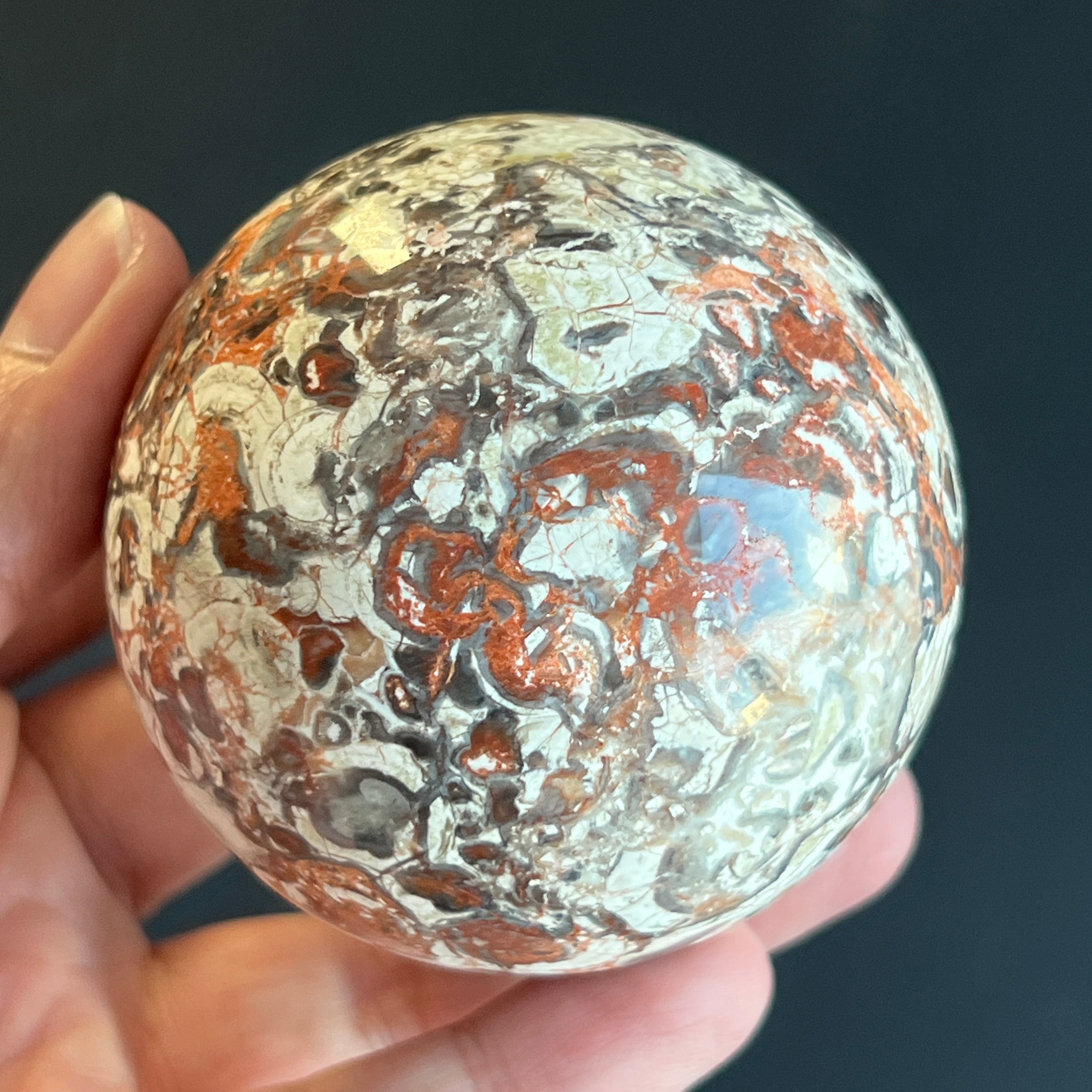 • Stein: natürlicher roter Breccia-Jaspis – vollständig geschliffene Kugel