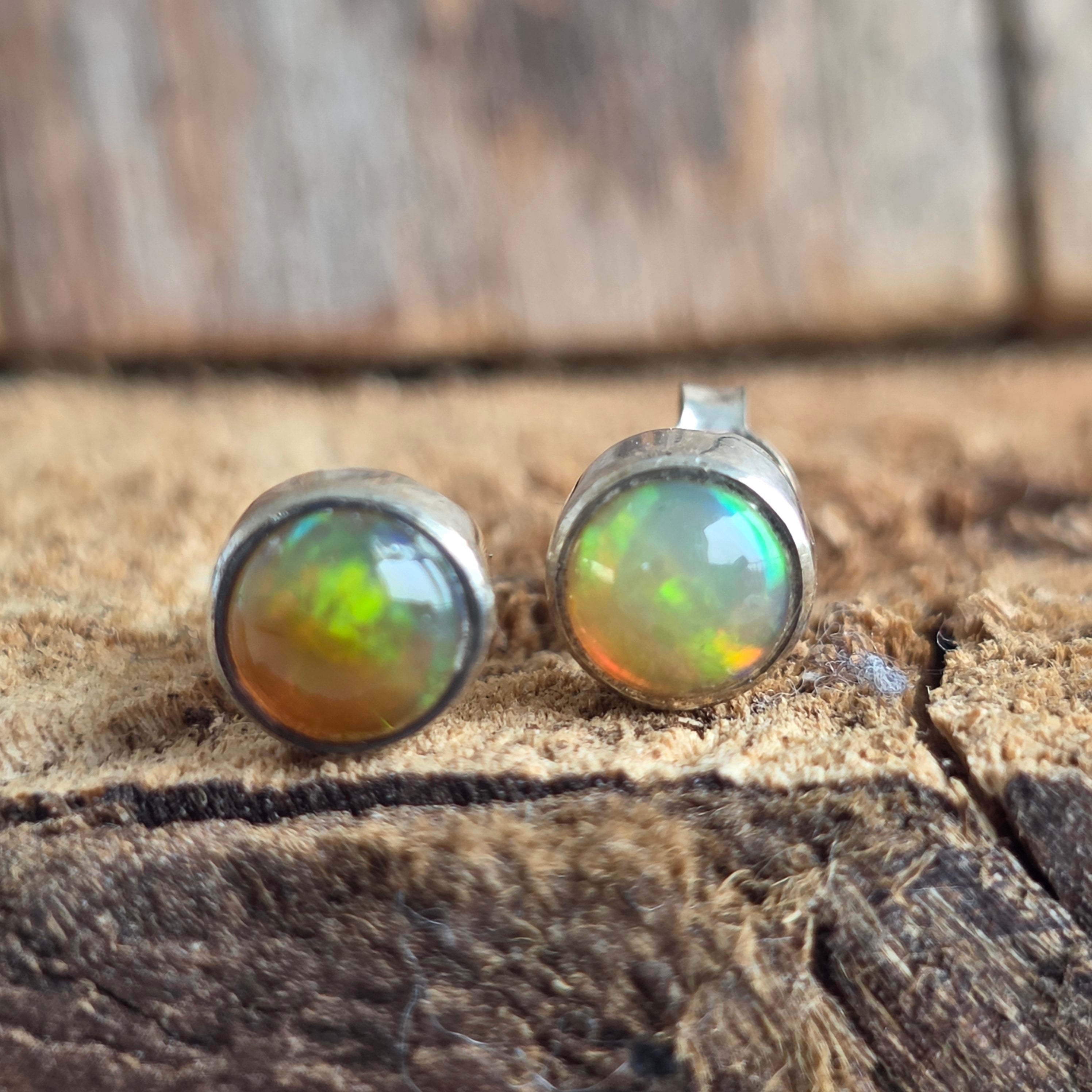 Runde Silber Opal Ohrstecker | Modell 1