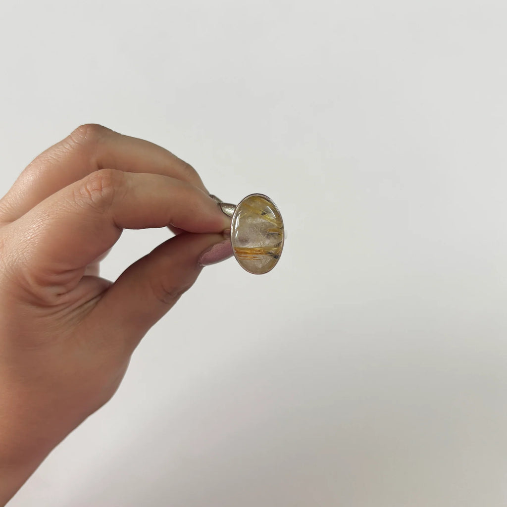 Tragen Sie diesen natürlichen routylierten Quarzring, um Ihre Lebensenergie, Fülle und Inspiration einzubringen - ein einzigartiges Stück, das von Natur aus kreiert und perfekt in Silber ist.