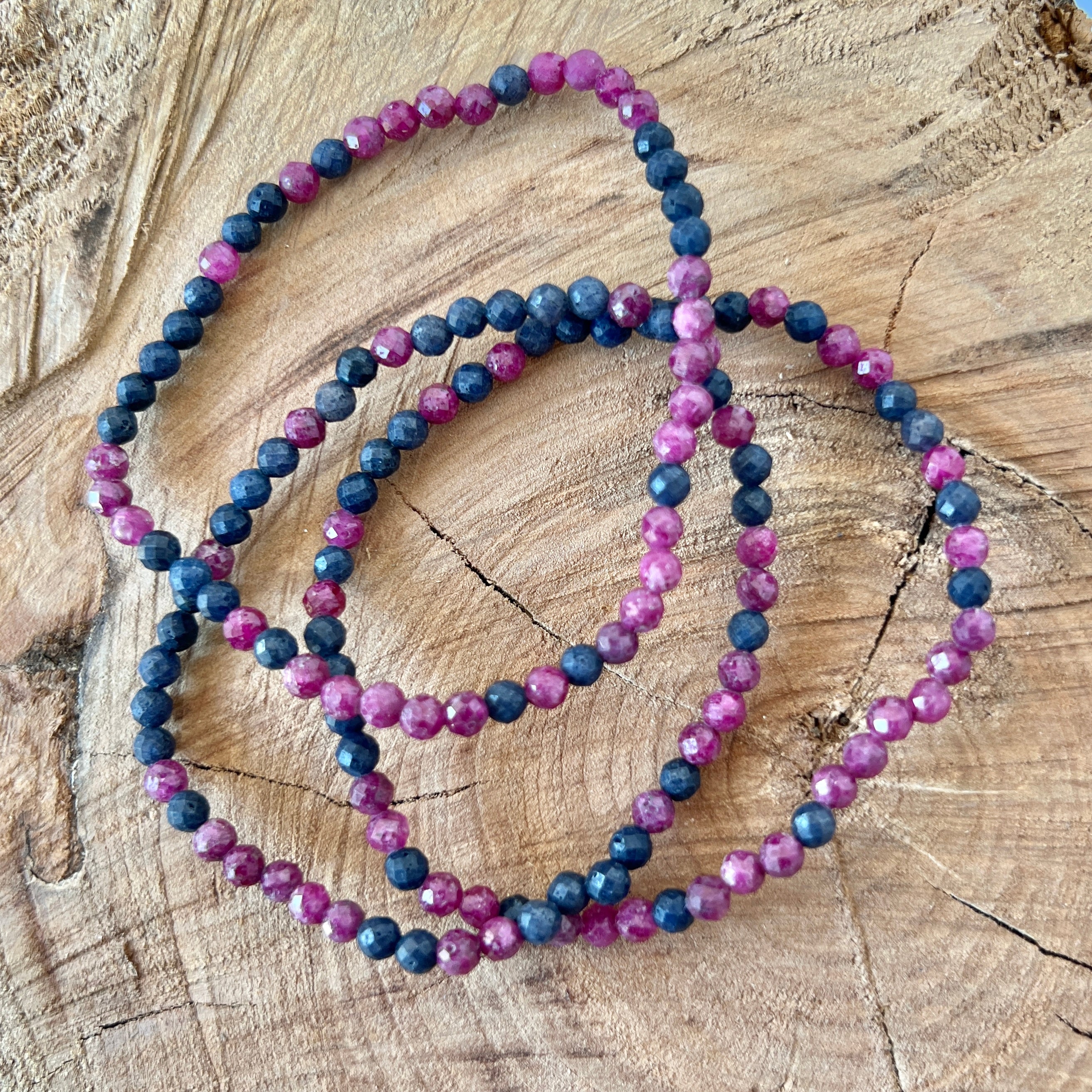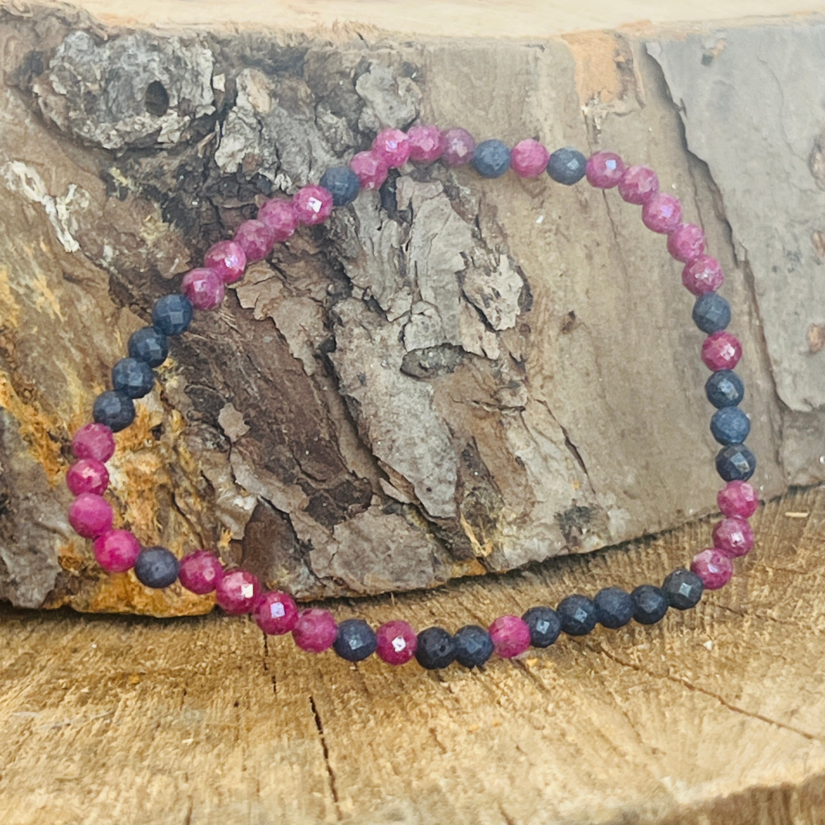 Saphirarmband mit Rubin facettiert 4 mm, Größe: 17,5 cm