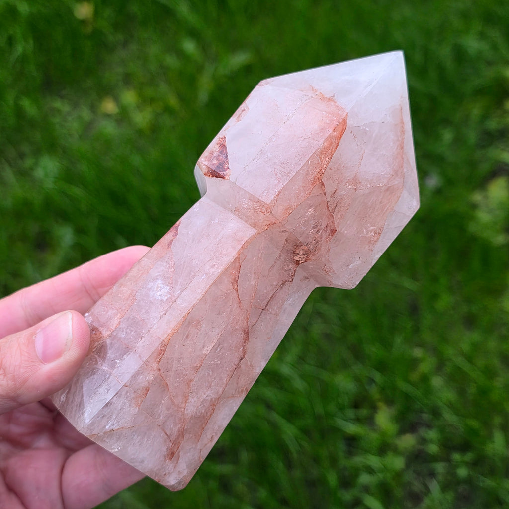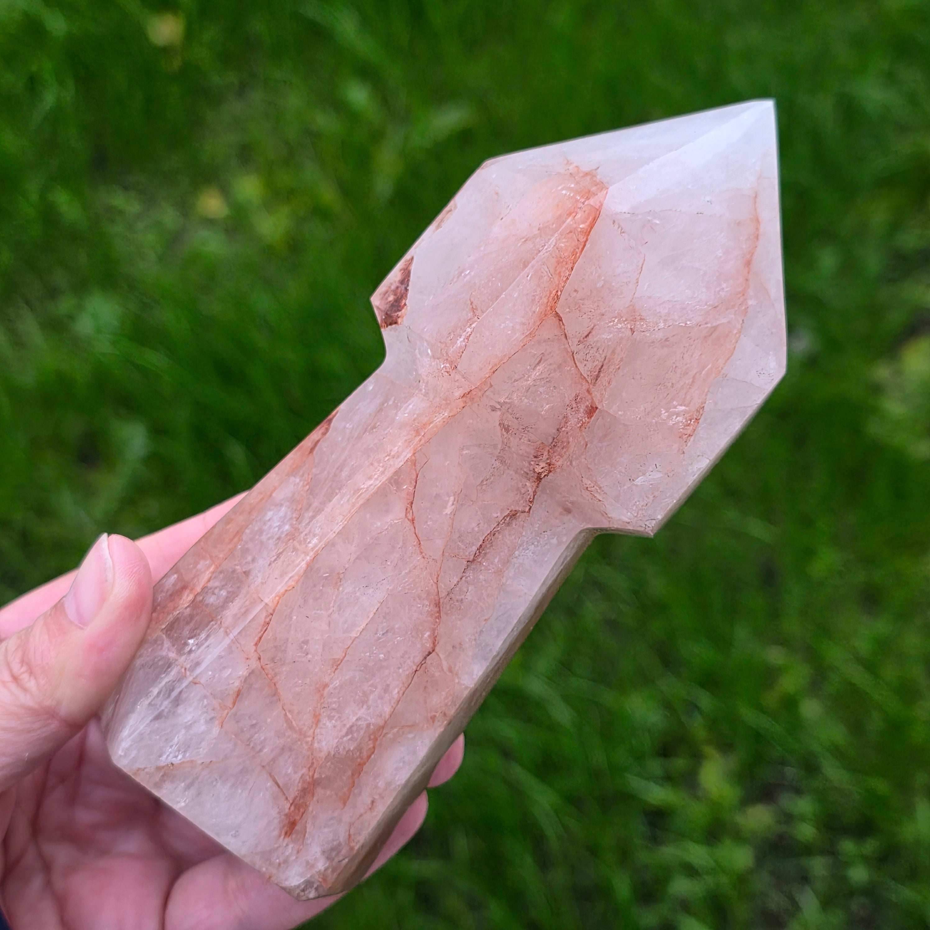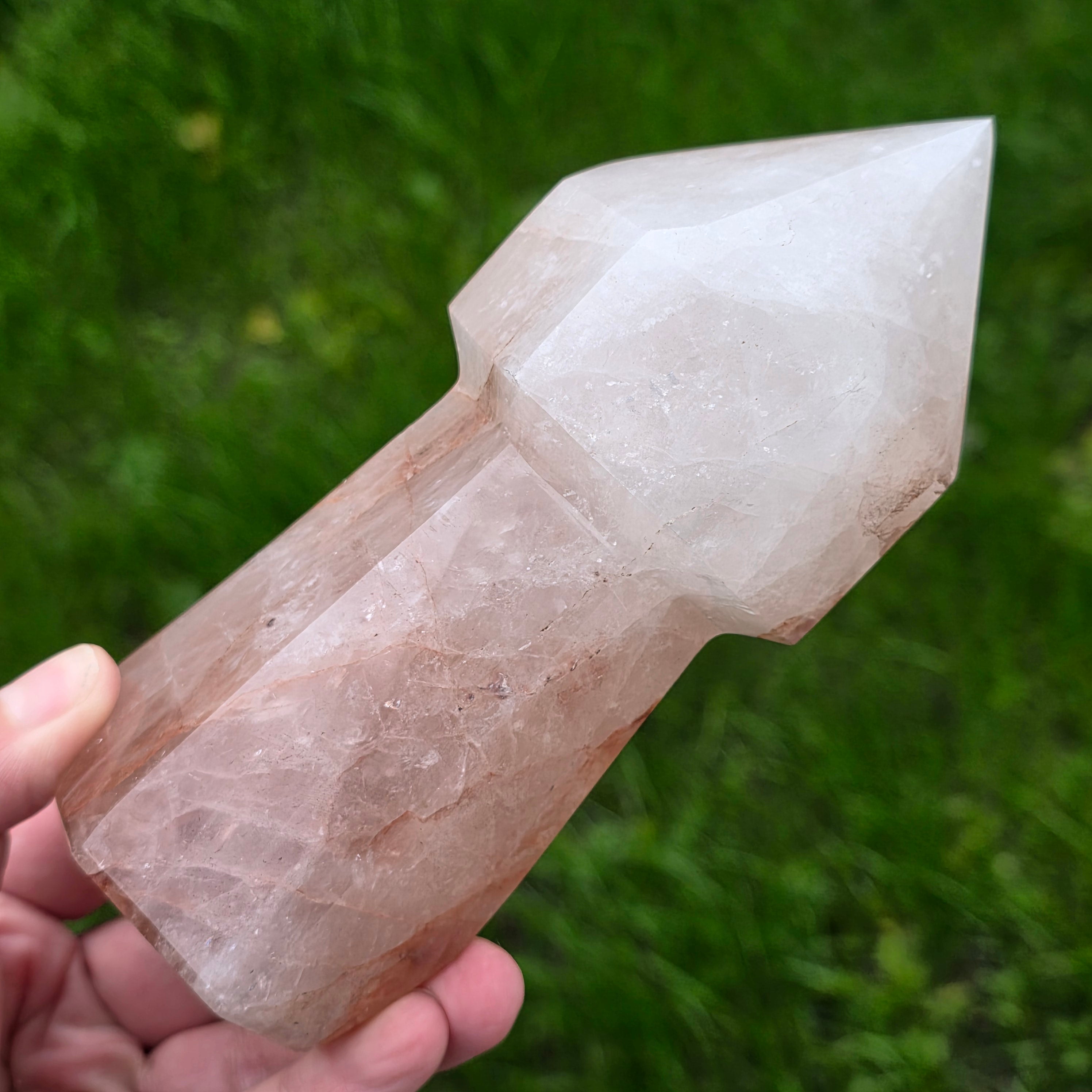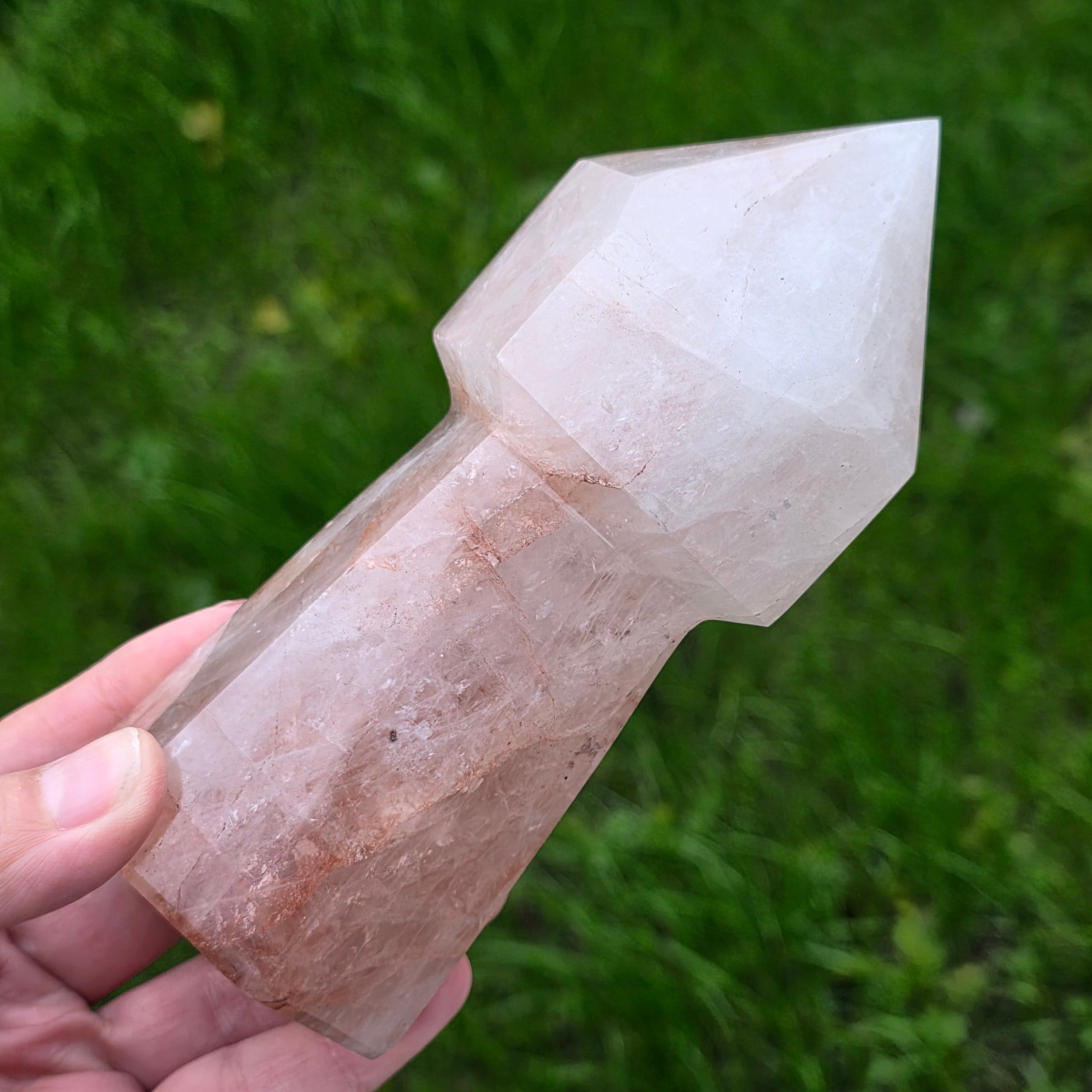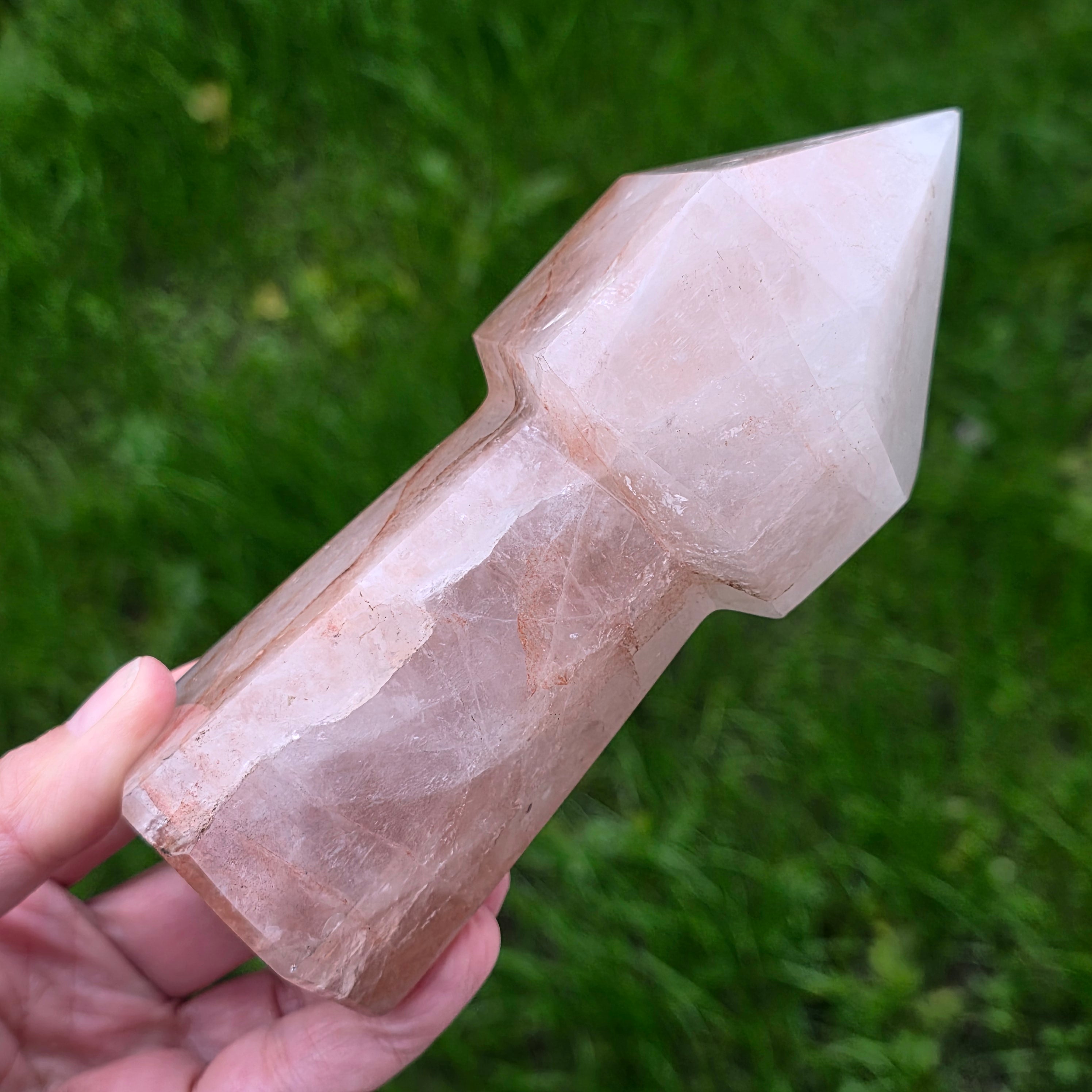Cuartul hematoid roșu este cunoscut pentru combinația dintre claritatea cuarțului și energia stabilizatoare a hematitului, fiind folosit în practici de focalizare, vitalizare și echilibrare emoțională. În forma de sceptru, instrumentul devine ideal pentru direcționarea energiei, lucrul pe meridiane, masaj energetic, activarea intențiilor și eliberarea tensiunilor din corp. Vârful său bine definit permite lucrul precis, iar partea inferioară stabilizează fluxul energetic în timpul meditației sau terapiei.