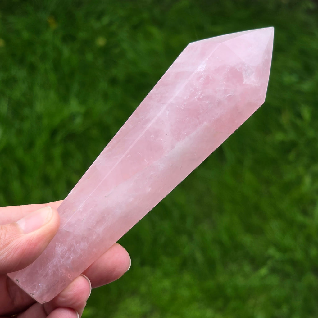 Sceptrul din cuart roz este un instrument folosit în special în practici energetice, masaj holistic și meditație. Forma sa alungită și vârful bine definit permit direcționarea intenției, echilibrarea fluxului energetic și focalizarea atenției în zonele în care ai nevoie de calm sau claritate. Este utilizat deseori pentru masaj energetic, fiind ideal pentru trasee lungi pe meridiane, pentru relaxarea zonei umerilor, spatelui sau palmelor. În meditație, poate fi ținut în mână pentru a amplifica starea de liniște și conectare interioară.