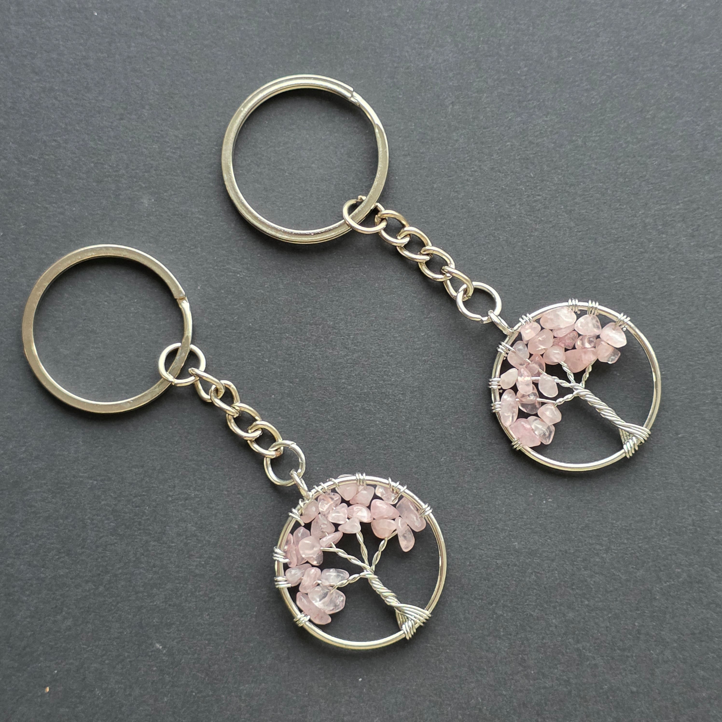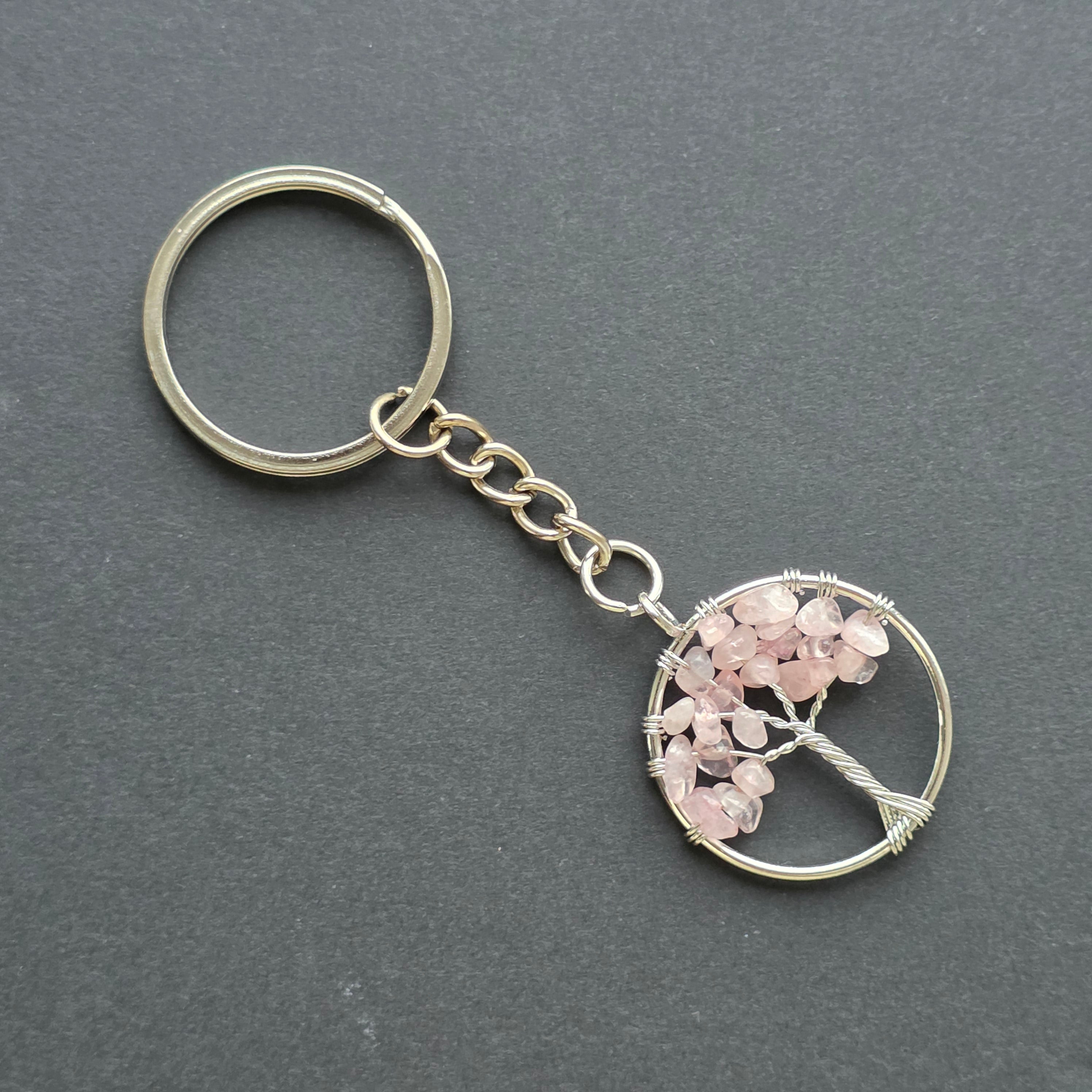 Schlüsselanhänger Rosenquarz | Baum des Lebens