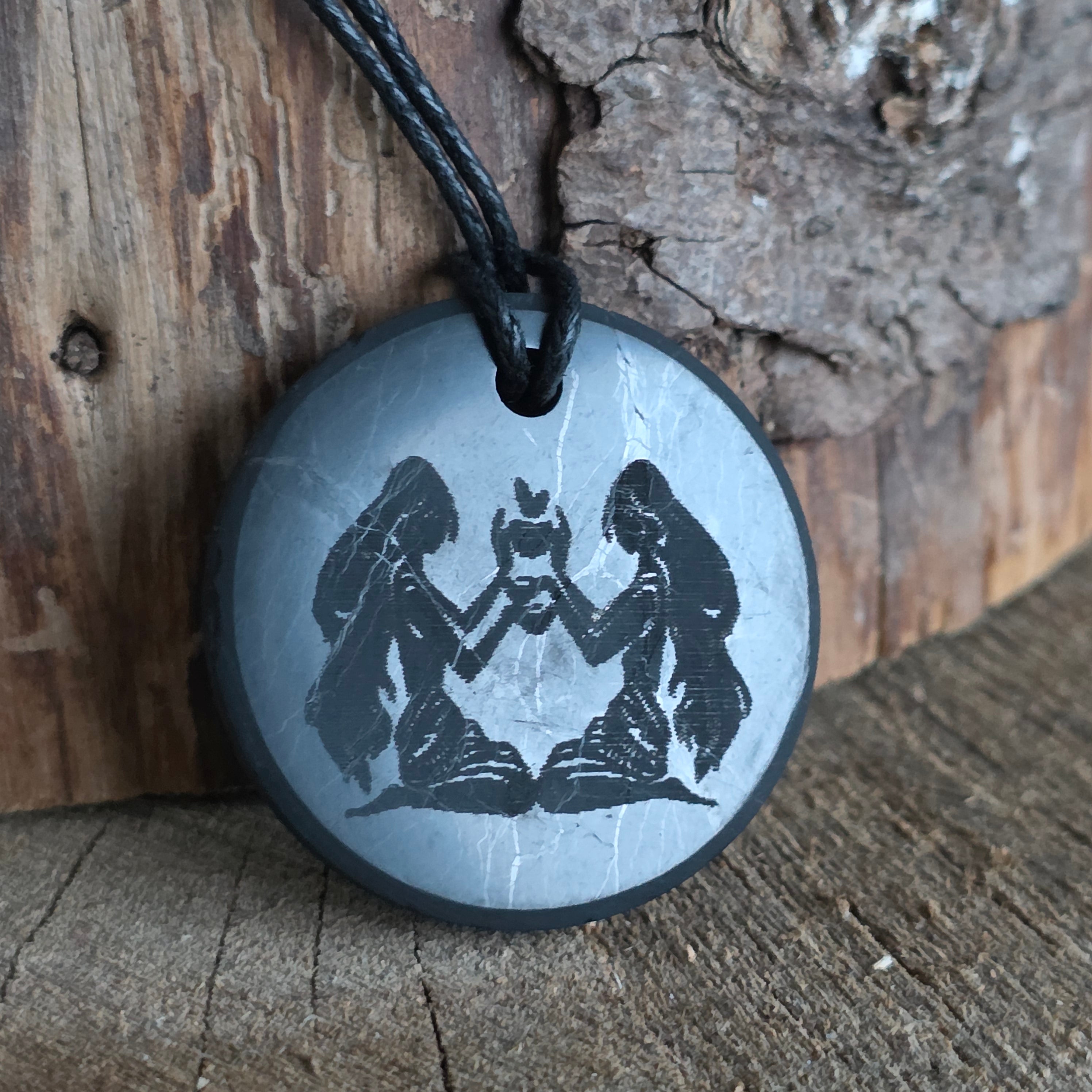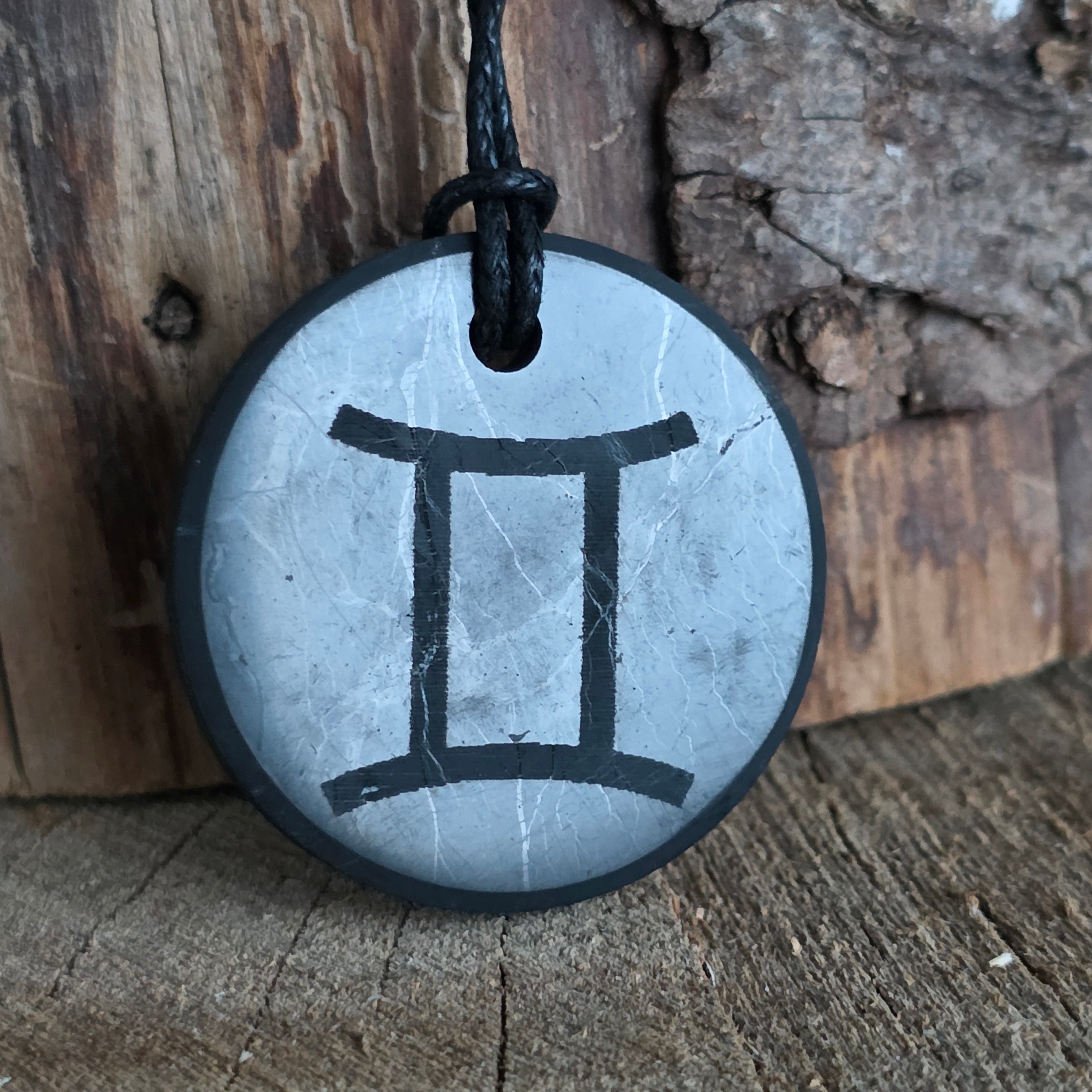 Beschreibung - Schungit-Anhänger Sternzeichen Zwillinge