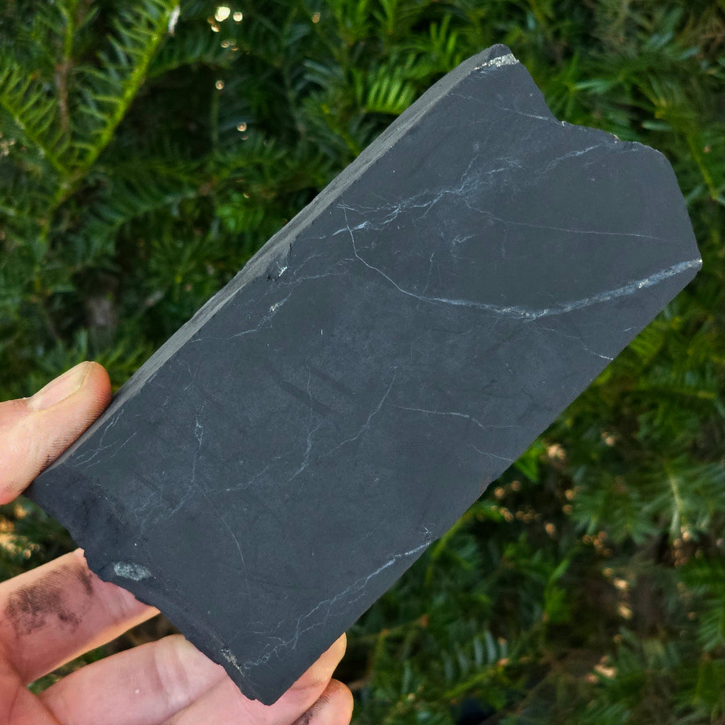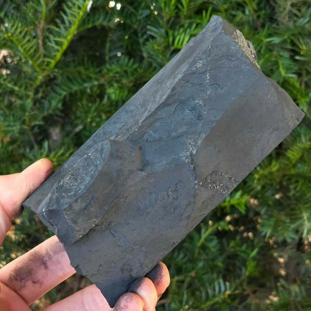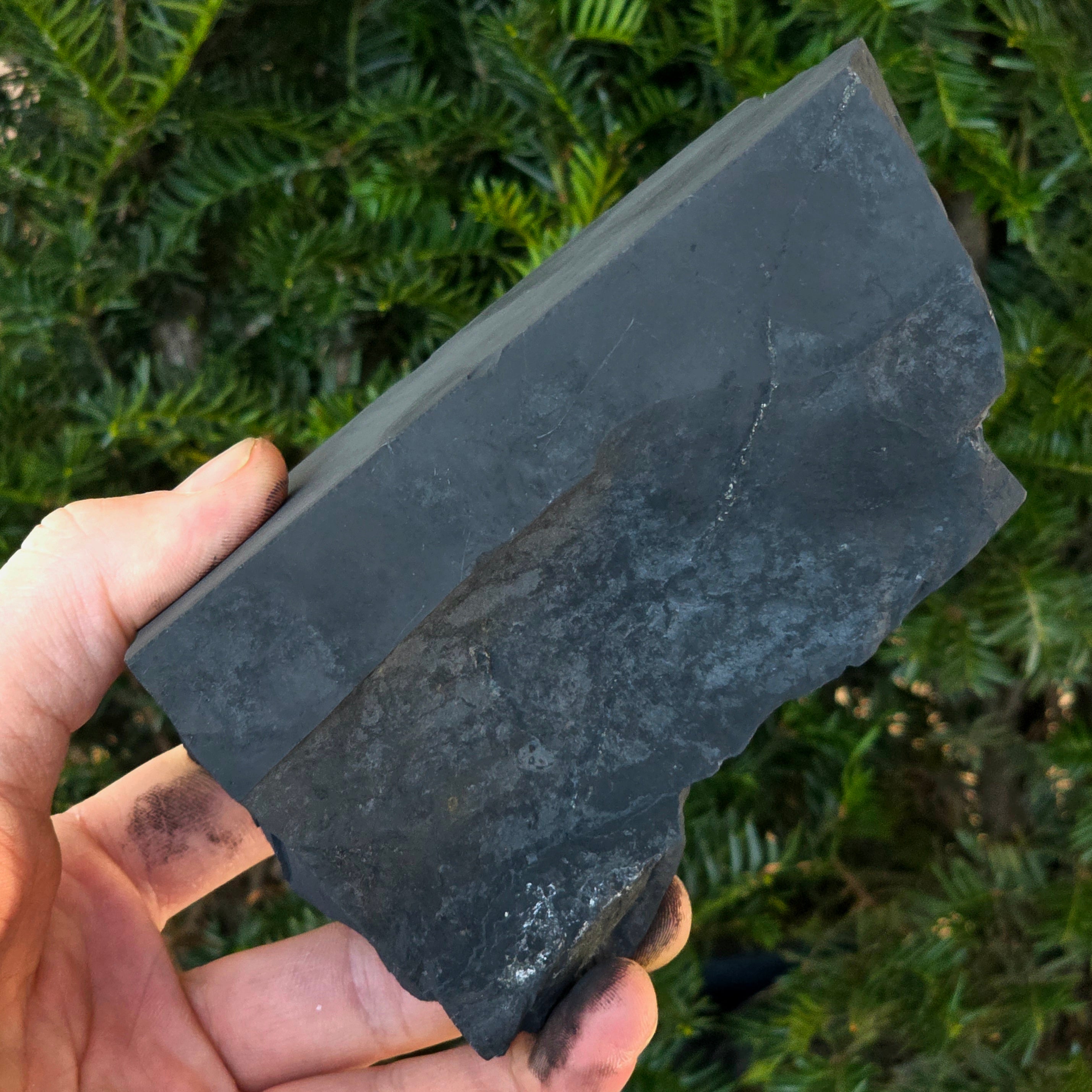 Schungit ist ein ungewöhnlicher Stein, der aus der Region Karelien in Russland stammt. Es hat eine komplexe Zusammensetzung und enthält Kohlenstoff, Aluminiumsilikat, Eisenoxid, Magnesium, Kalzium und andere Mineralien.