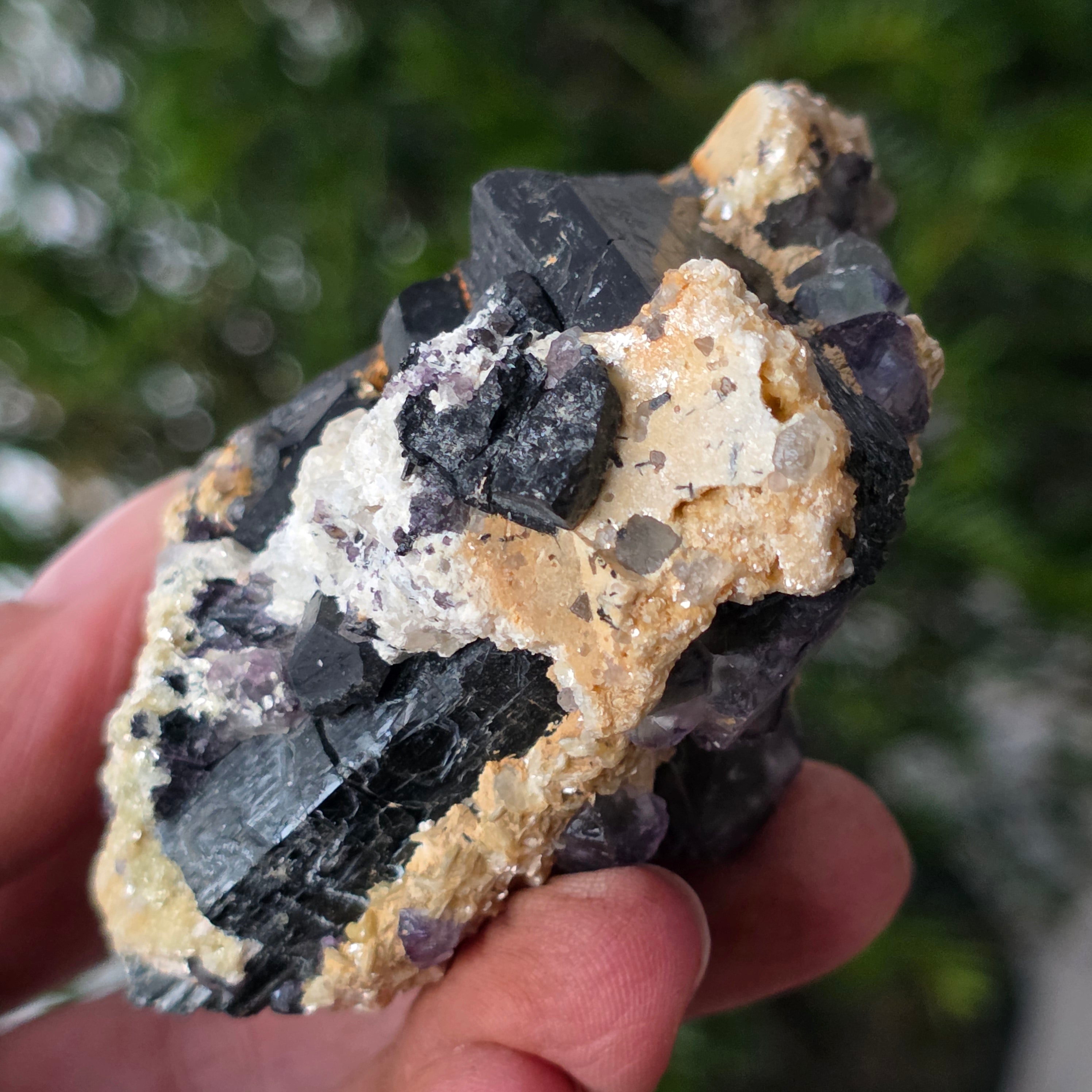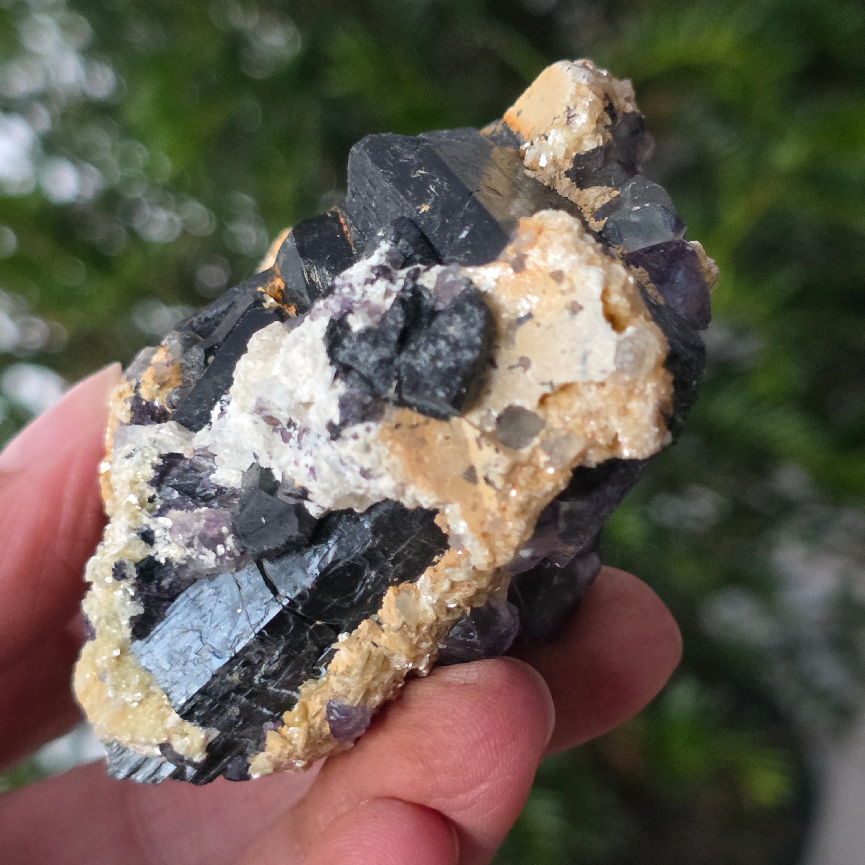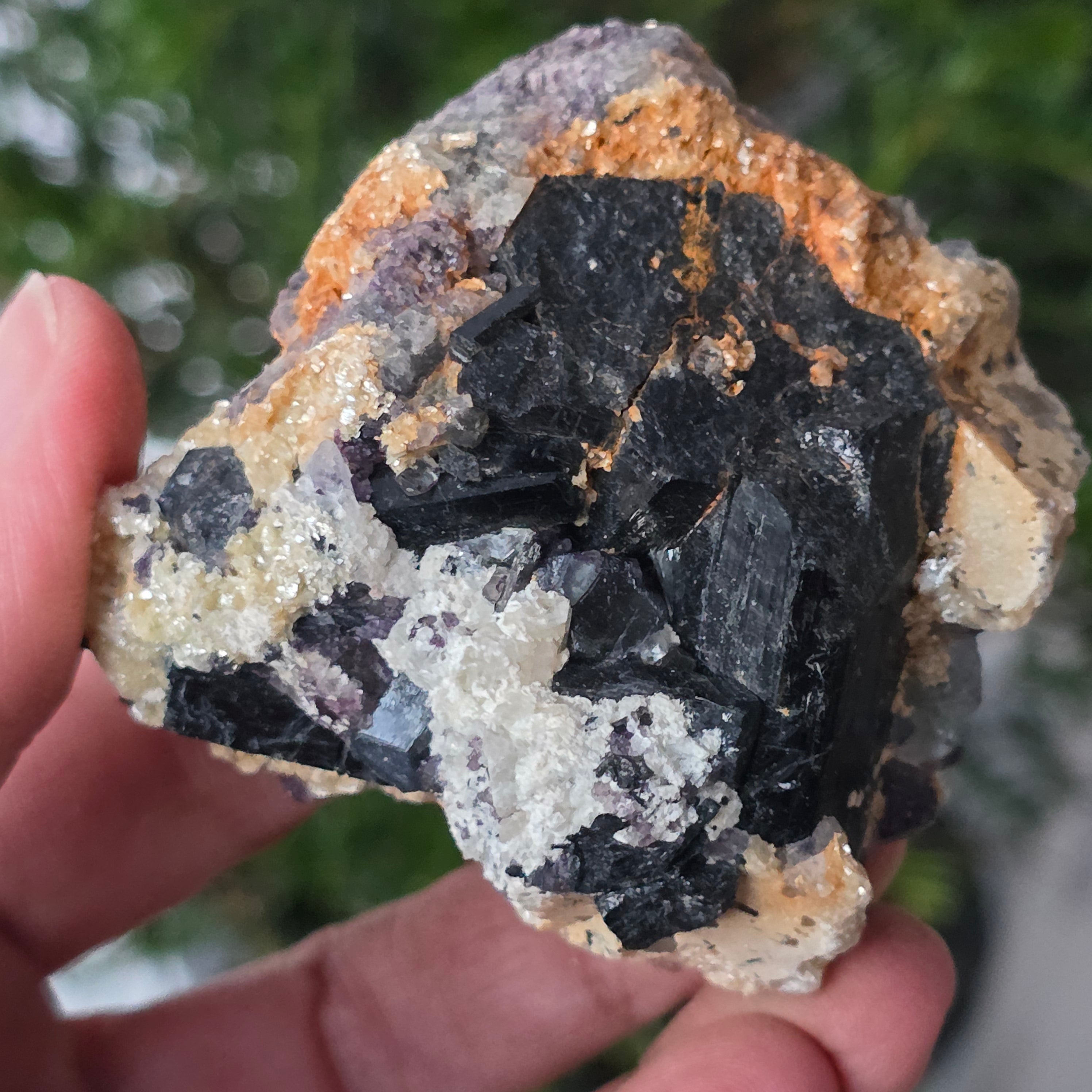 Schwarzer Turmalin, auch Schörl genannt, besteht aus einer komplexen Mischung von Borosilikaten und kommt in verschiedenen kristallinen Formen vor. Es ist ein sehr hartes Mineral und weist eine hohe Kratz- und Verschleißfestigkeit auf.